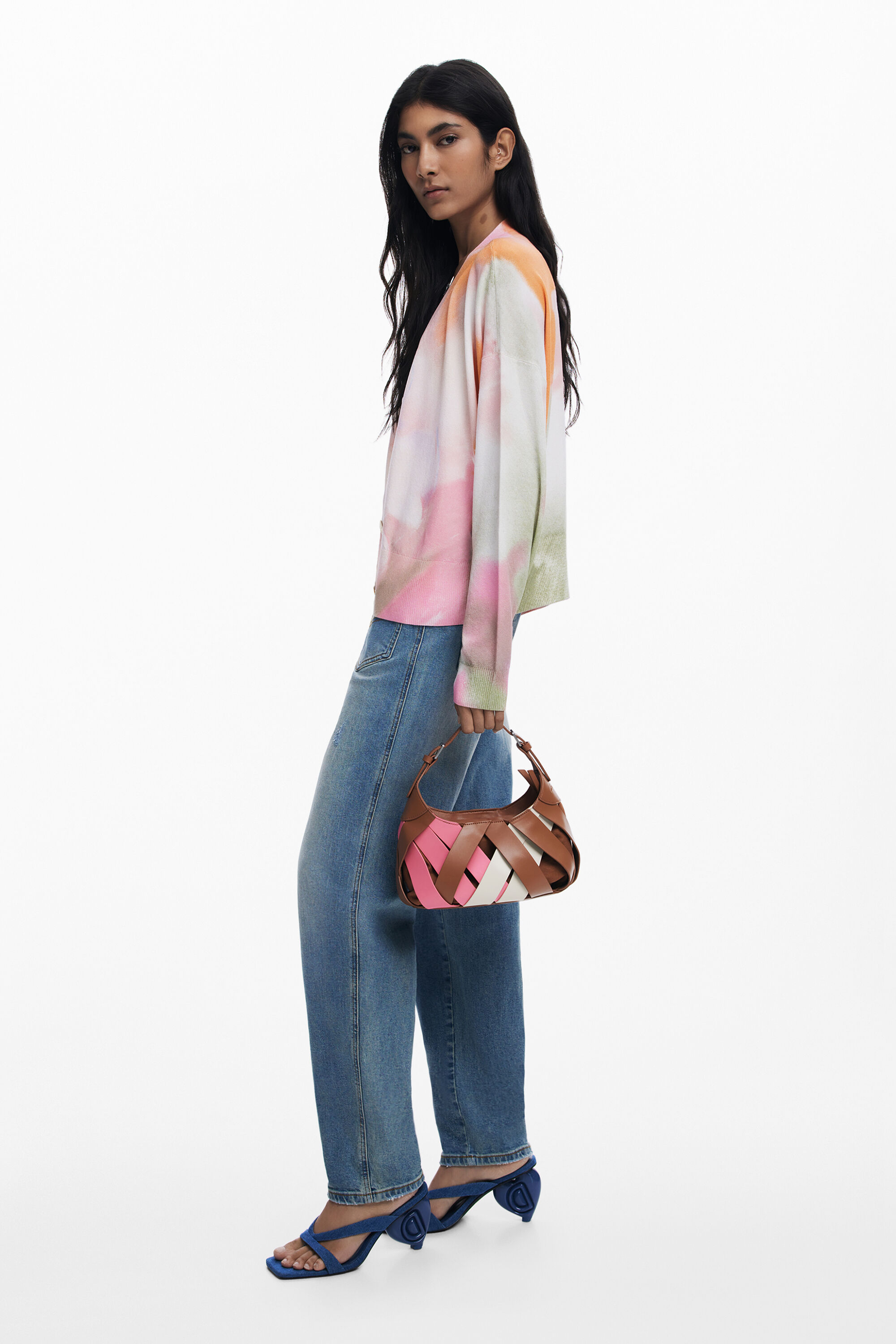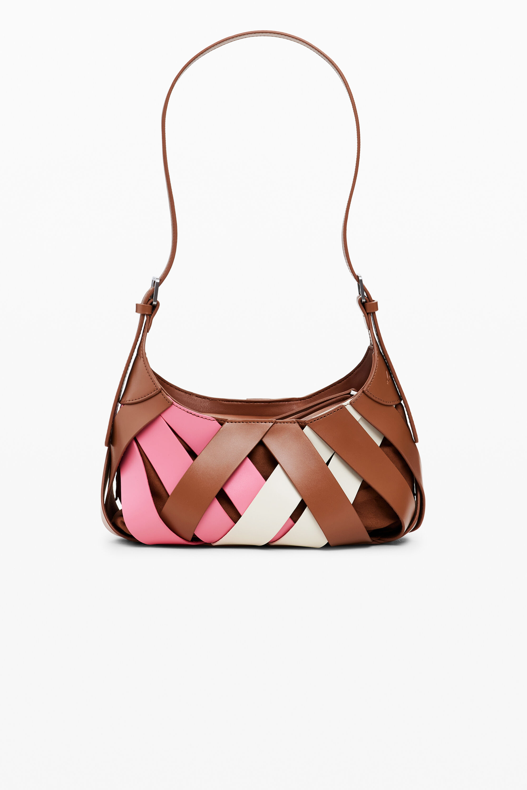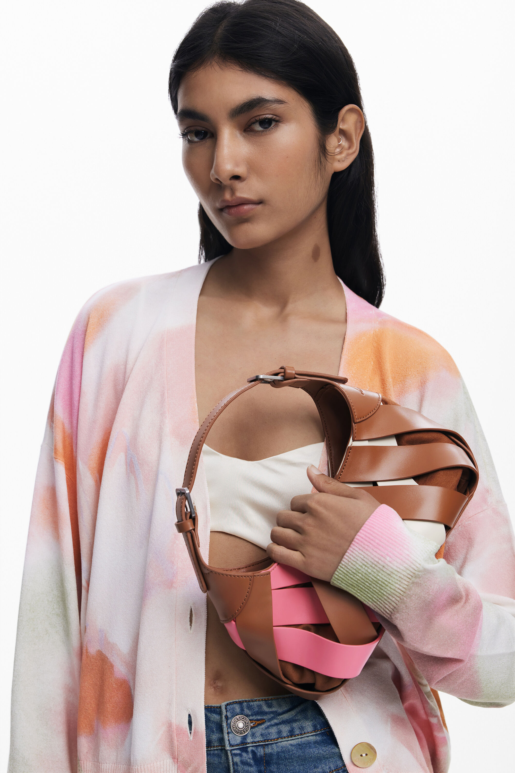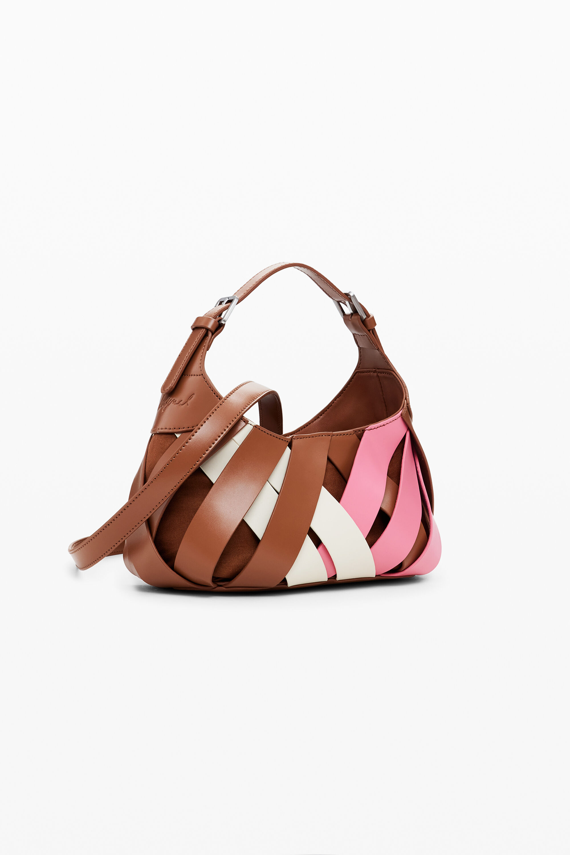 Borsa a spalla in due tessuti, fodera tipo tela all'interno e esterno con intreccio effetto pelle a contrasto di coloreColore MulticoloreManico con fibbie regolabiliScomparto internoIntrecciatoEffetto pelleProgettato a BarcellonaMisure: 22x10,8x13 cm