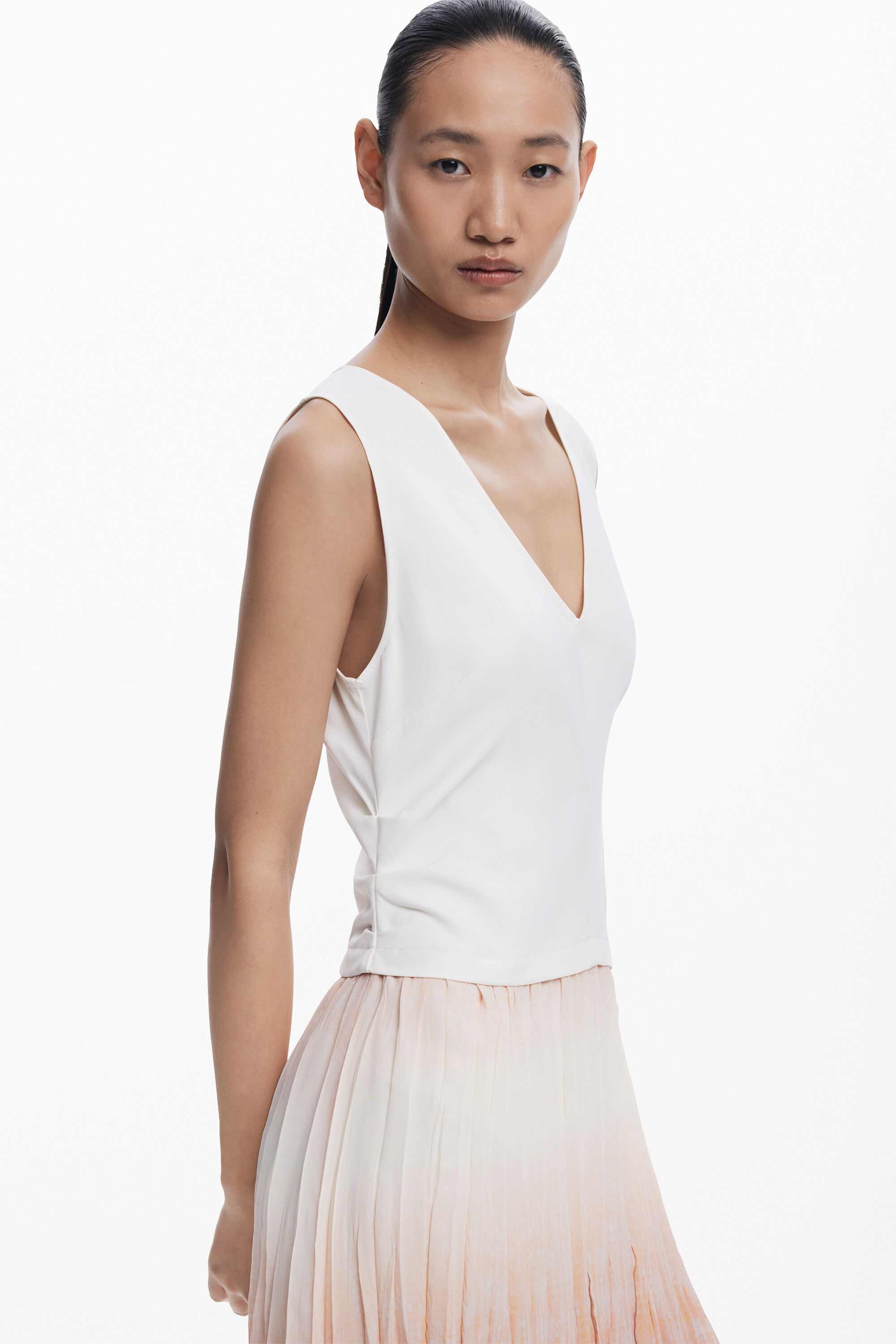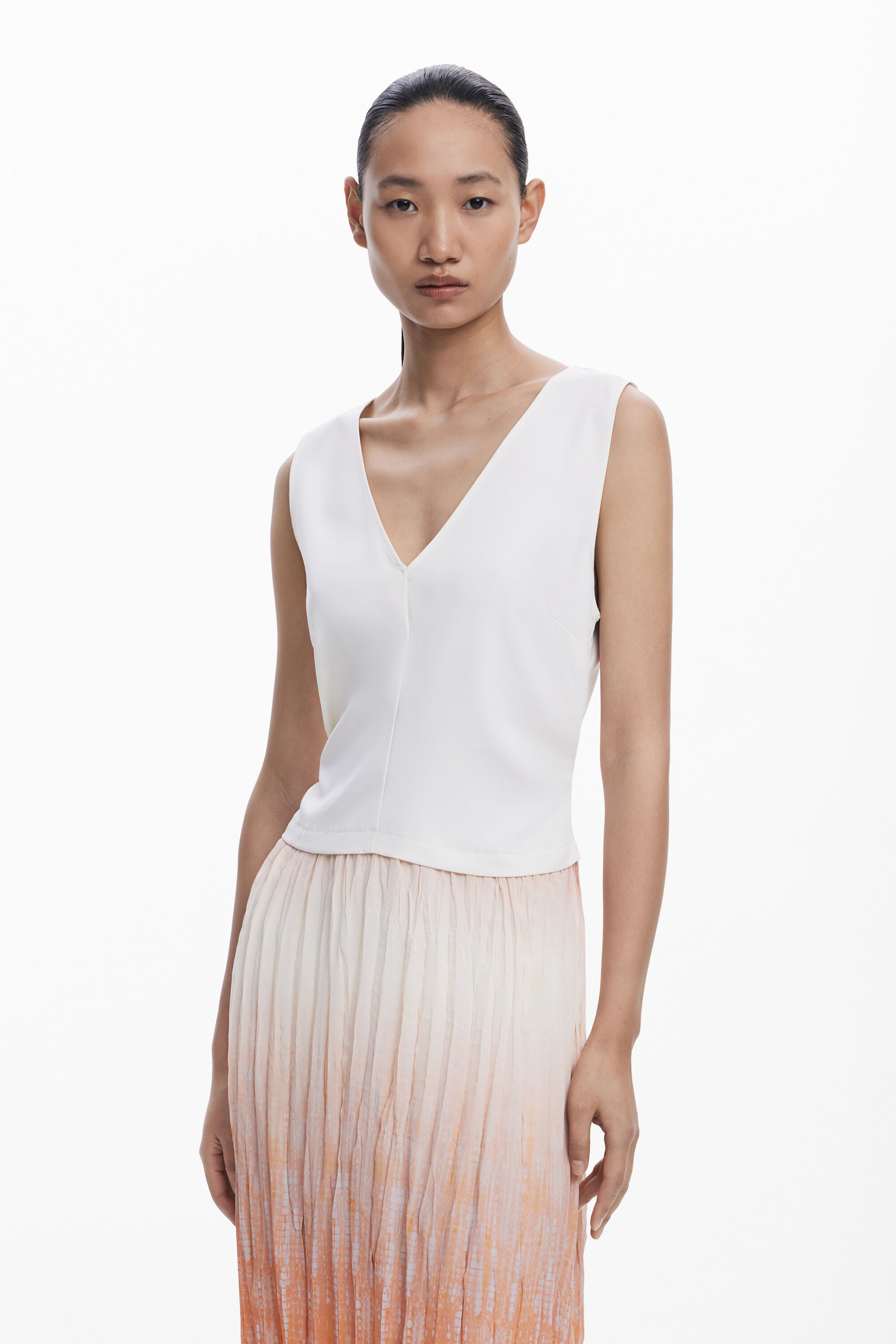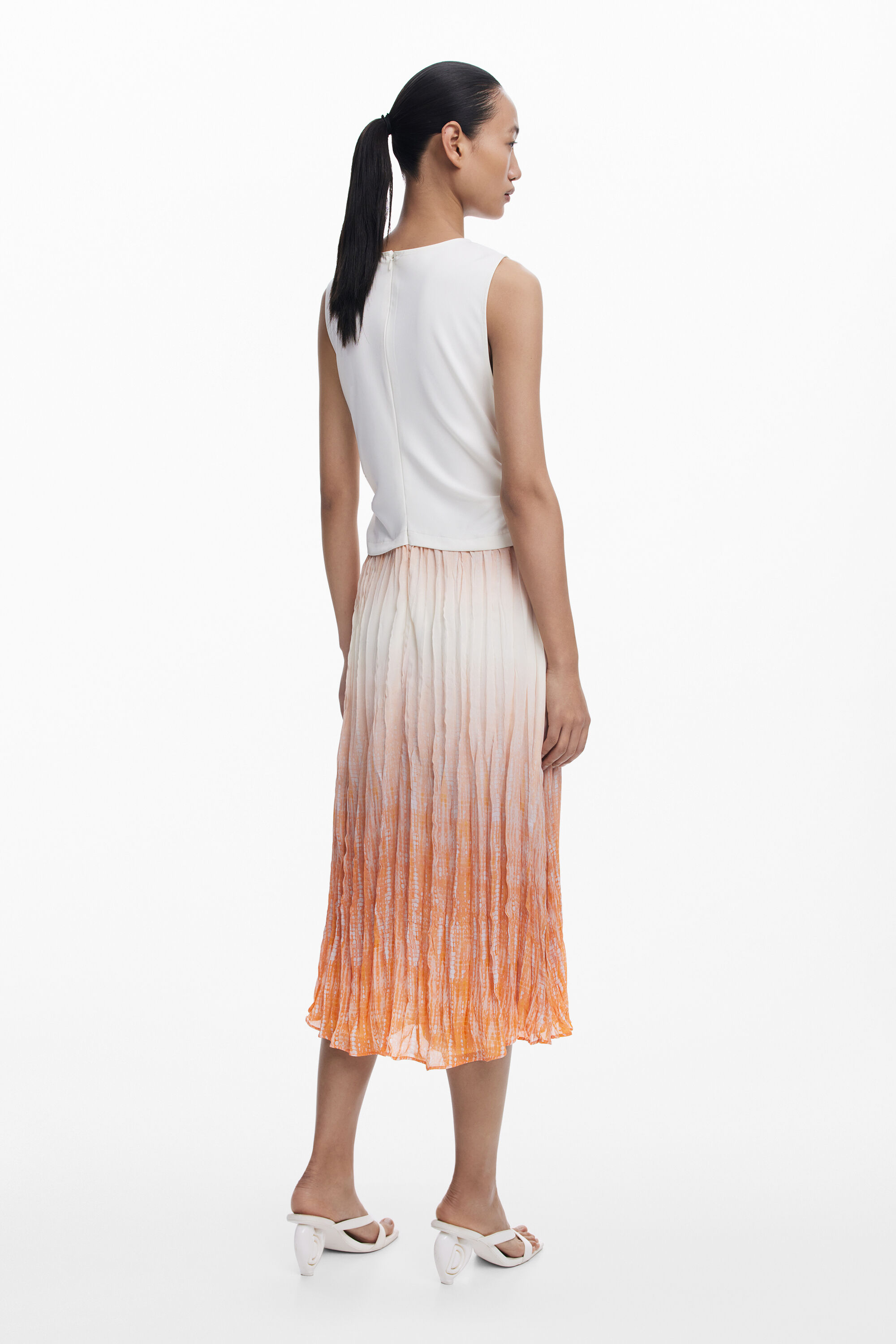 Abito lungo con scollo a V e taglio svasato, con arricciatura in vita e stampa effetto sfumatoColore: MulticoloreFit: EvaséLunghezza: LungoArricciatura in vitaChiusura: con cernieraColore effetto sfumatoTaglio regolareCollezione AW25Progettato a Barcellona