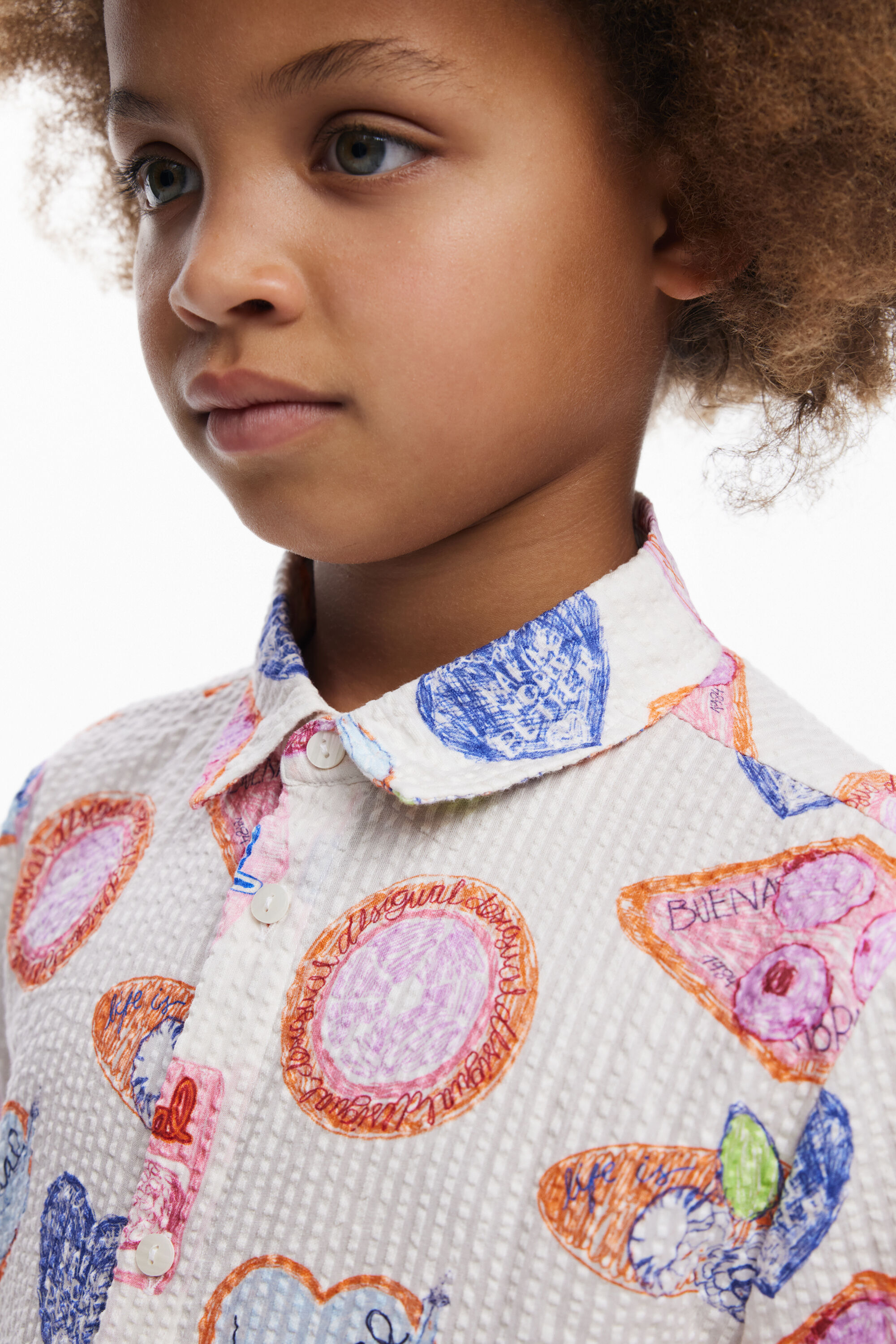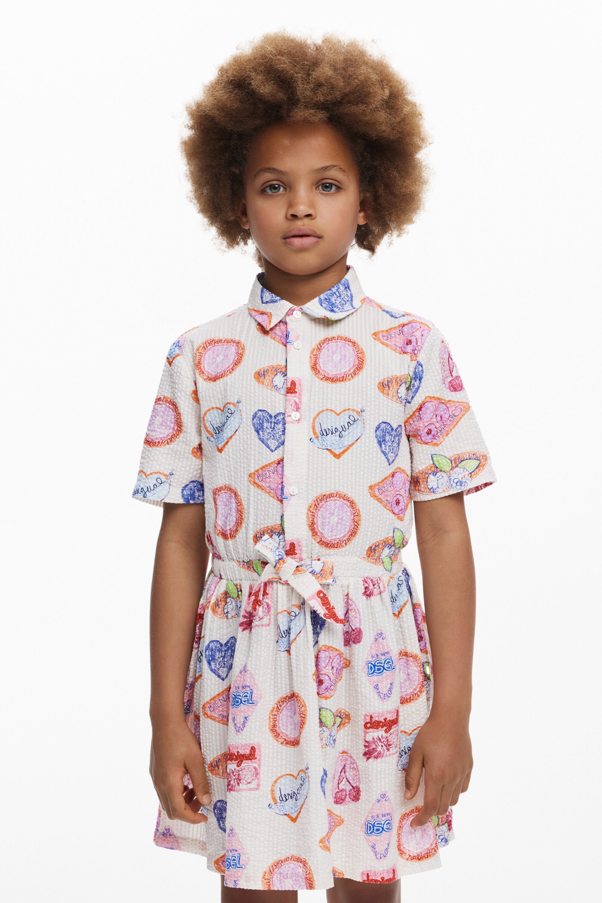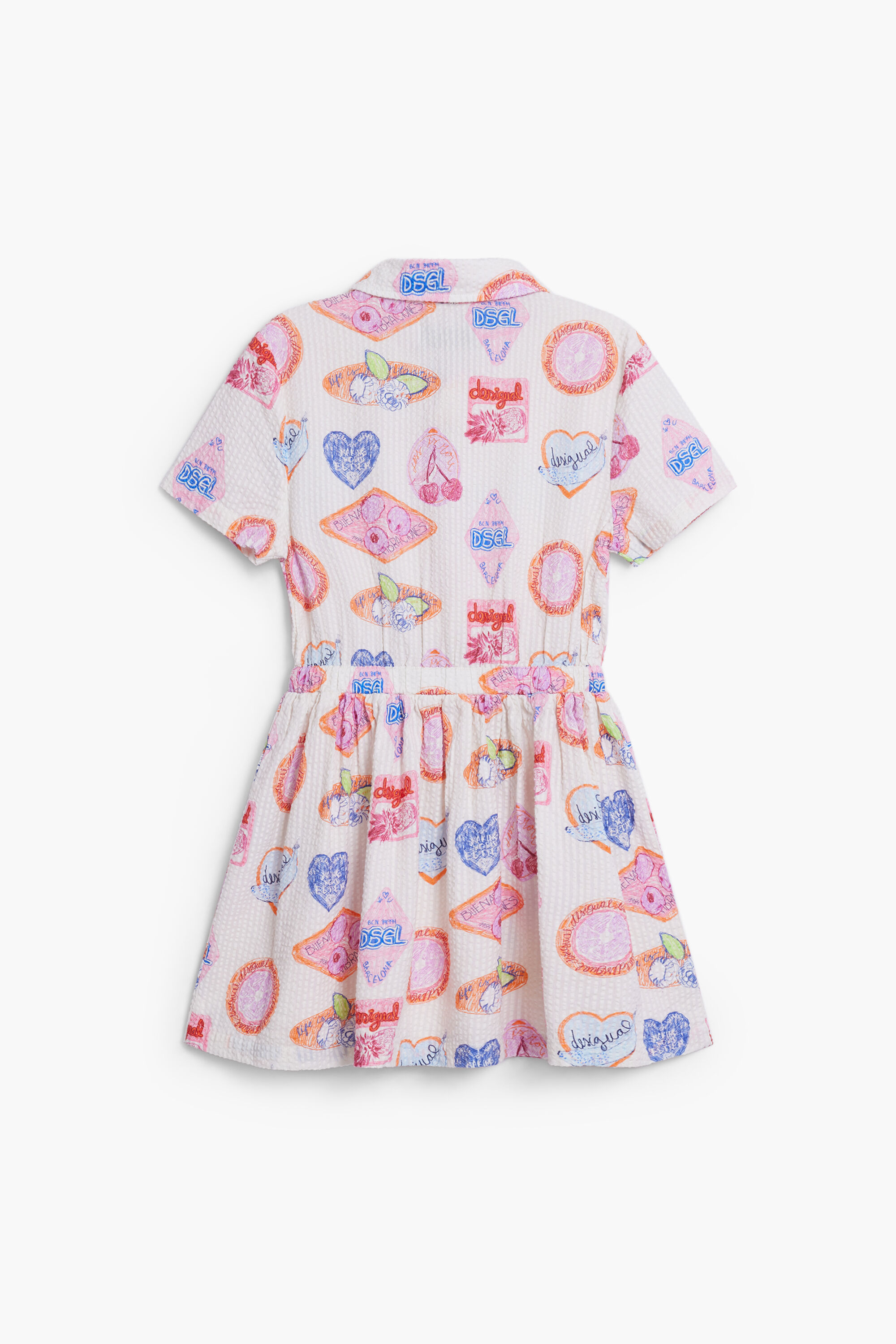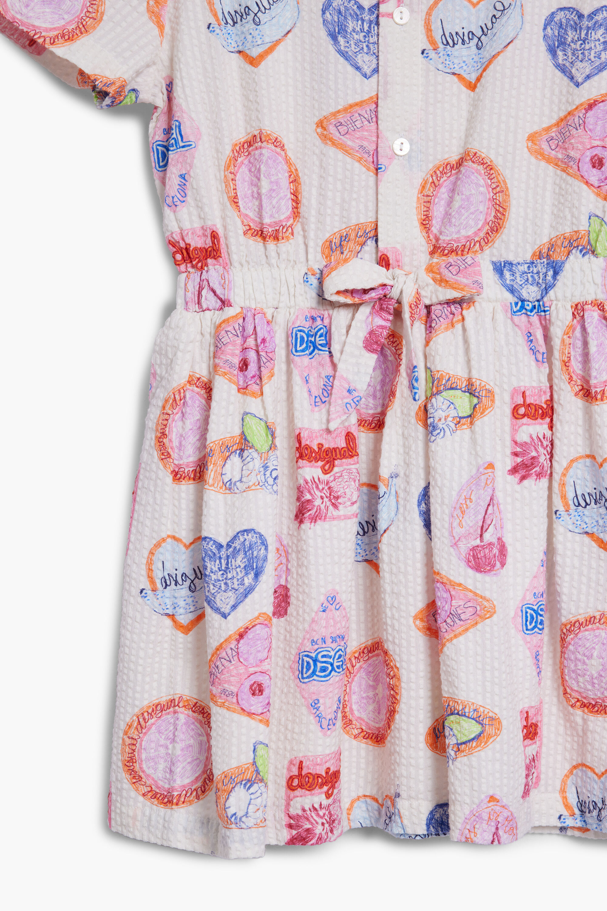 Abito con texture a manica corta stile camicia, gonna svasata, dettaglio di fiocco in vita e stampa di francobolli colorati.Stampa ArtyFit: RegularCollo: con bottoneManica: CortaLunghezza: CortoChiusura: con bottoneDettaglio di fiocco in vitaCon textureCollezione AW25Progettato a BarcellonaAcquistando prodotti in cotone di Desigual, stai sostenendo il nostro investimento in Better Cotton.