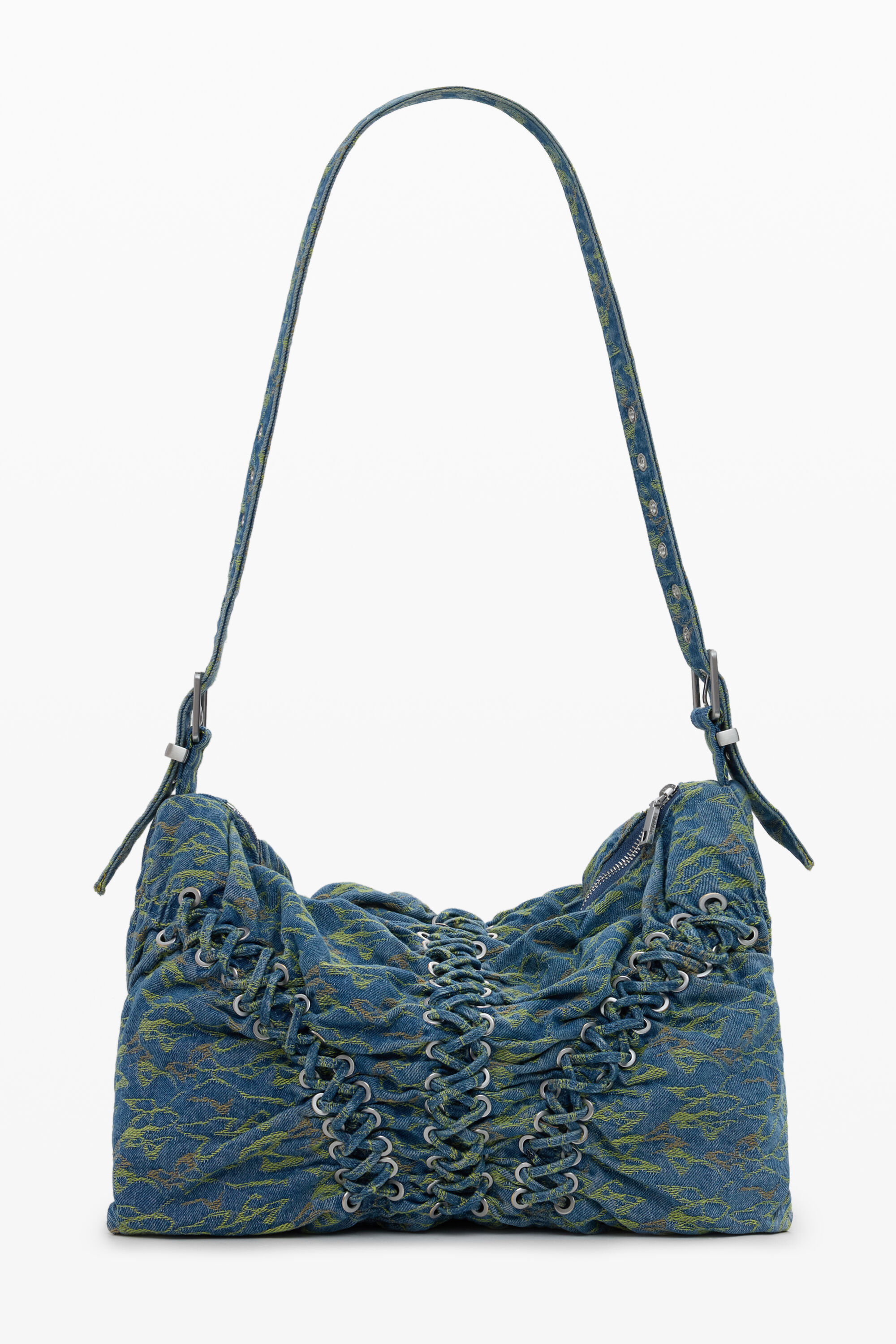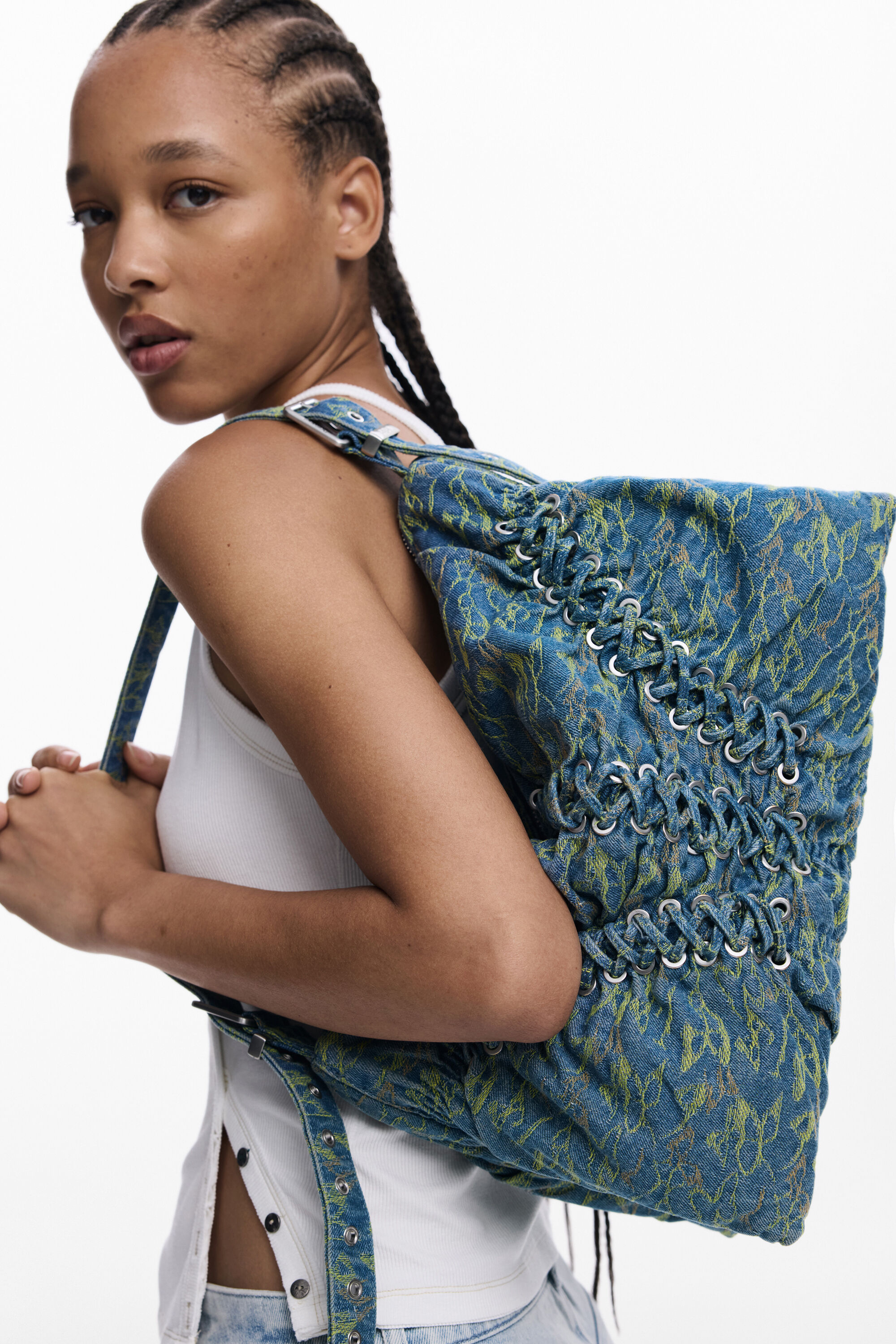 Borsa a tracolla in tessuto denim con chiusura a cerniera, manico regolabile, tasca interna con cerniera e dettagli con lacci intrecciati.Colore: MulticoloreTasca interna con cernieraChiusura: con cernieraManico regolabileDettagli di lacci incrociatiTexture arricciataMisure: 40x23x27 cmBCI COTTONAcquistando prodotti in cotone di Desigual, stai sostenendo il nostro investimento in Better Cotton.