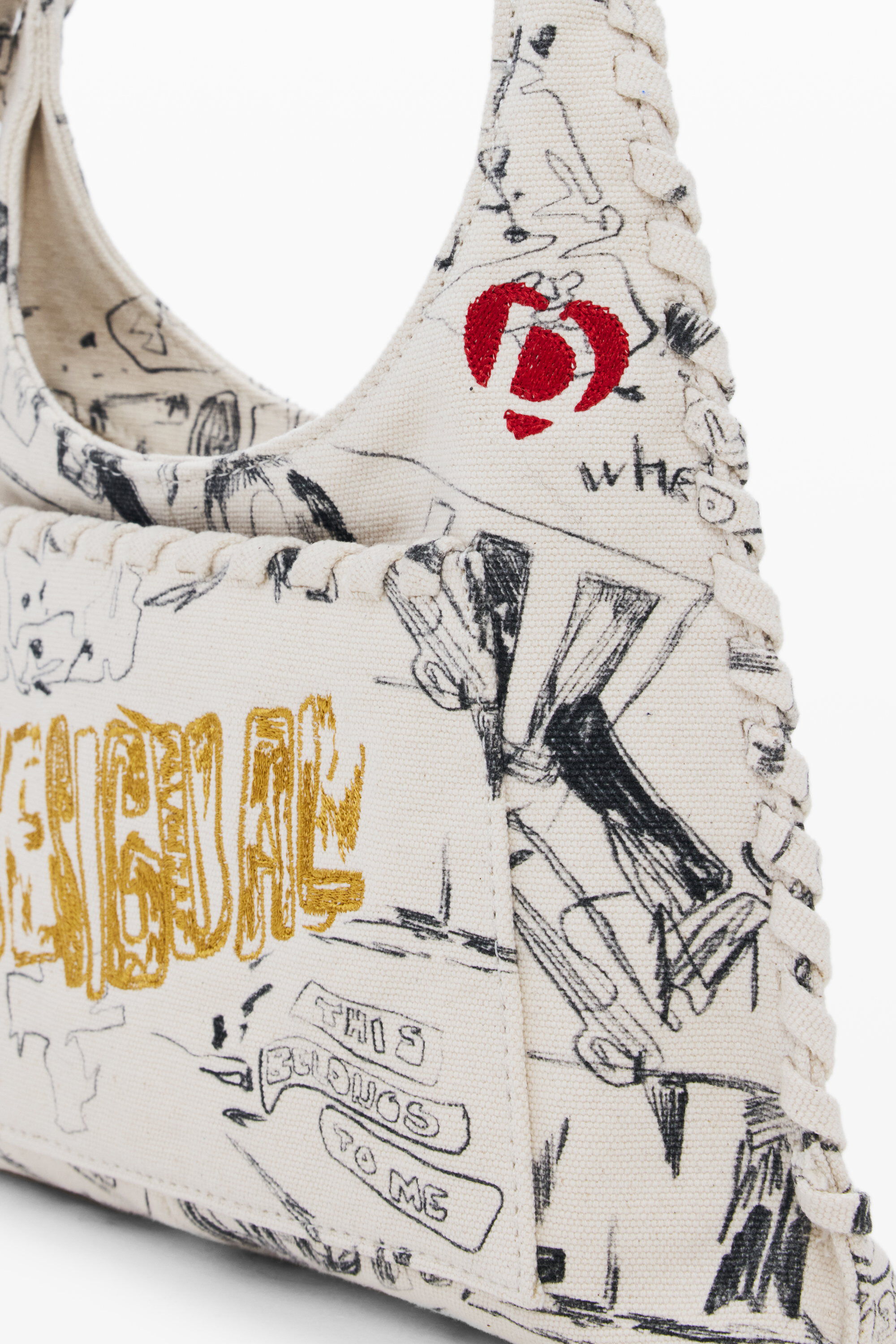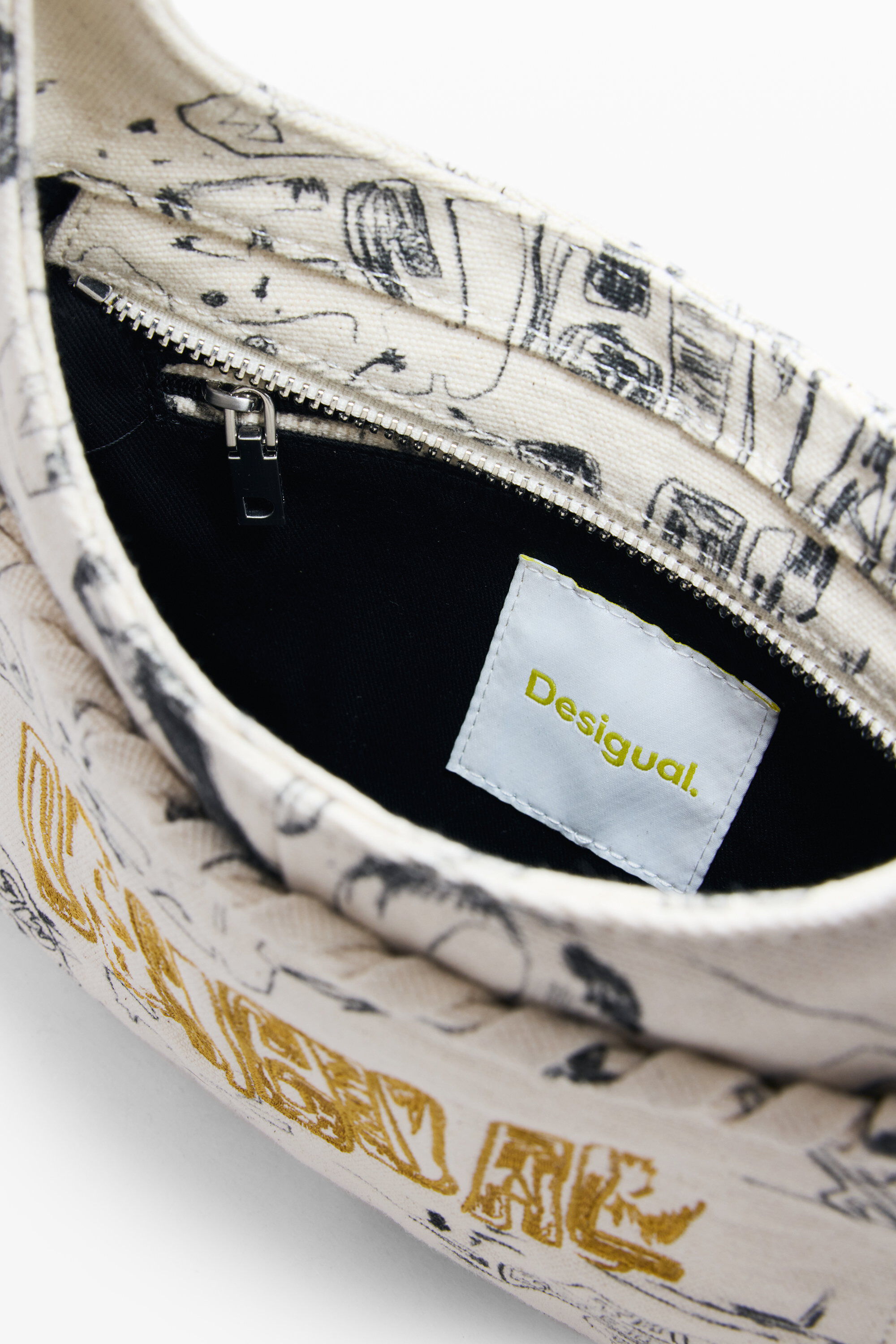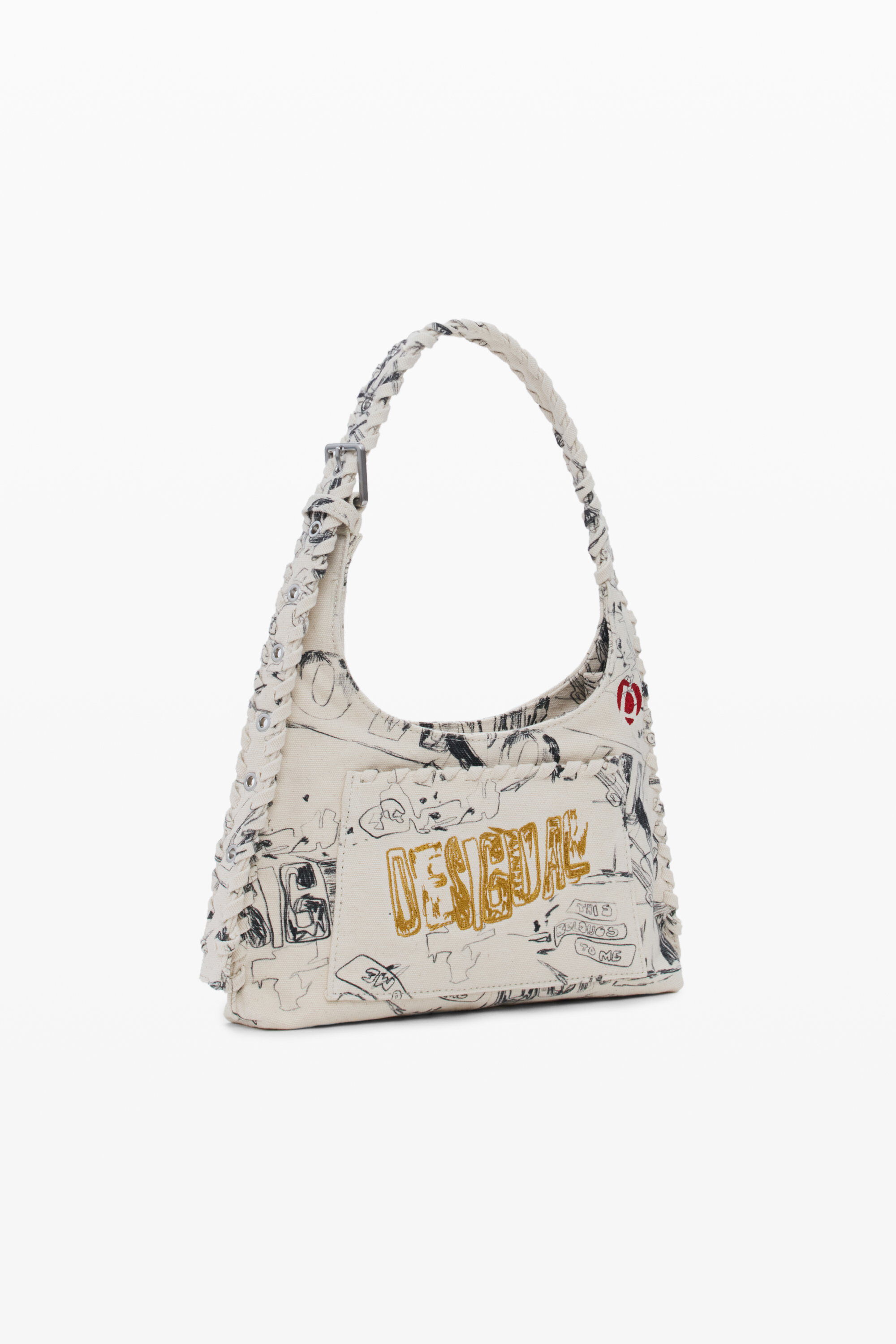 Borsa a spalla media con stampa stile lettering e tracolla regolabile con fibbia.Colore: