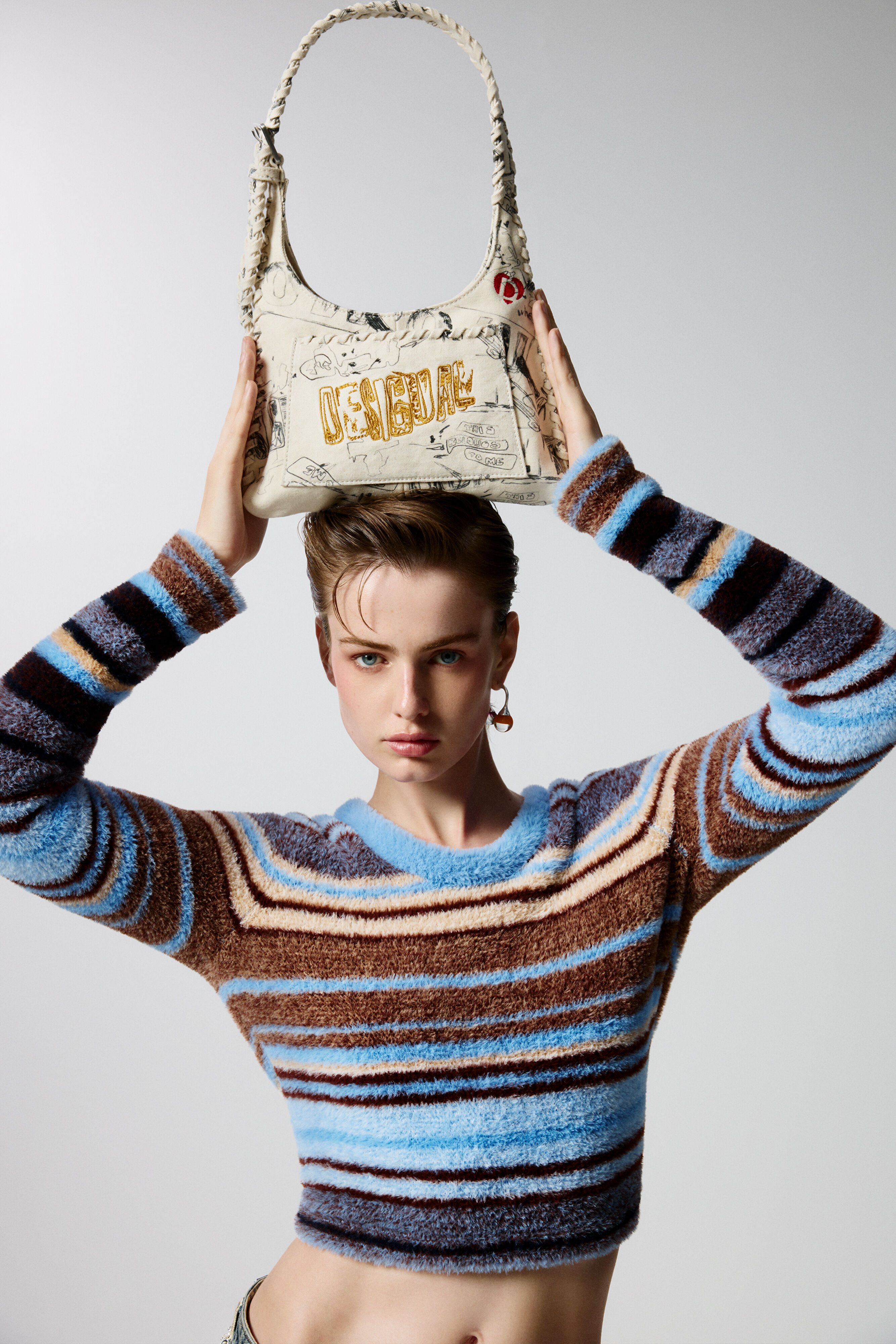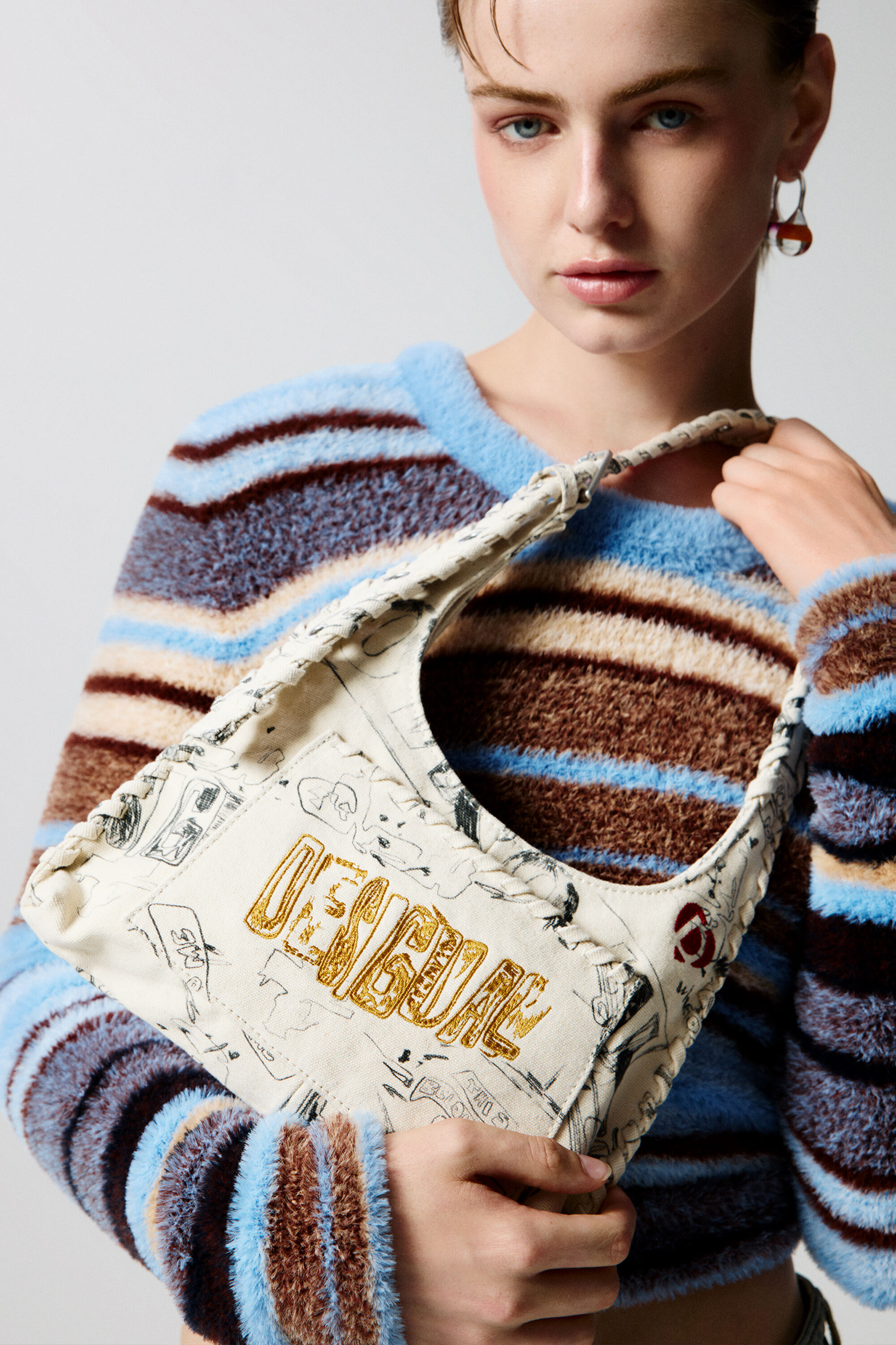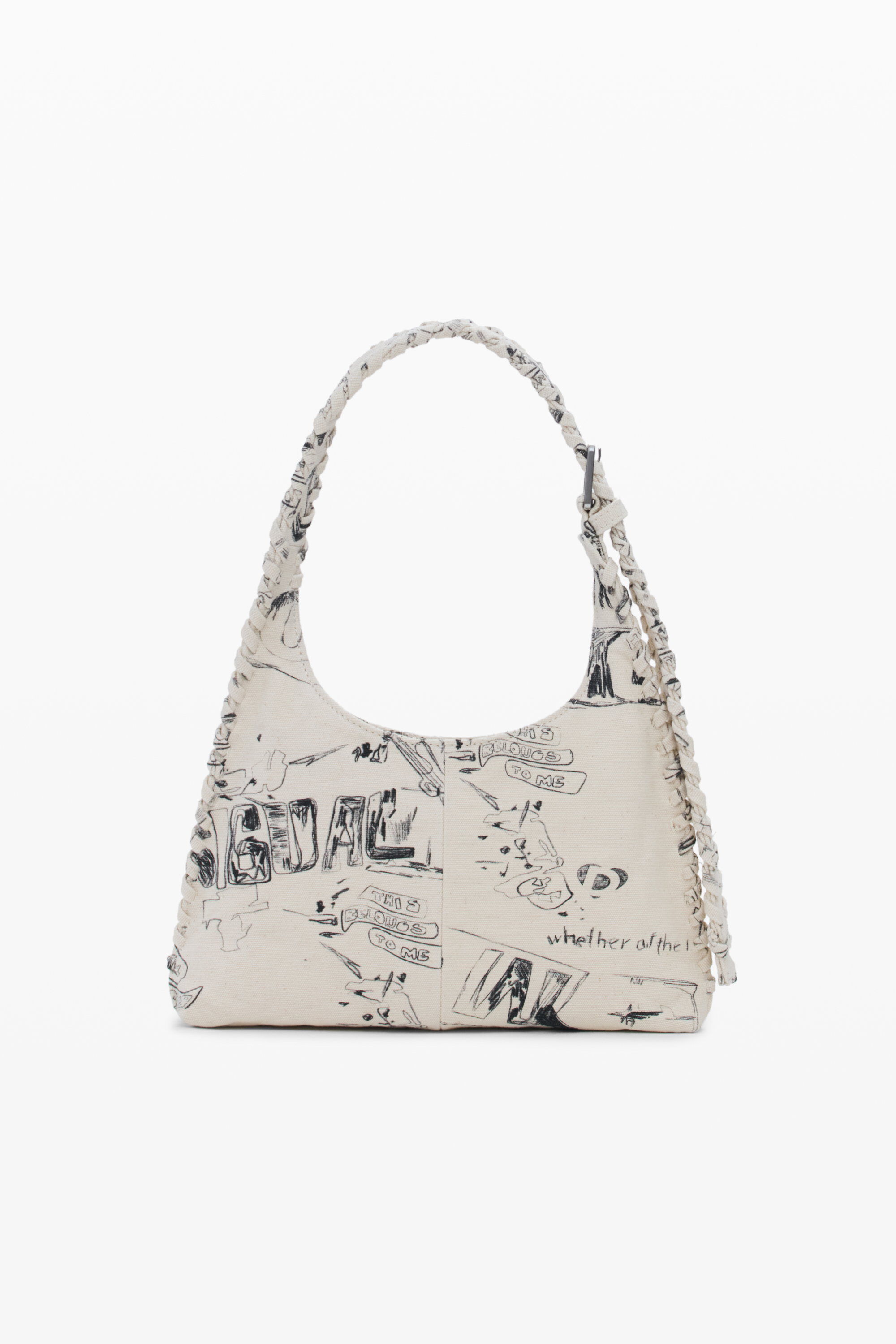 Borsa a spalla media con stampa stile lettering e tracolla regolabile con fibbia.Colore:
