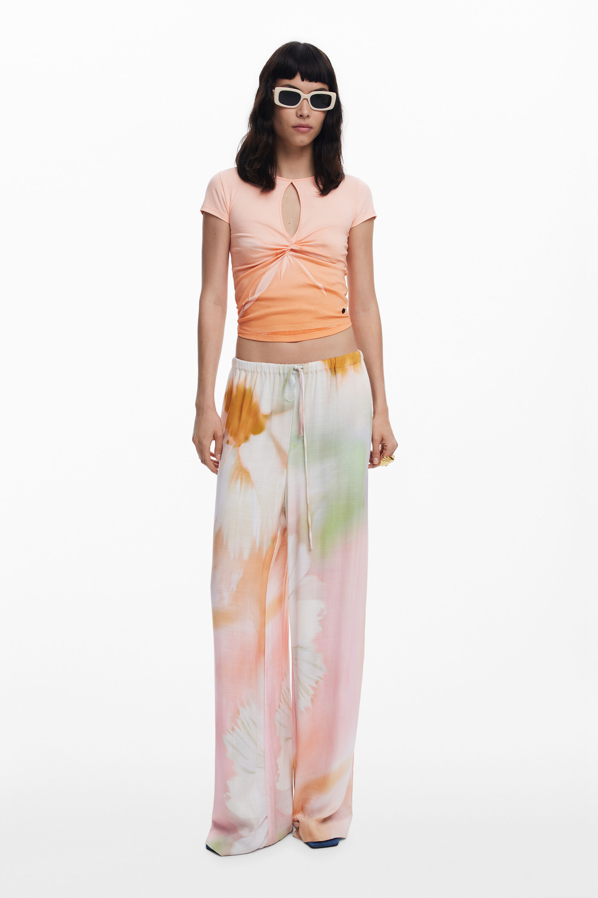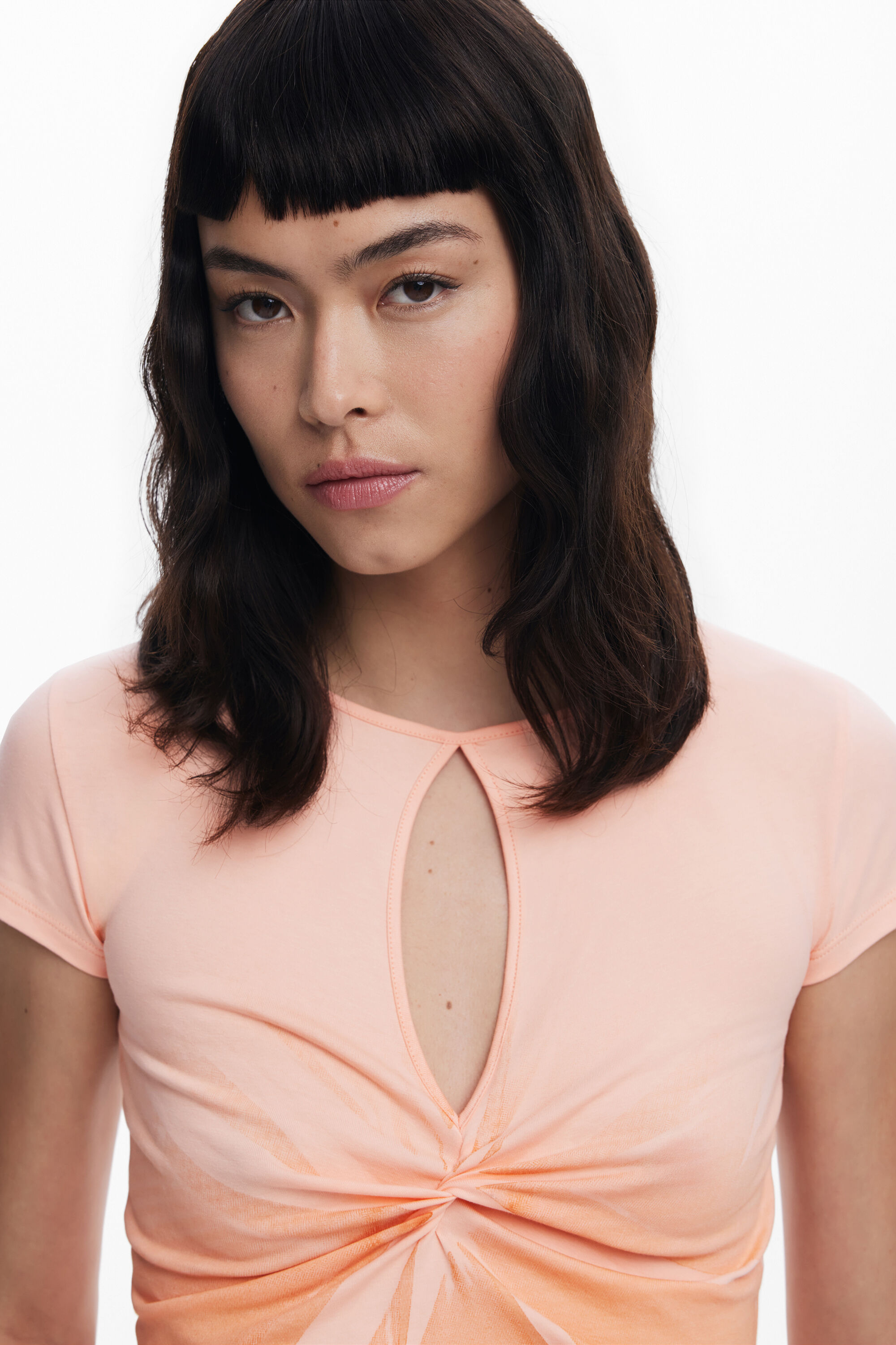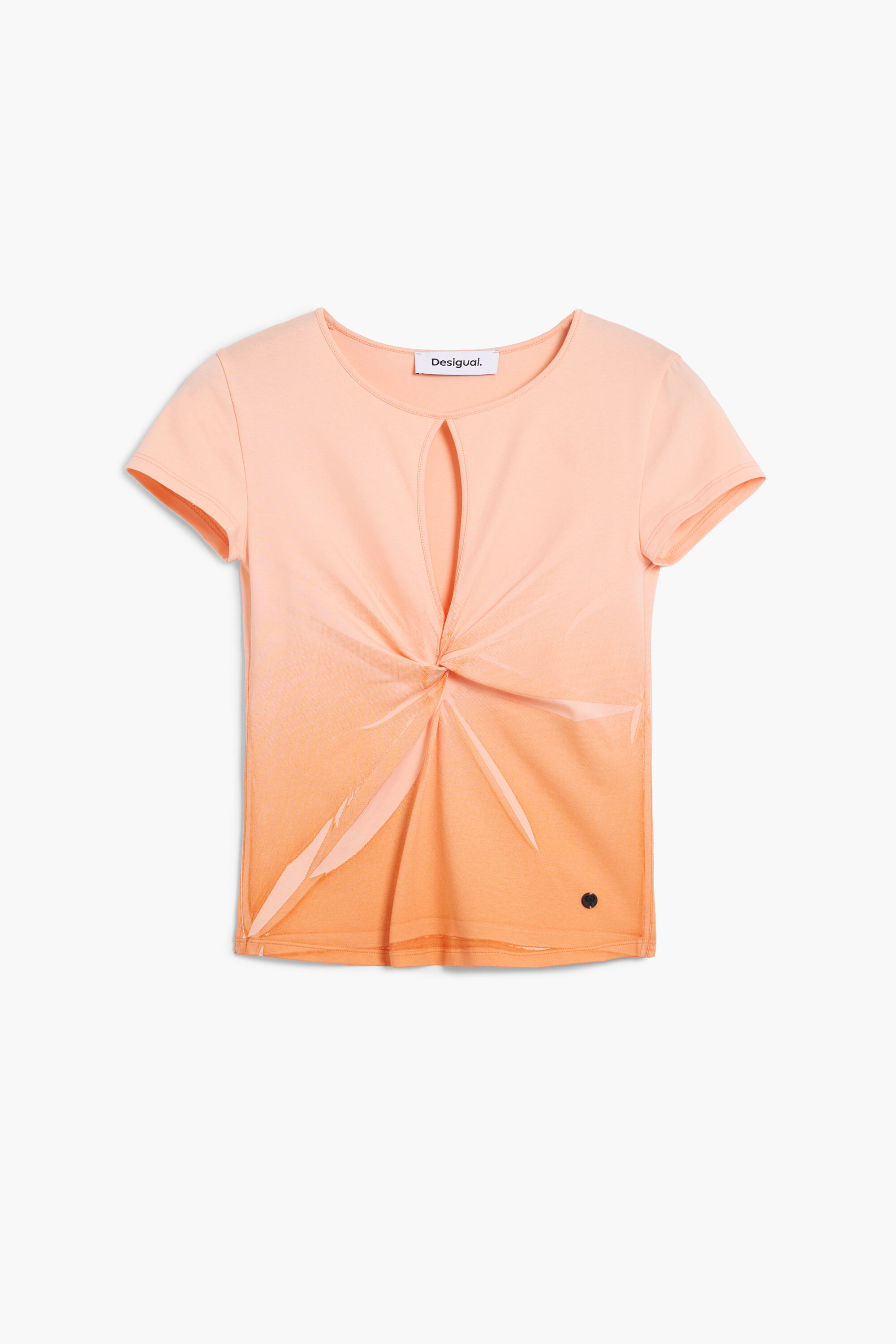 Maglietta a maniche corte in tinta unita con apertura e arricciatura nella parte anteriore.Colore: Tinta unitaFit: RegularCollo: rotondoManiche: Manica cortaArricciatoApertura nella parte frontaleProgettato a BarcellonaProgettato a BarcellonaViscosa Lenzing™ EcoVero™