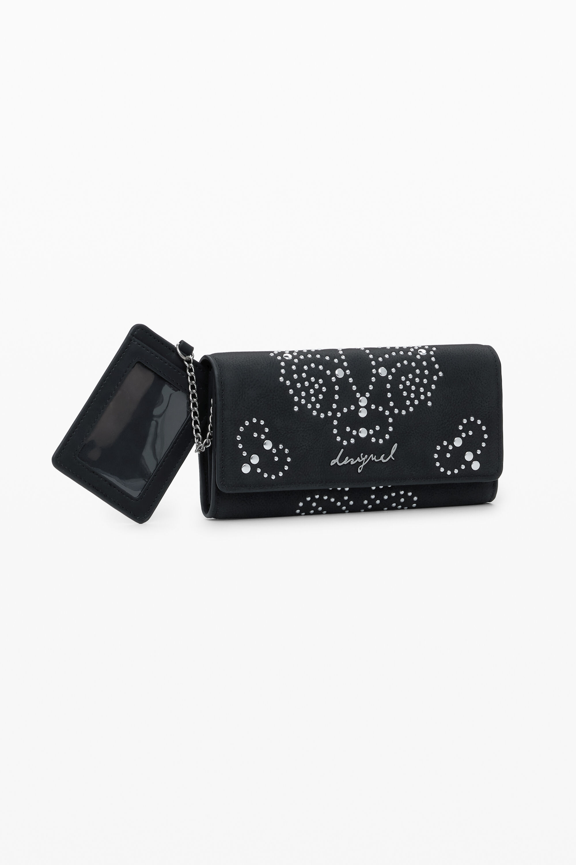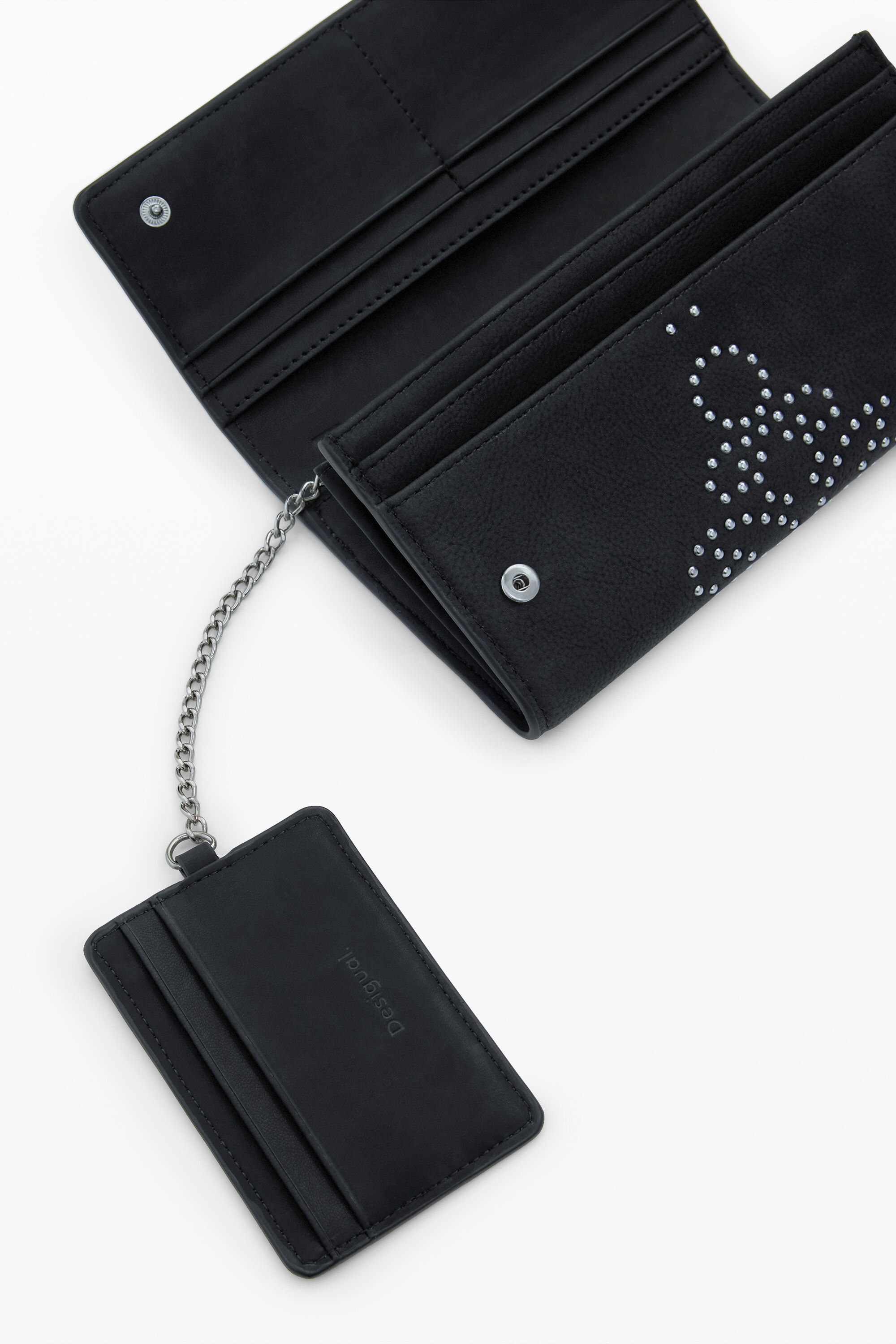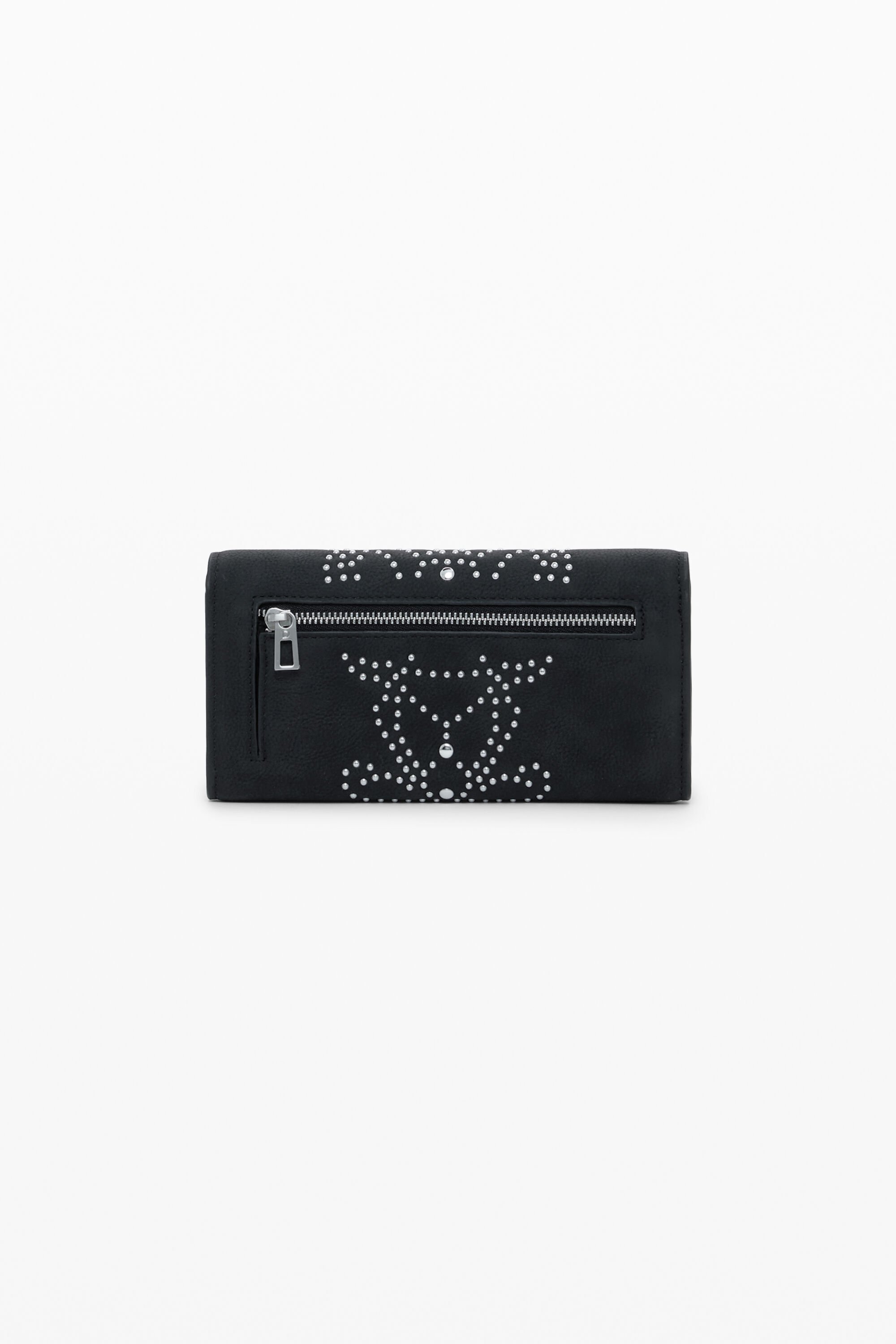 Portafoglio grande allungato, in tessuto effetto pelle e con dettaglio di borchie metalliche.