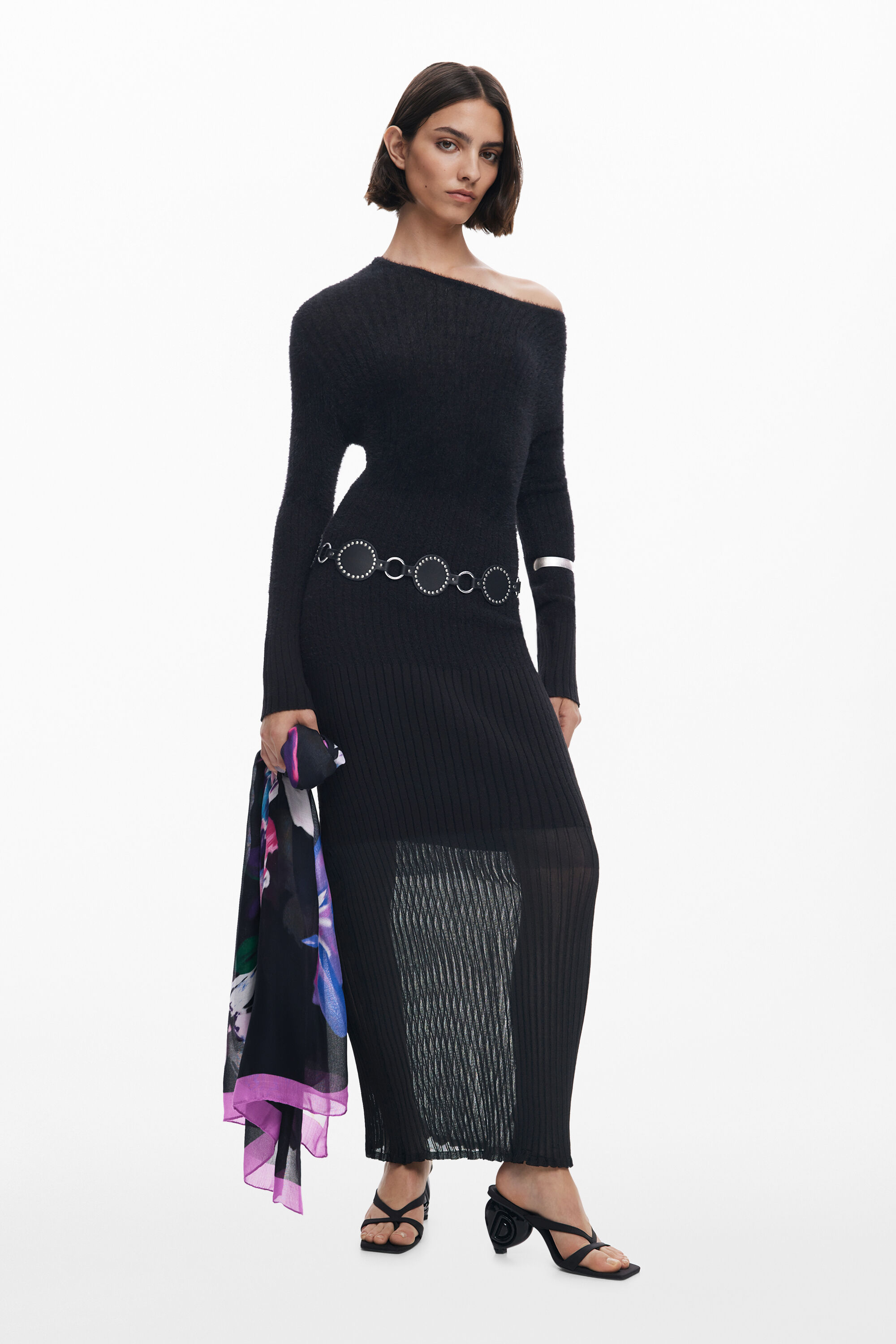 Grande foulard rettangolare, al tatto morbido con stampa floreale in colori vivaci su sfondo nero.Stampa florealeRettangolareScomparto internoCollezione AW25Progettato a BarcellonaMisure: