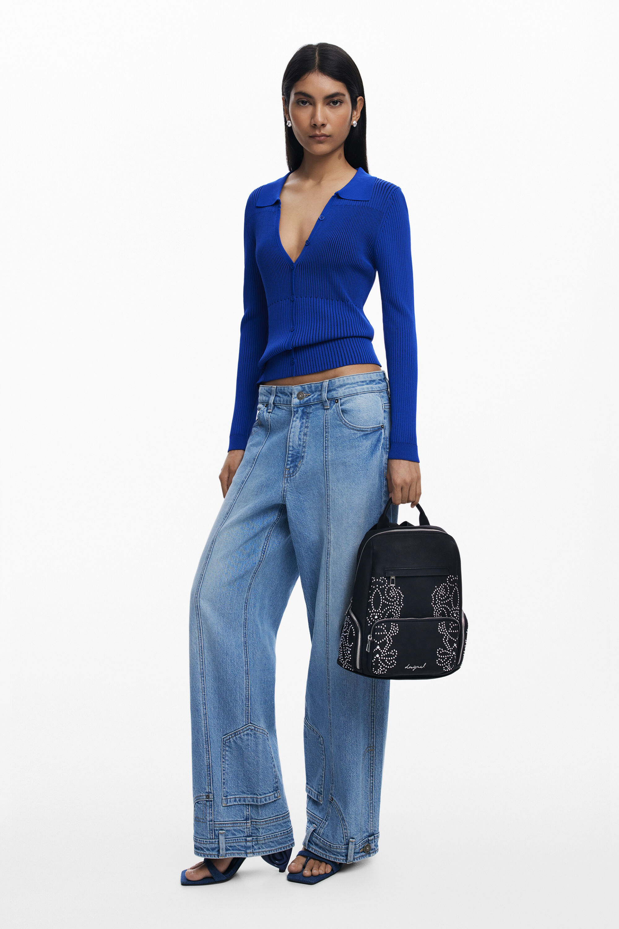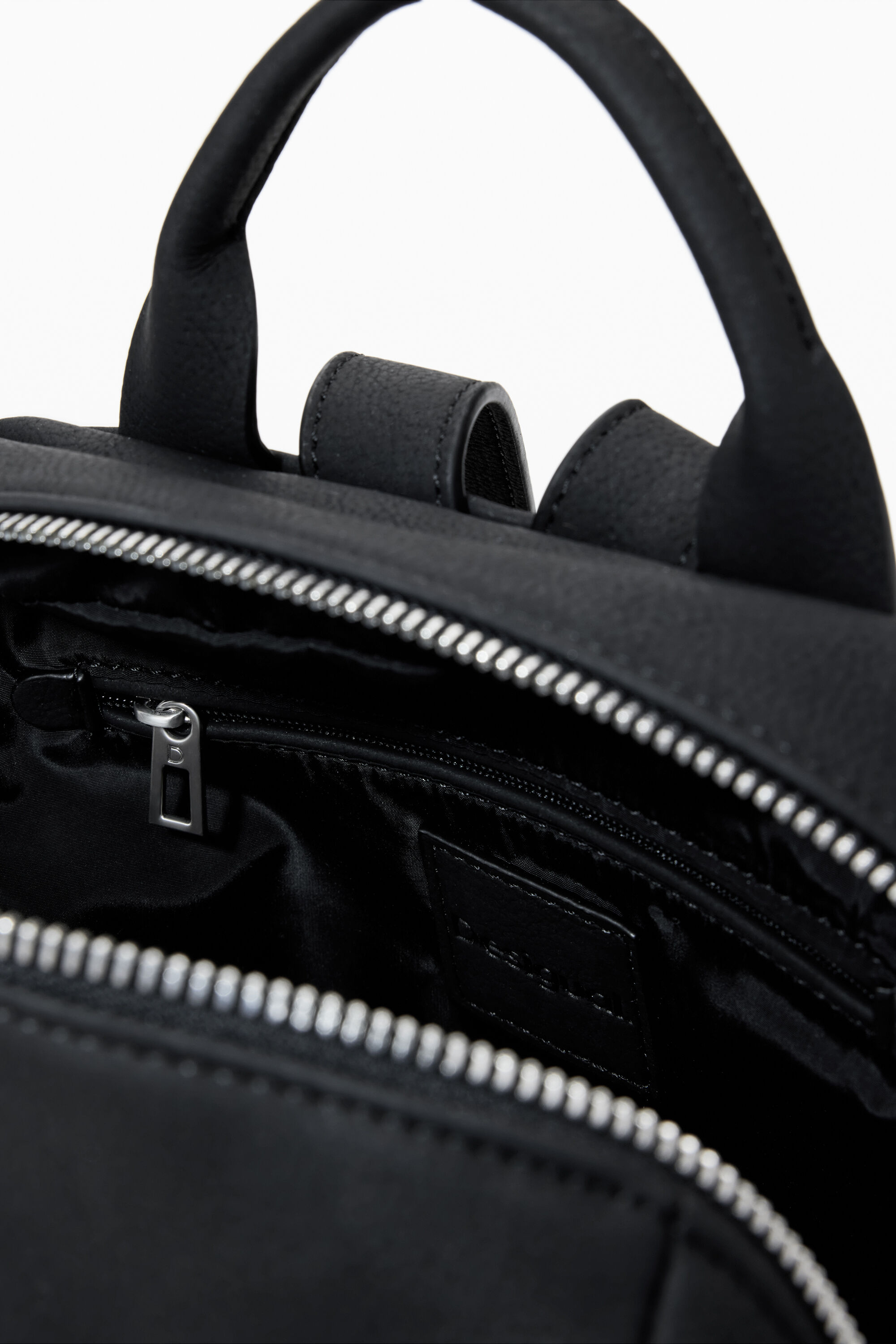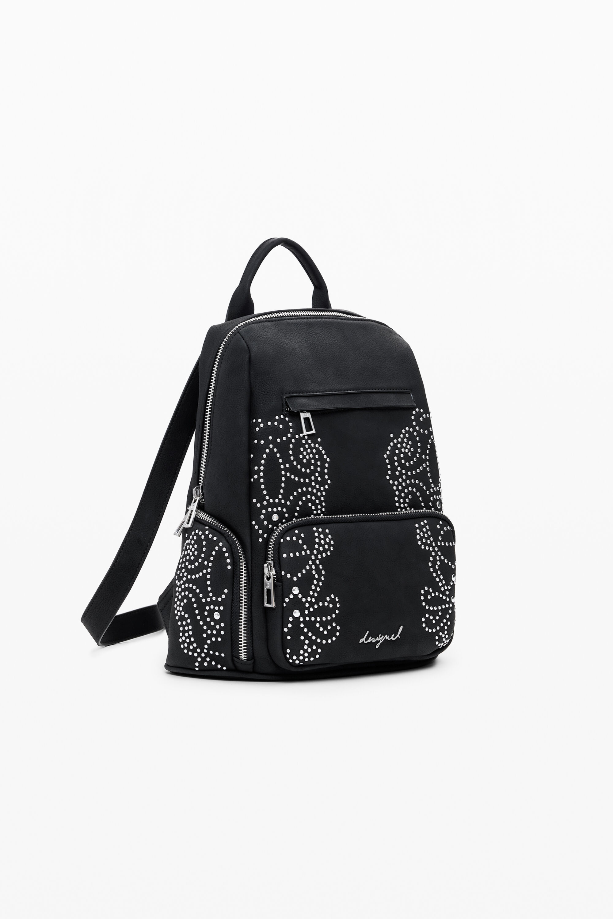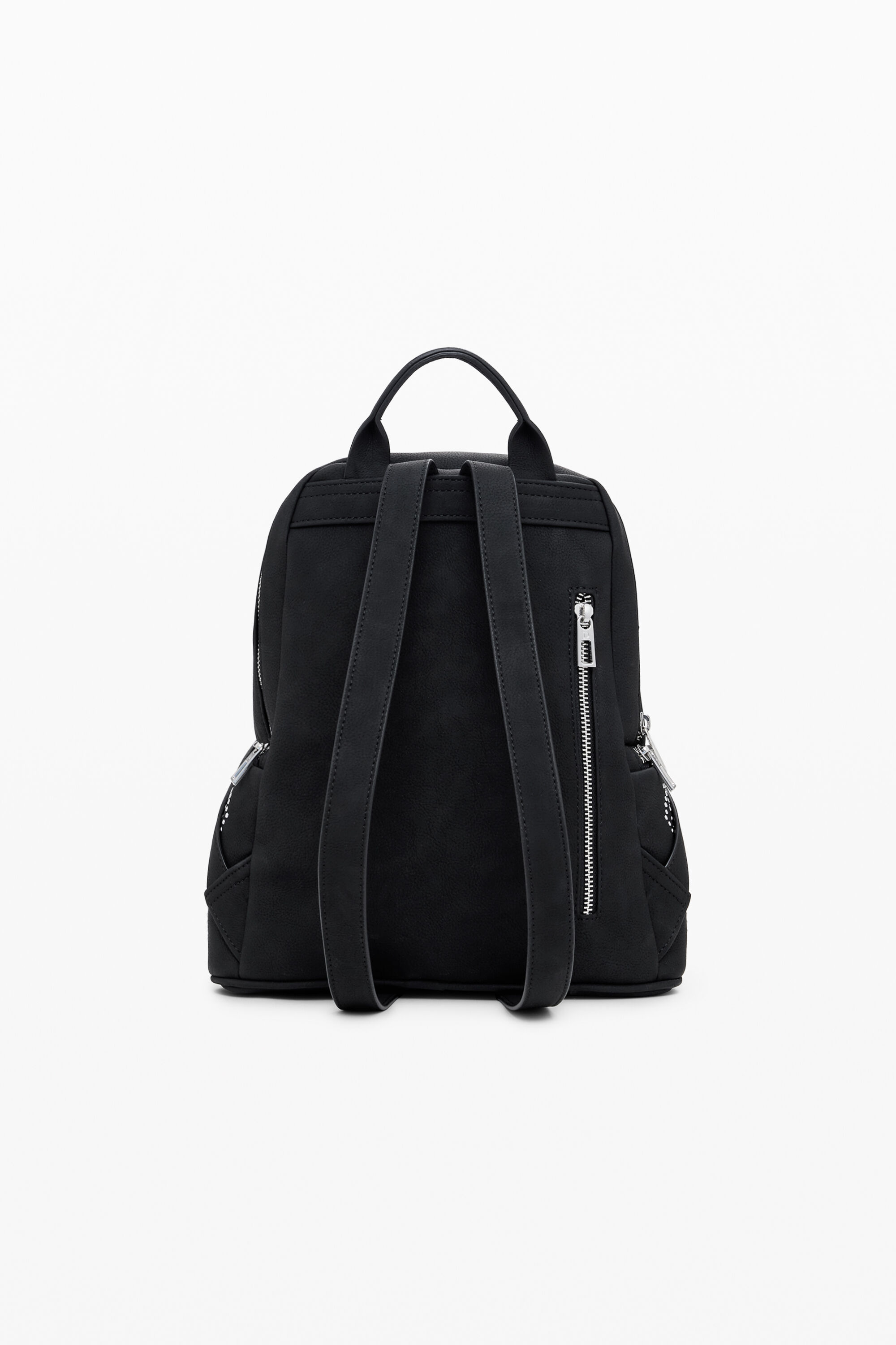 Zaino piccolo effetto pelle, con molteplici tasche esterne e dettagli di borchie metalliche.Molteplici tasche esterneTasca posteriore esternaChiusura: con cernieraTasca interna con cernieraDettaglio del logo in applicazione metallicaCapacità: 10,13 l.Effetto pelleProgettato a BarcellonaMisura: 26,70 x 12,30 x 30,50 cm