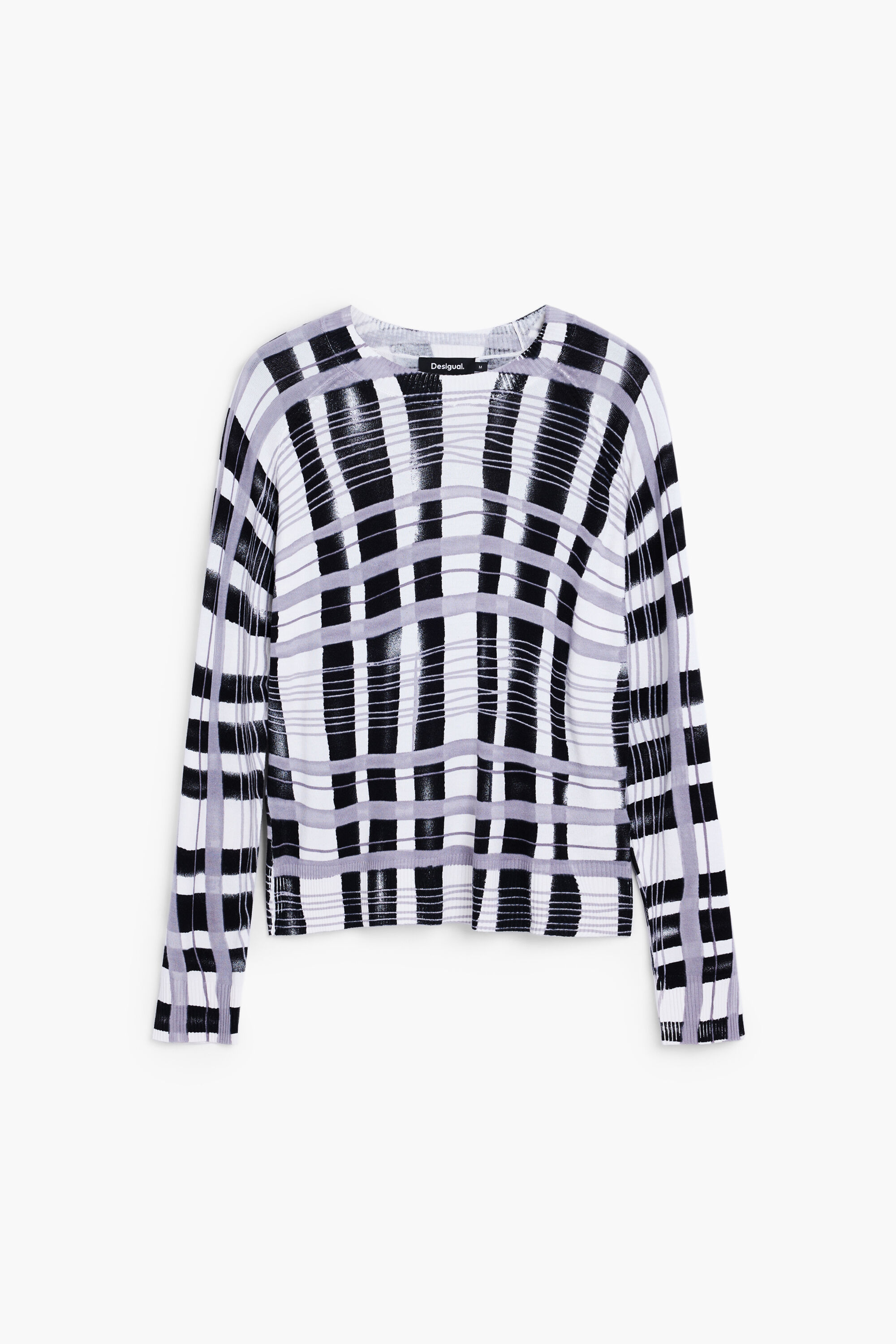 Maglione leggero a maniche lunghe e collo rotondo con stampa a righe stile mikado orizzontali e verticali.Stampa a righeFit: