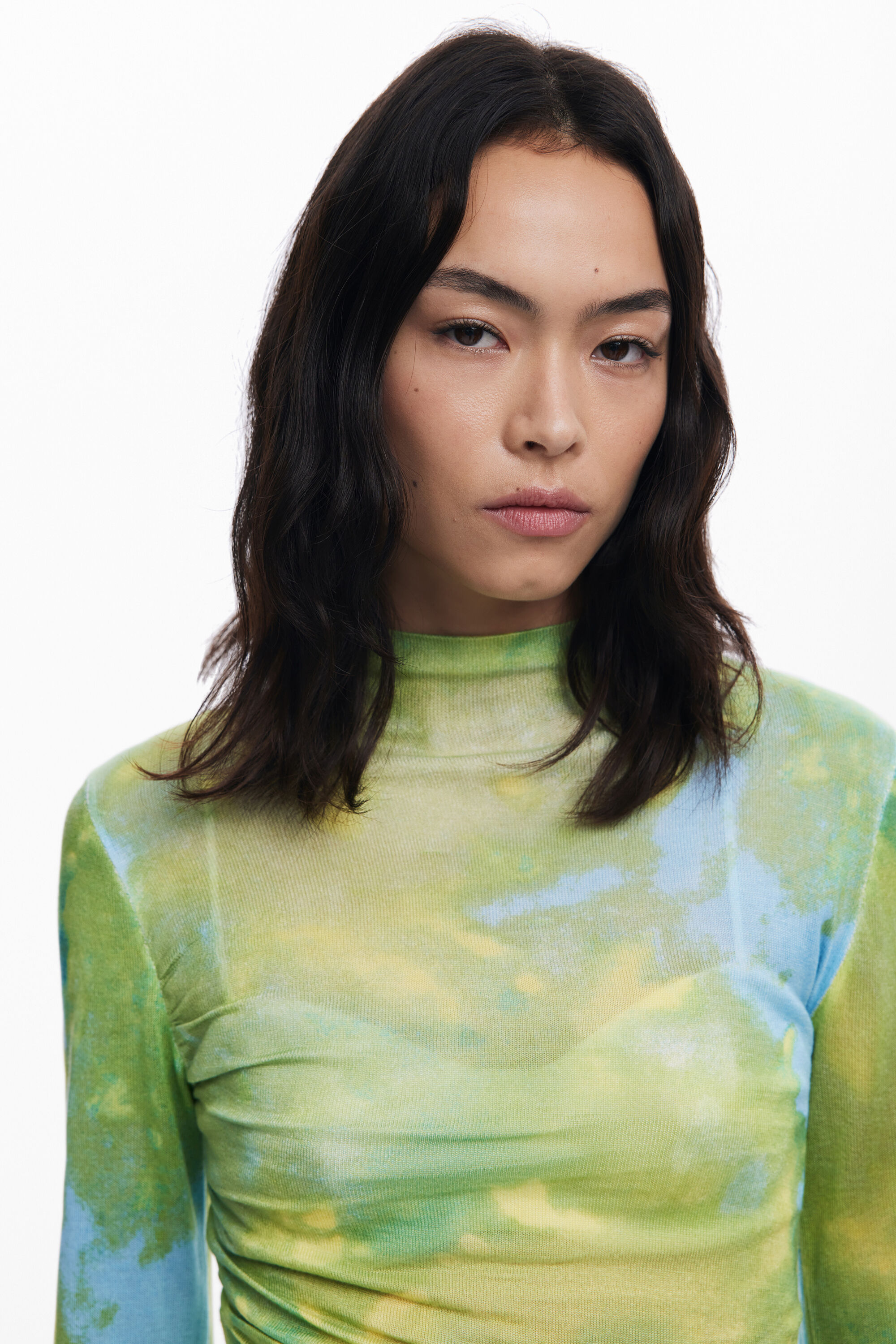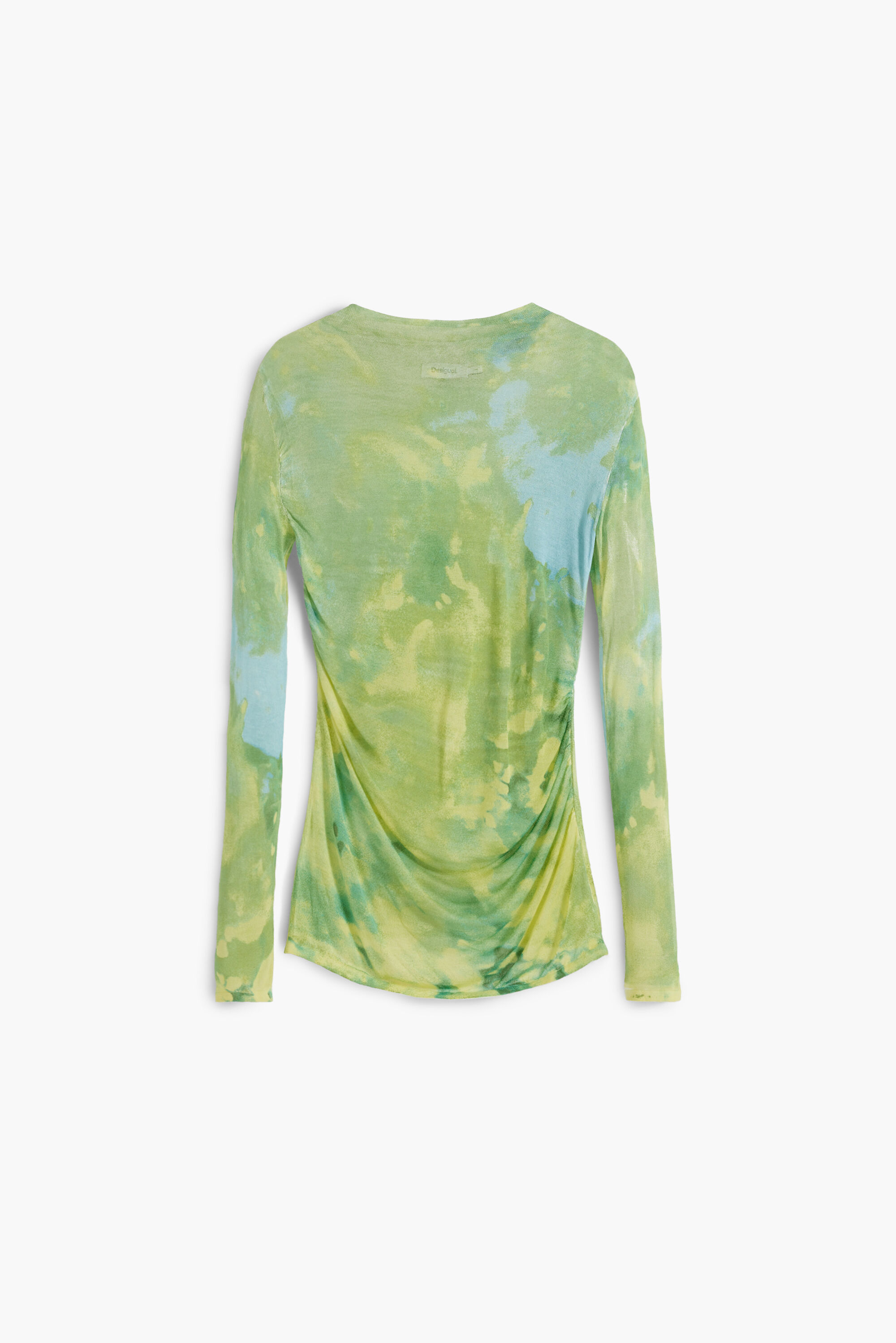 Maglione leggero al tatto morbido, collo rotondo e manica lunga, con drappeggio anteriore e stampa acquerellata.Stampa ArtyFit: