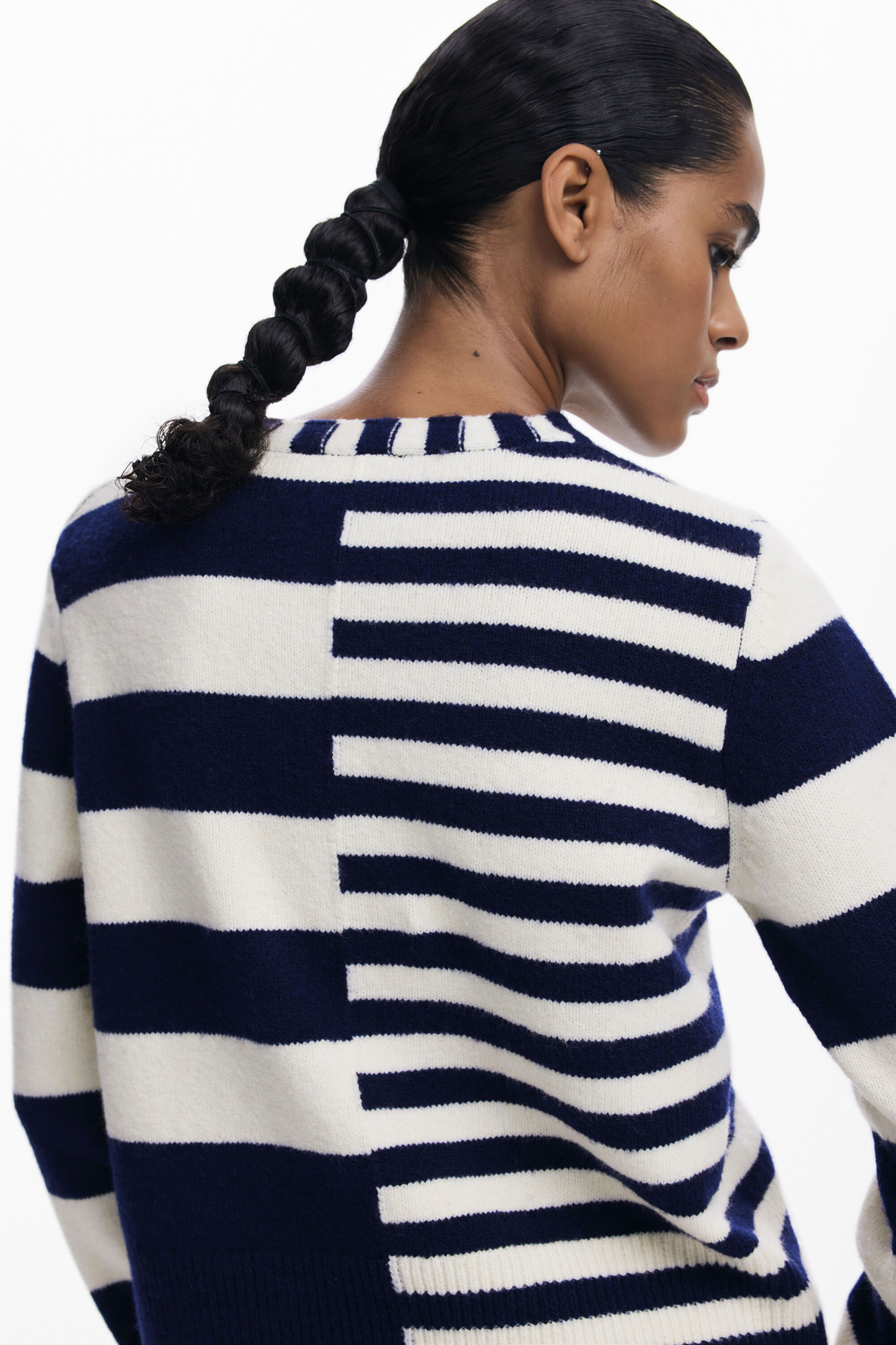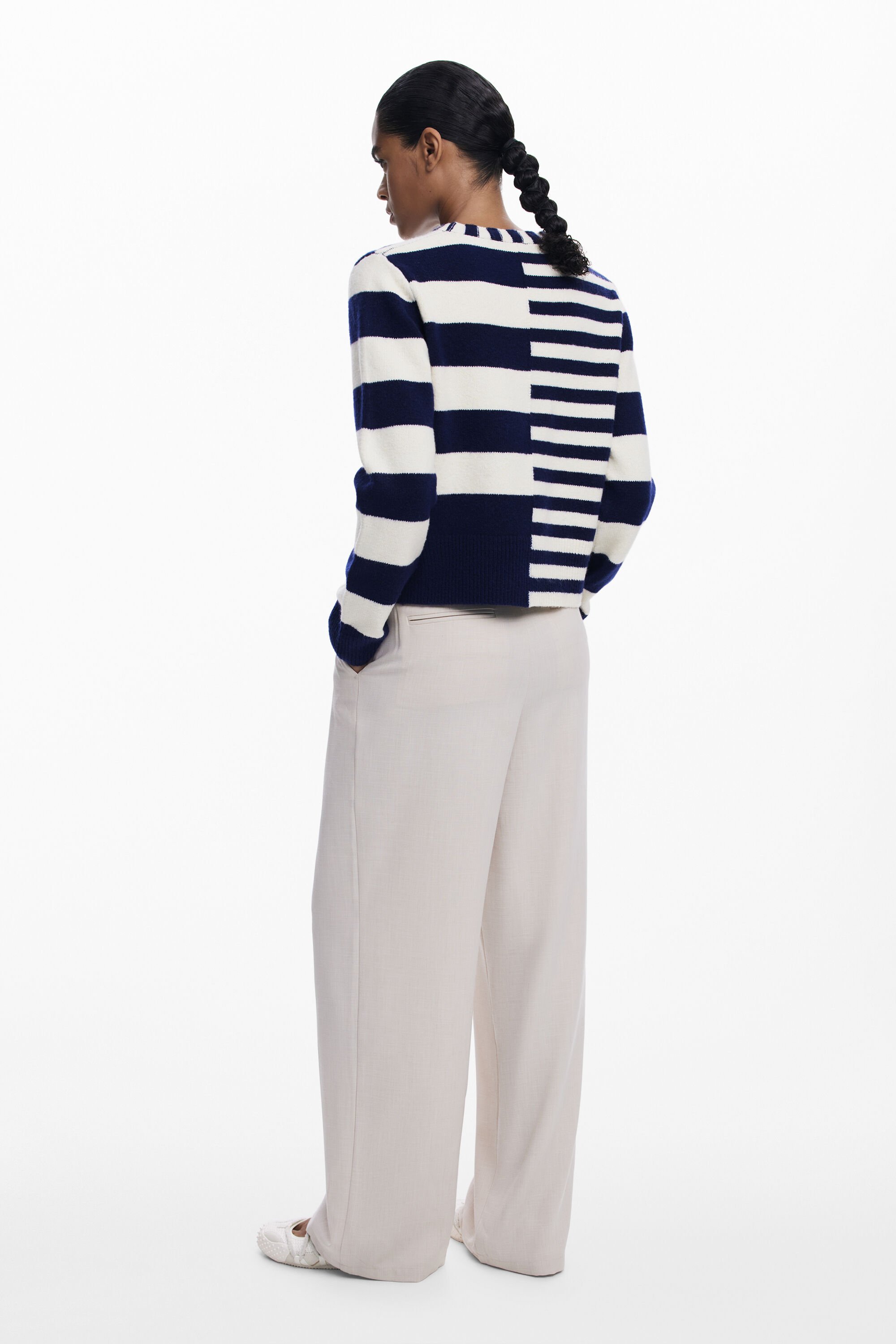 Maglione strutturato a maniche lunghe e collo rotondo con stampa a righe di diverse dimensioni e dettaglio di logo ricamato.Motivo a righeFit: RegularCollo: rotondoManica: LungaDettaglio di logo ricamatoStampa a righeCollezione AW25Progettato a Barcellona