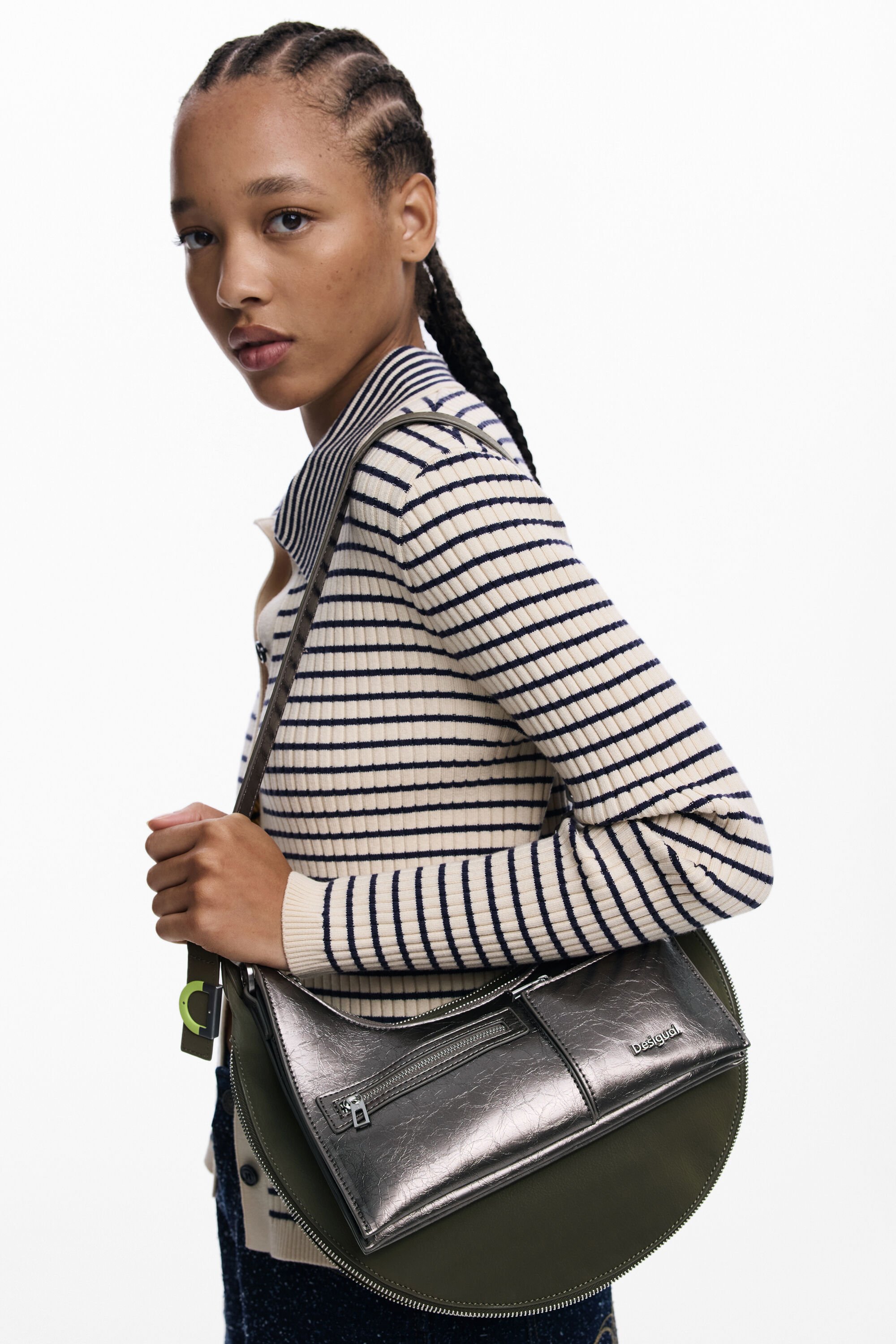 Borsa a spalla convertibile, con parti rimovibili che si possono usare separatamente, molteplici tasche esterne e interne, colore tinta unita, effetto metallizzato e manici intercambiabili.3 in 1Convertible: 3 borse in 1Molteplici tascheChiusura: con cernieraManici intercambiabiliSmontabileDettaglio del logo in applicazione metallicaPuò essere utilizzato separatamenteEffetto pelleEffetto metallizzatoProgettato a BarcellonaMisure: 32 x 6 x 19,70 cm