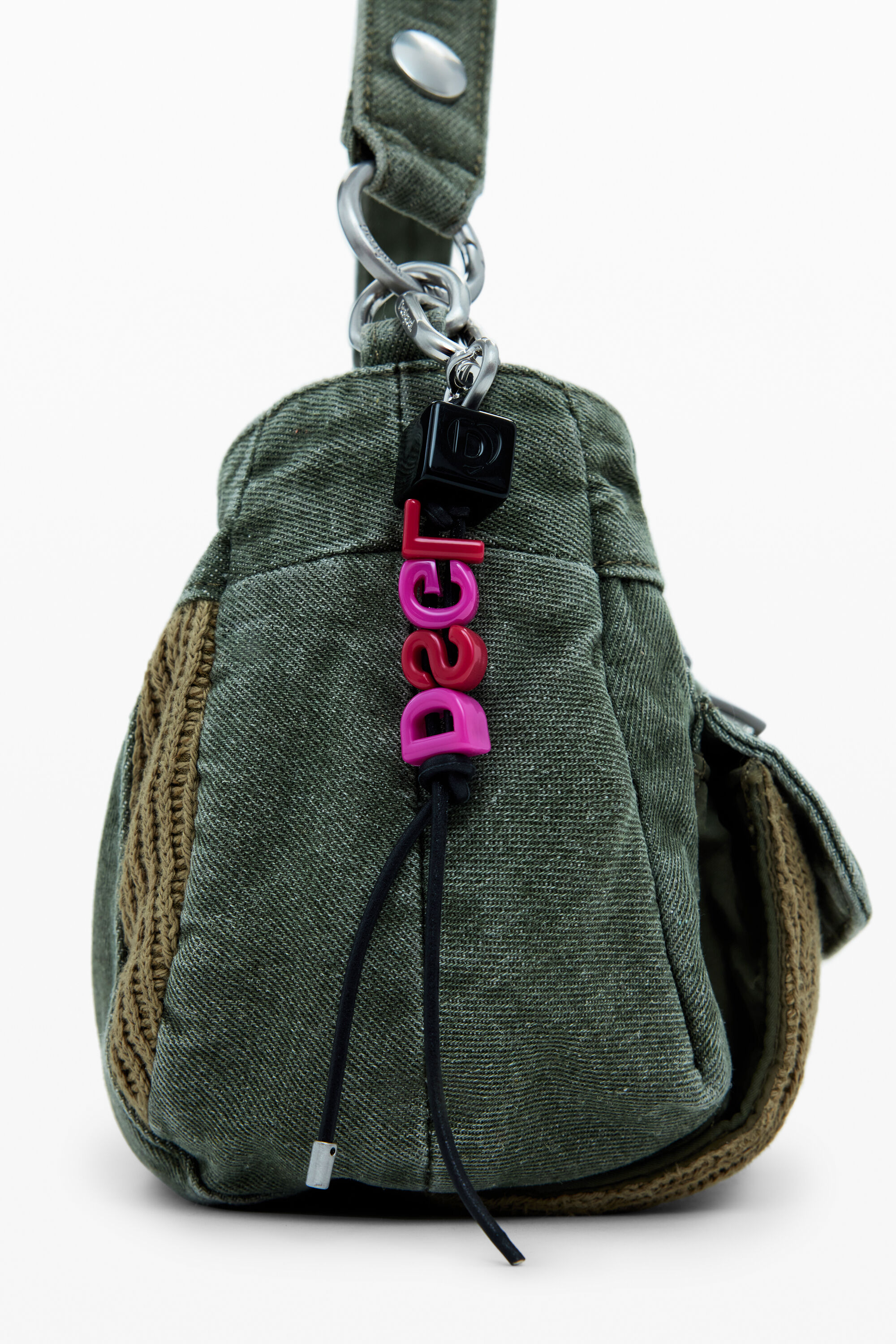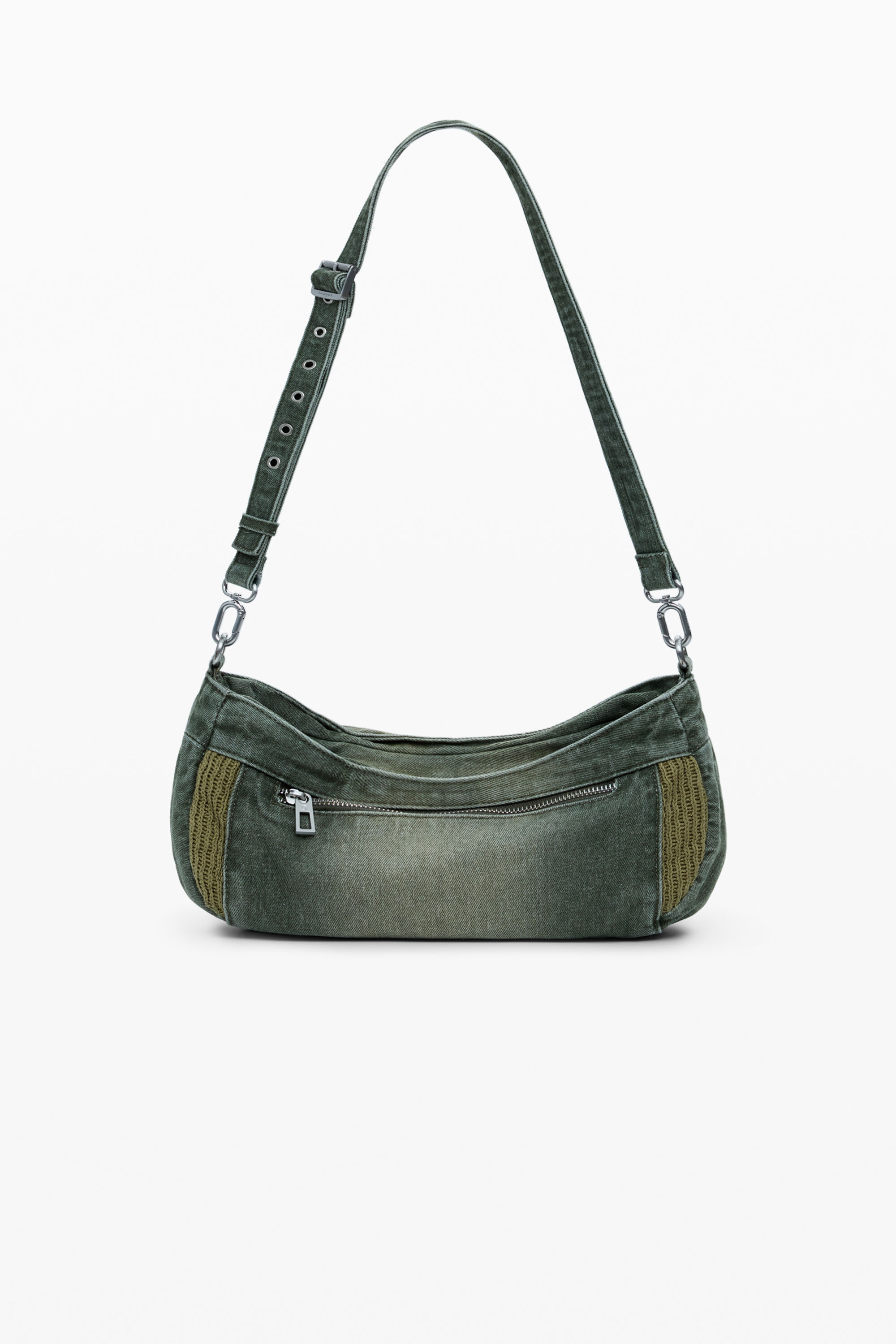 Borsa a mano con tracolla extra per indossarla a tracolla, tasche con cerniera e effetto consumato rifinita in due materiali diversi.BicoloreStile: TracollaChiusura: con cernieraTasca internaDue manici intercambiabiliPortachiavi rimovibileScomparto internoCollezione AW25Progettato a BarcellonaMisure: 25,20 x 11,40 x 18,10 cm