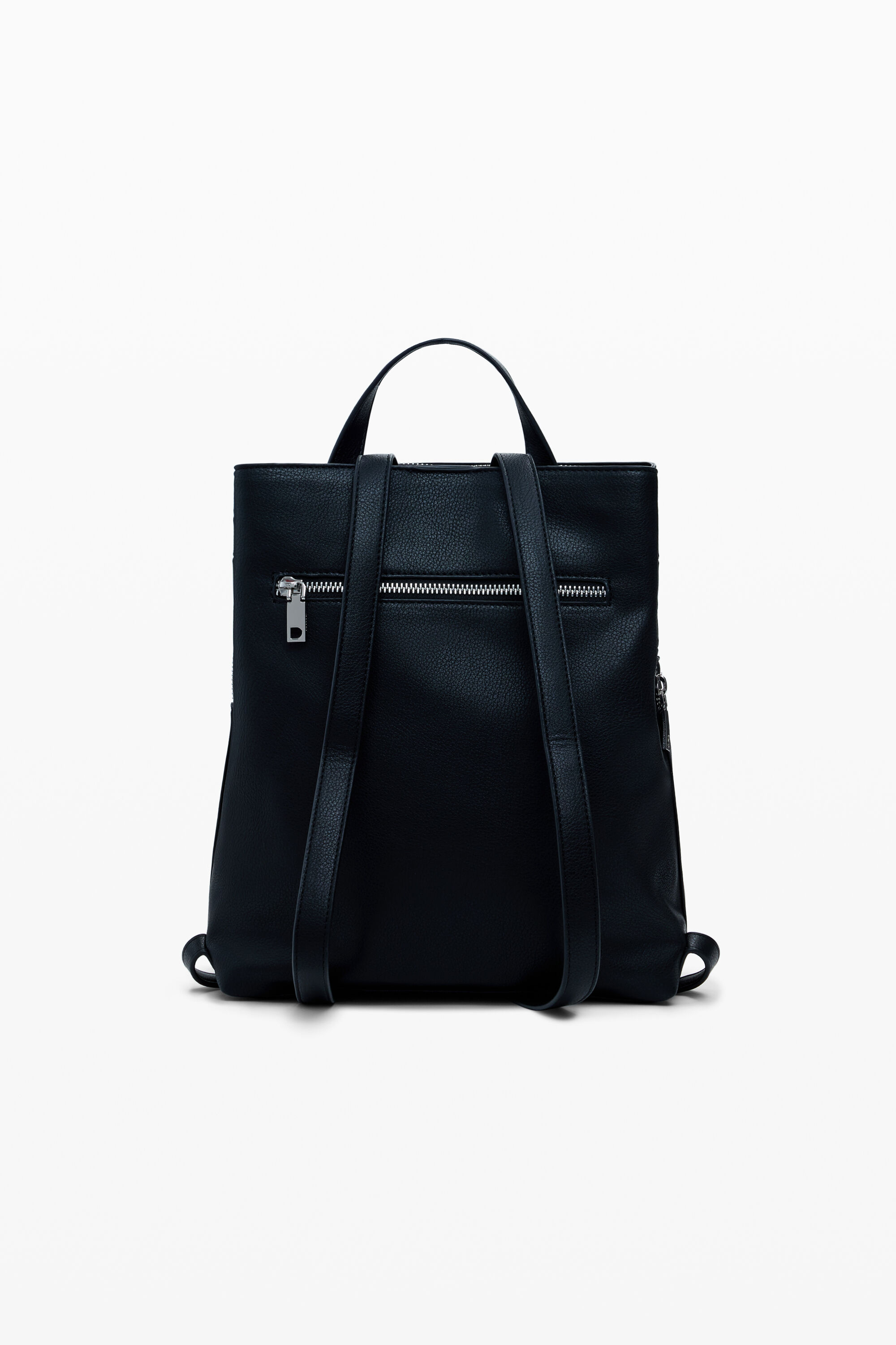 Zaino piccolo in effetto pelle, con trafori, fondo stampato e dettaglio di borchie e applicazioni metalliche.Intagli con sfondo stampatoApplicazioni metallicheChiusura: con cernieraVari scomparti interniManico rimovibile tipo borsaFodera stampataDettaglio del logo in applicazione metallicaCapacità: 6,15 l.Effetto pelleProgettato a BarcellonaMisure: 24 x 9 x 30,60 cm