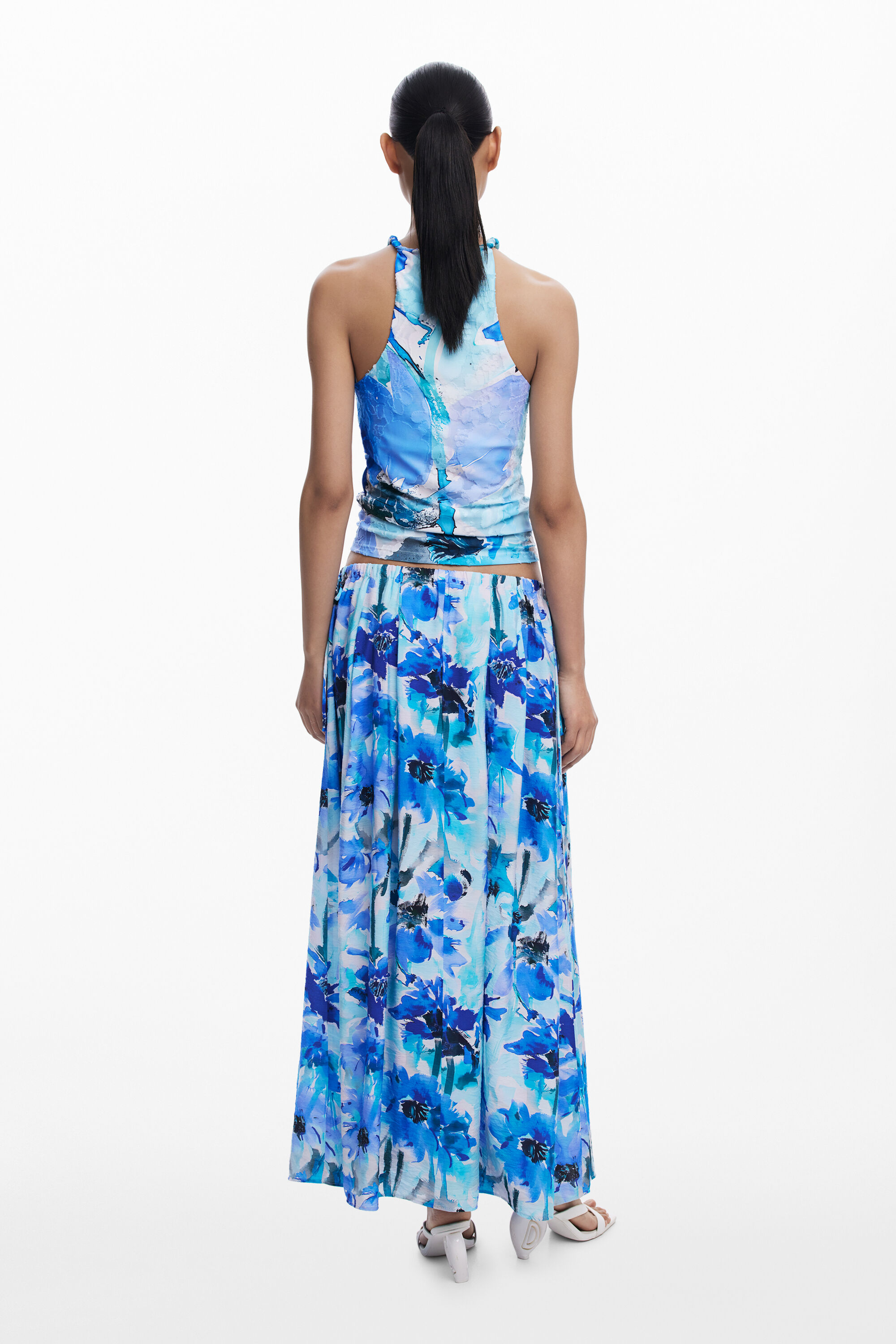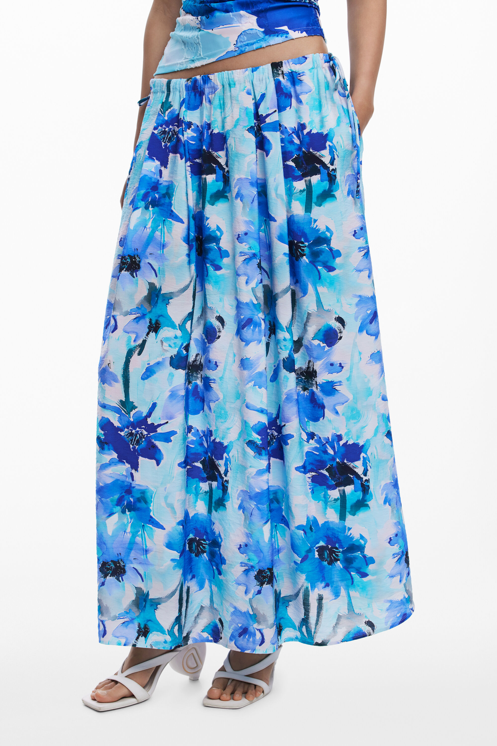 Midi skirt with a soft touch, A-line cut, elastic waistband, and floral print in blue tones.Floral PrintFit: