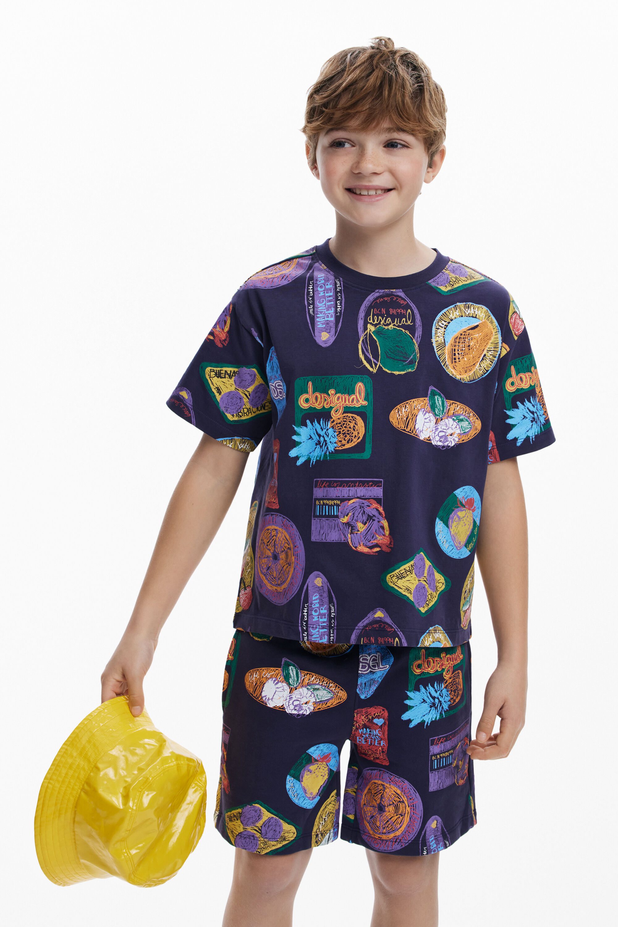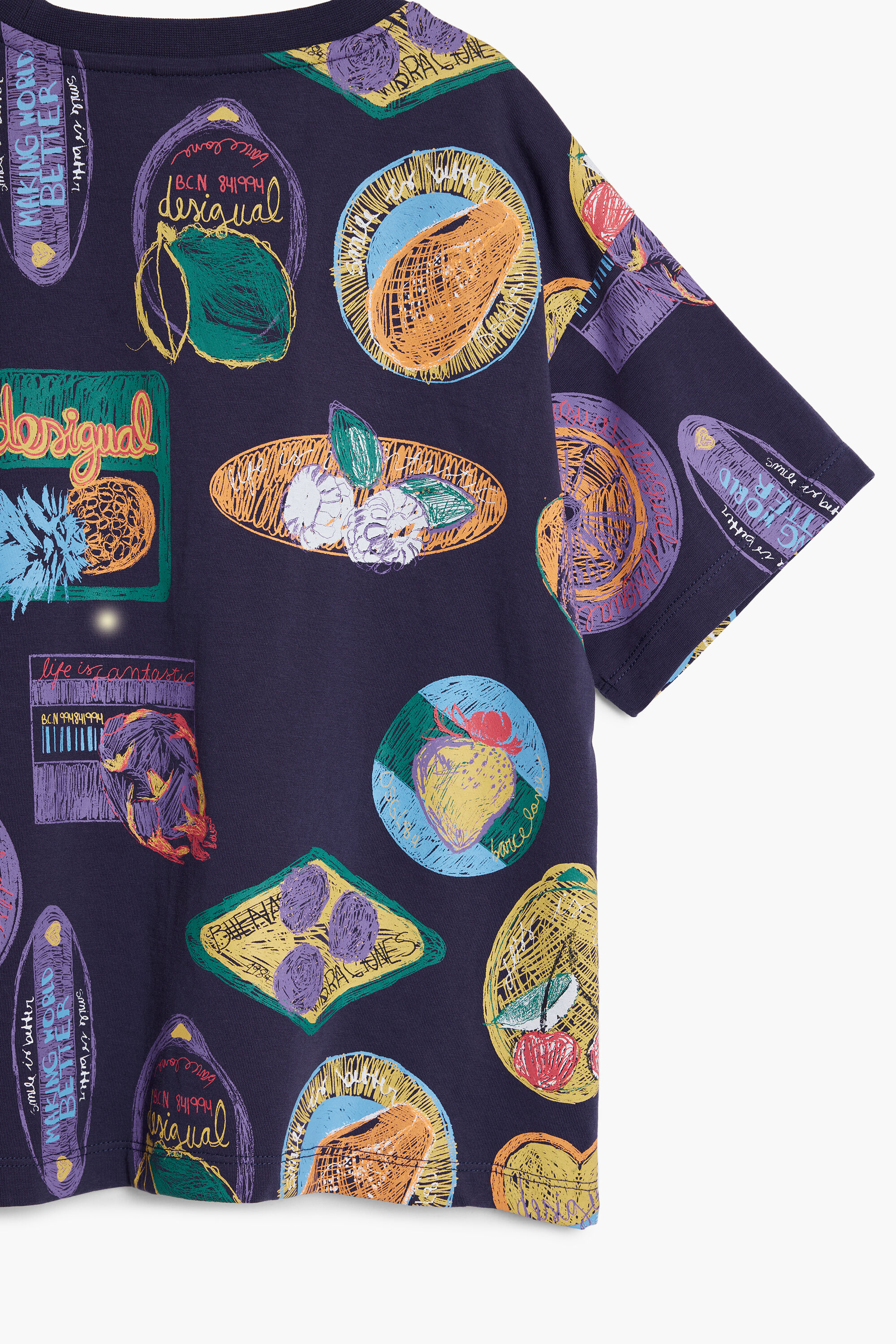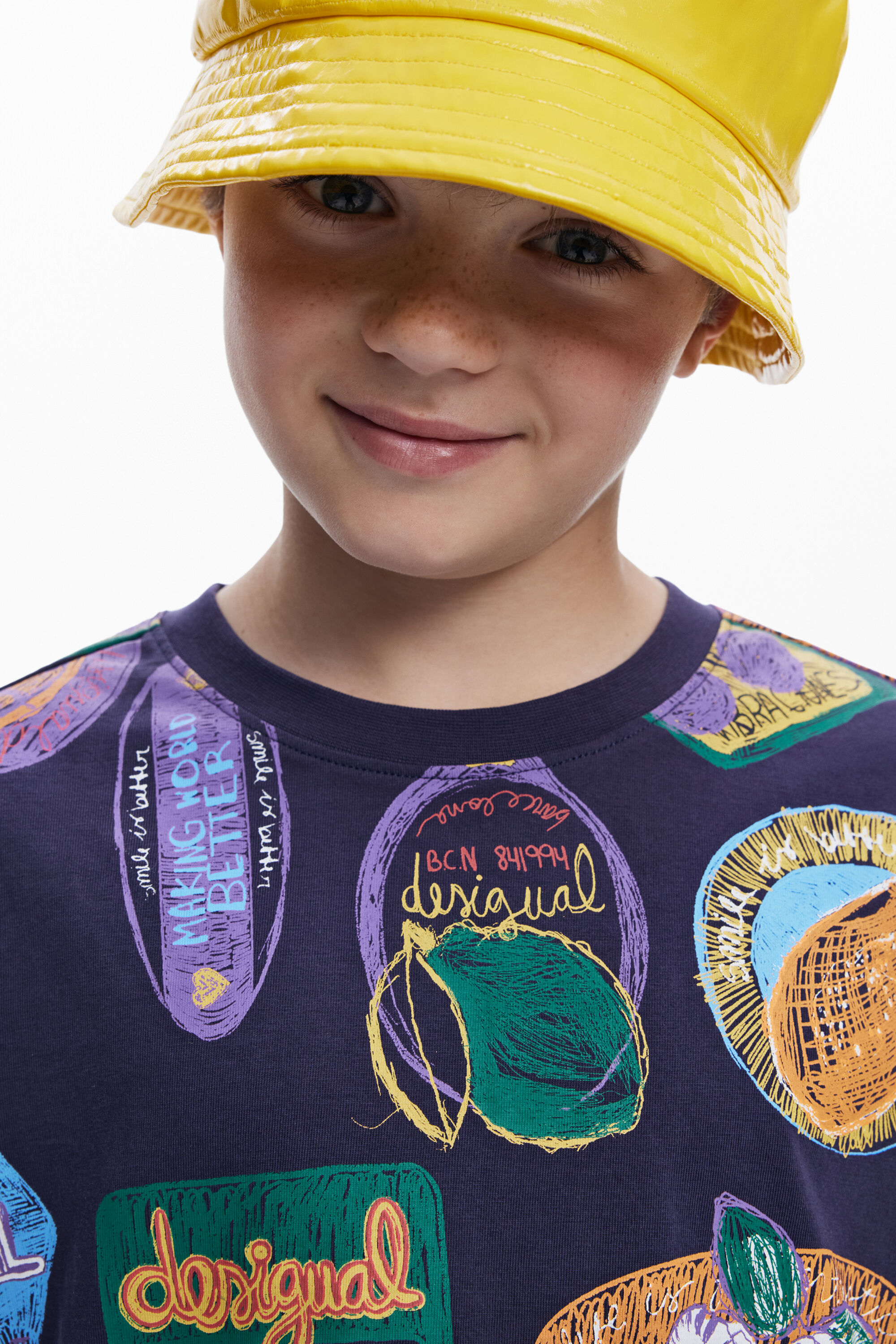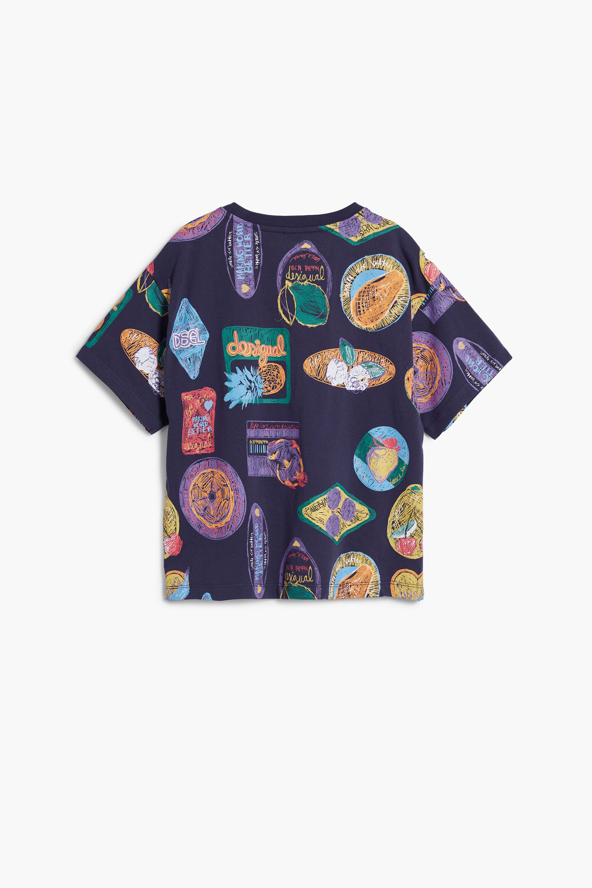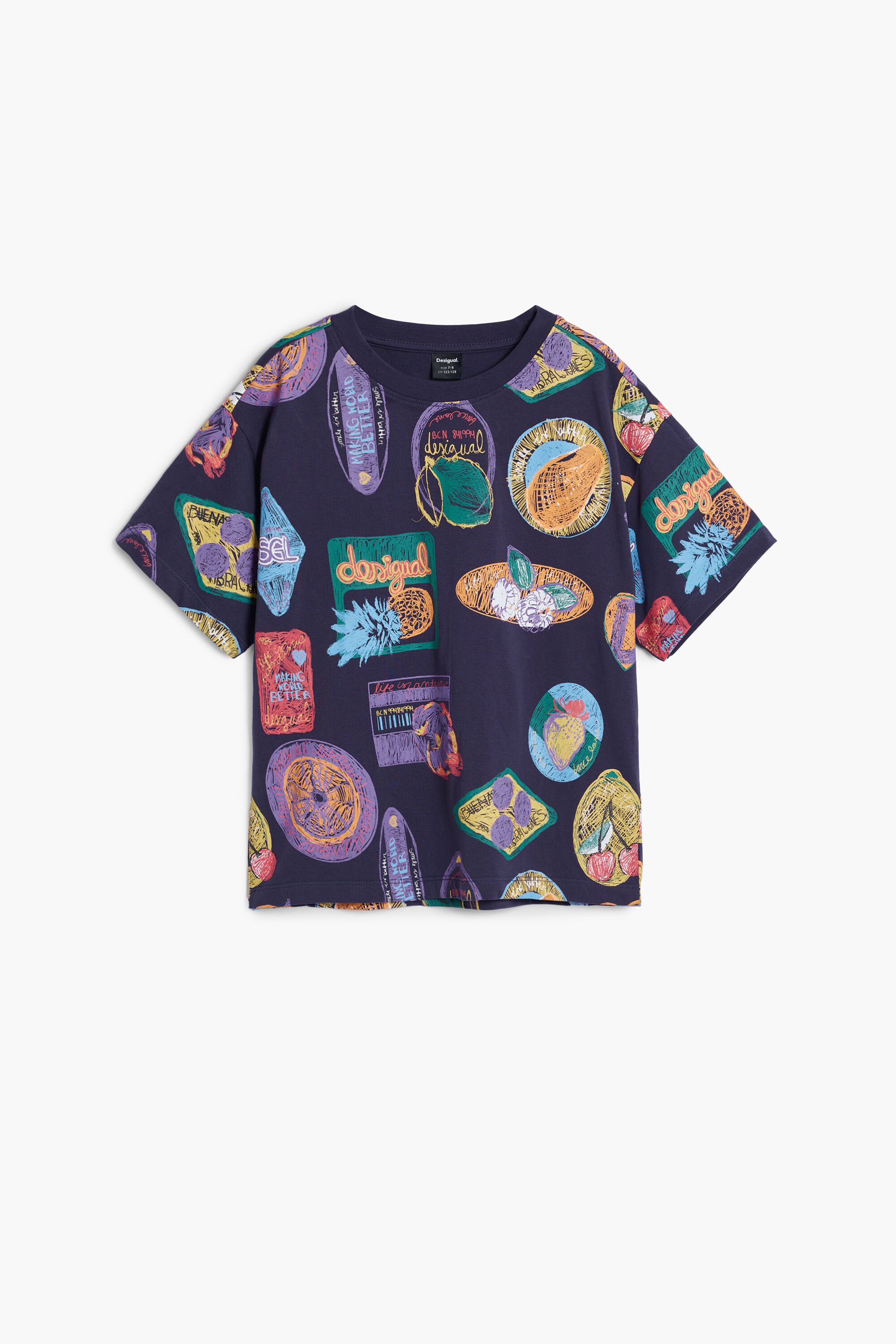 Cotton T-shirt, short-sleeved and round neck, with a print of multiple colorful stamps.Arty printFit: RegularSleeve: ShortWhen you buy cotton products from Desigual, you are supporting our investment in Better Cotton.