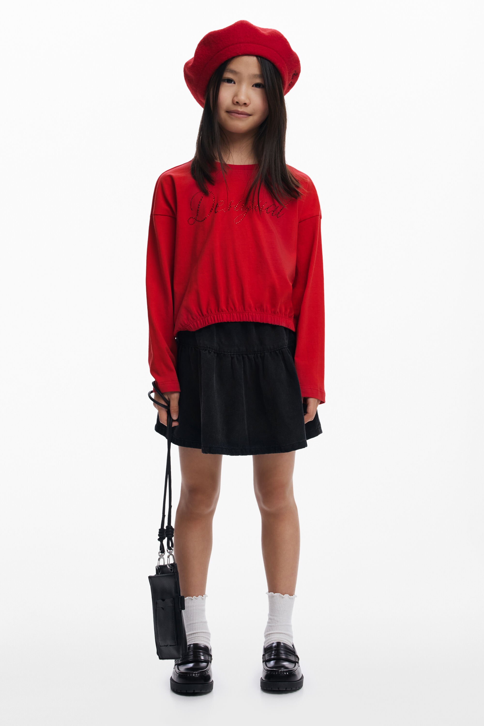 Long-sleeve T-shirt with a round neck, in cotton, in a solid color and with a logo detail in strass.Color: SolidSleeve: LongWhen you buy cotton products from Desigual, you are supporting our investment in Better Cotton.