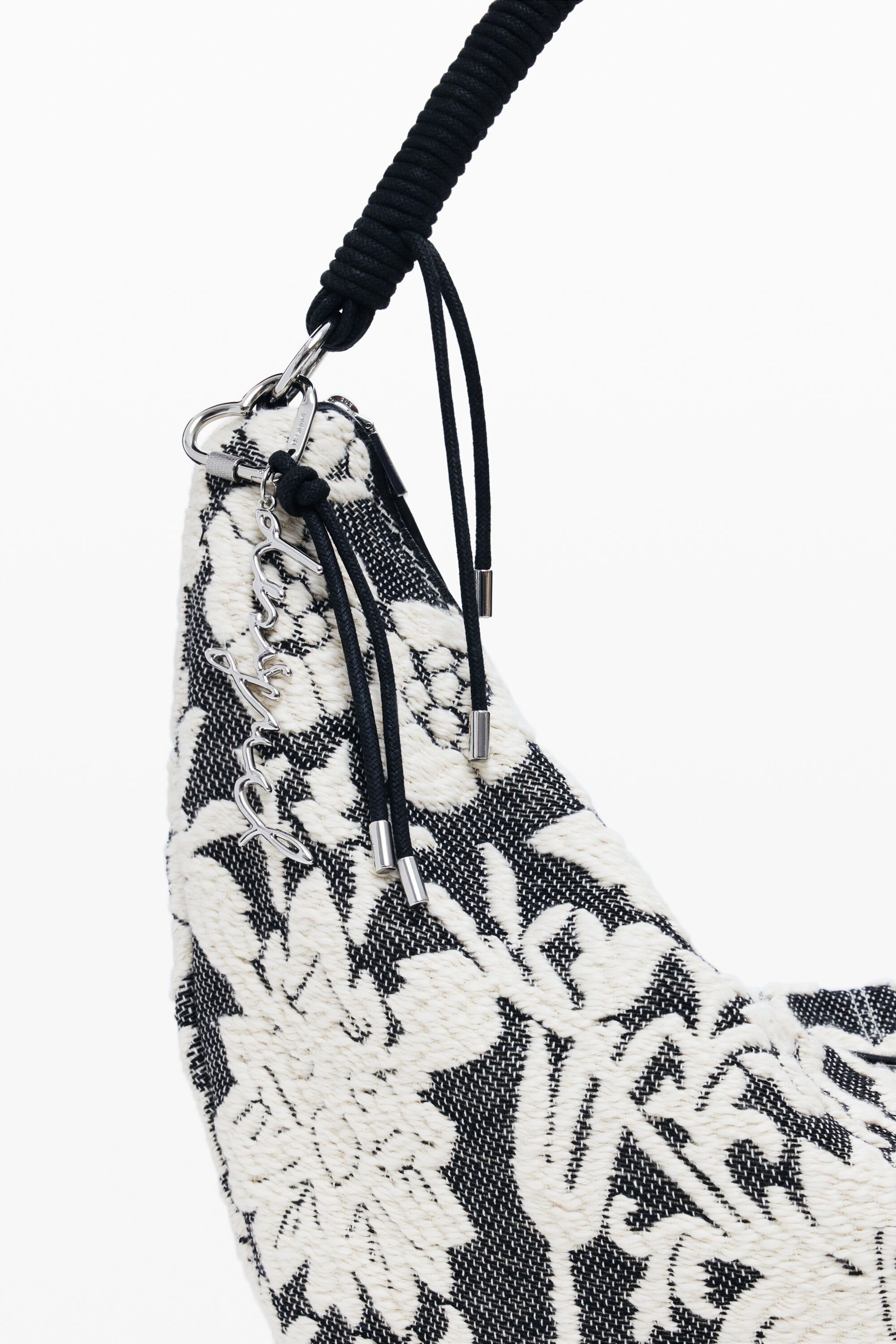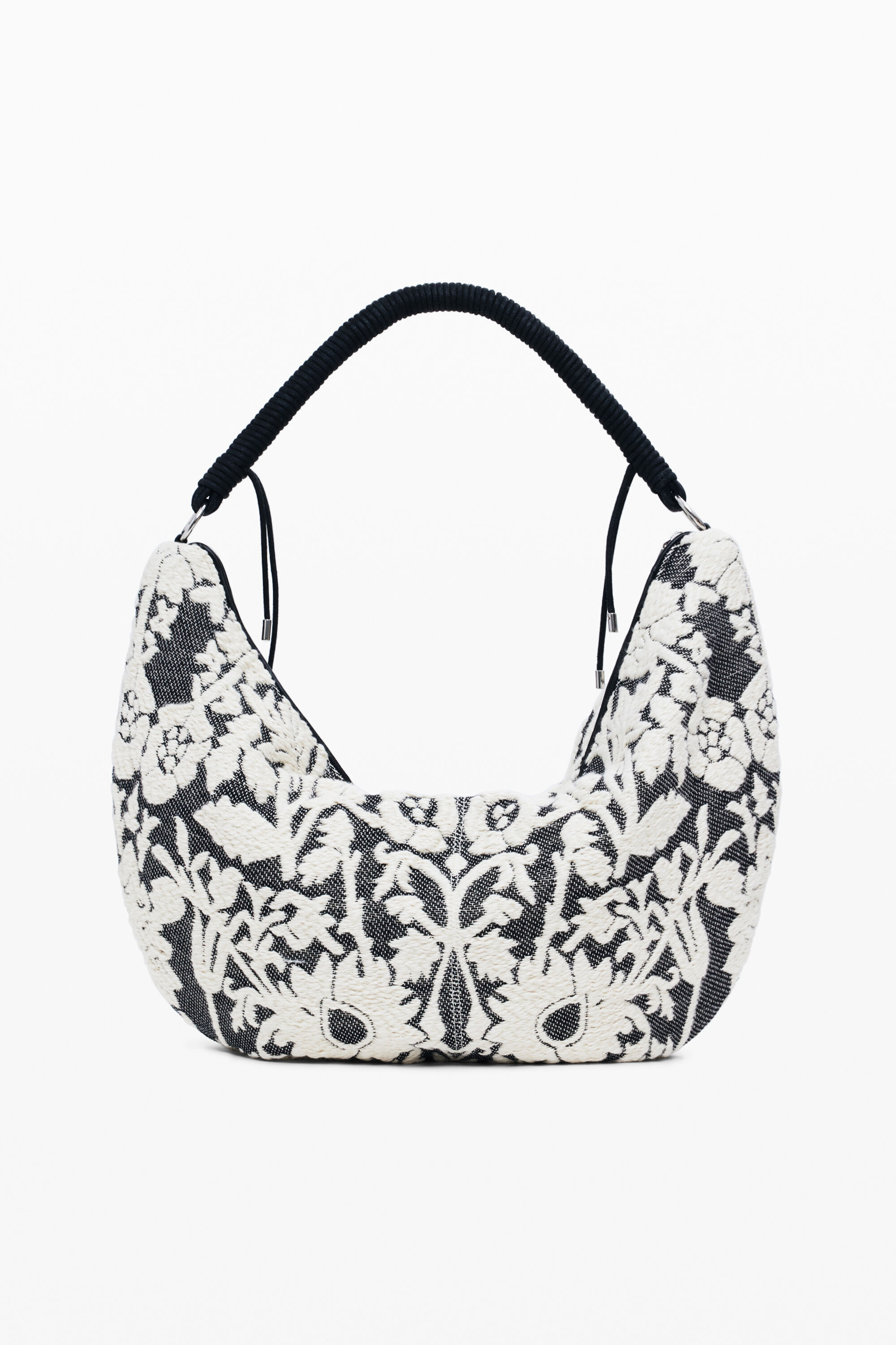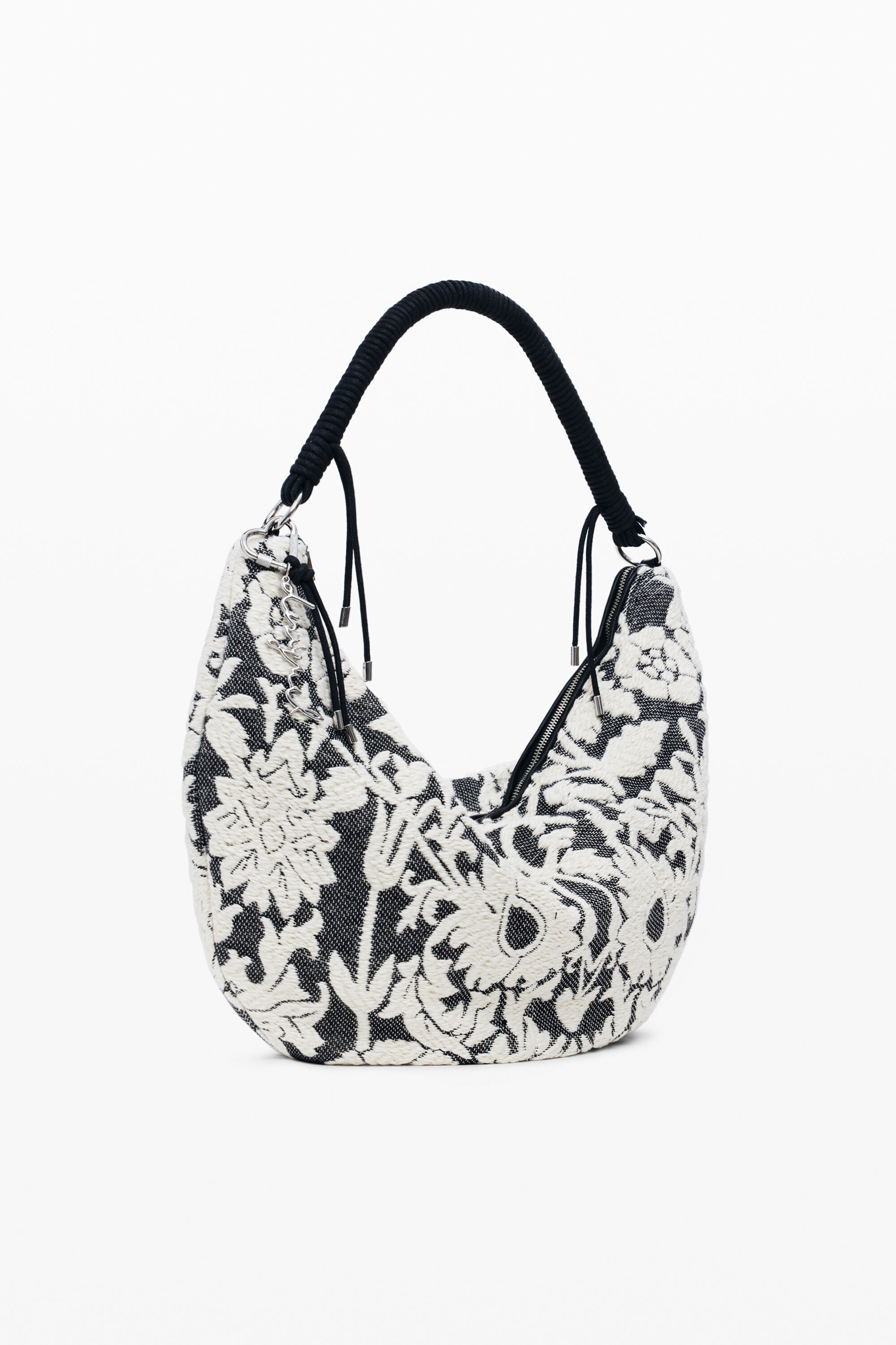 Large-format hobo shoulder bag with braided handle, zipper closure, and floral devoré print.Floral PrintDevoré effectClosure: