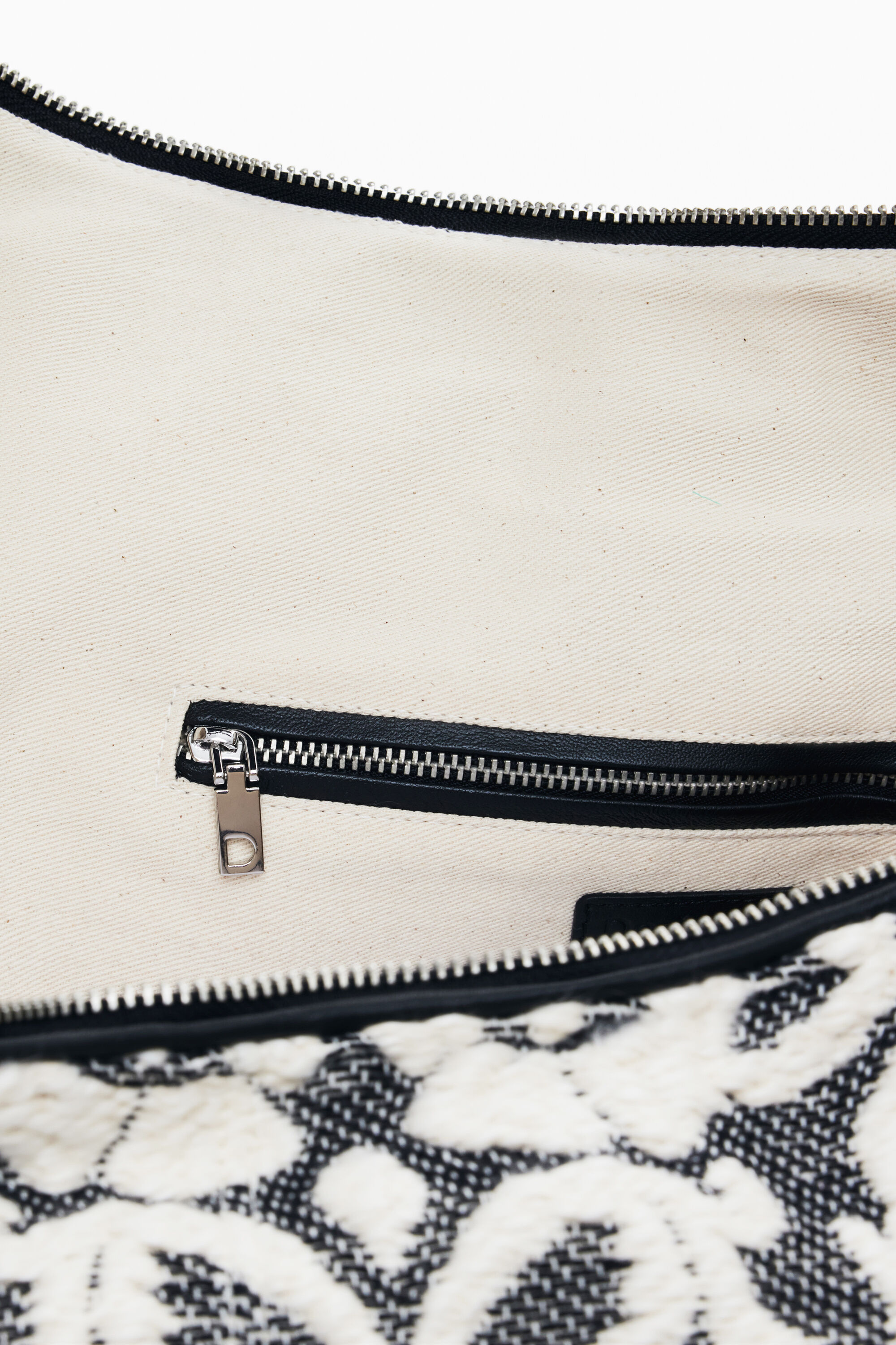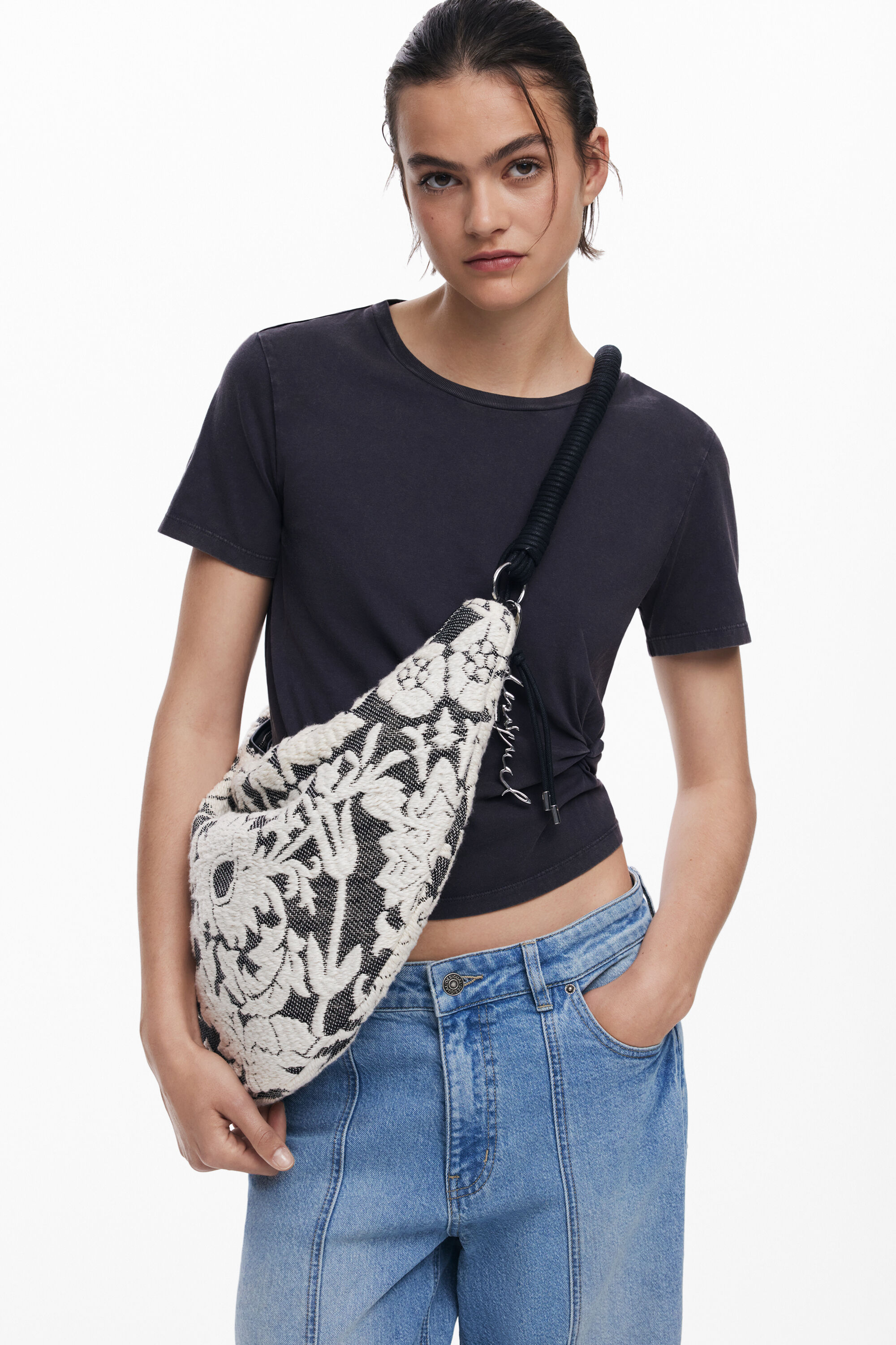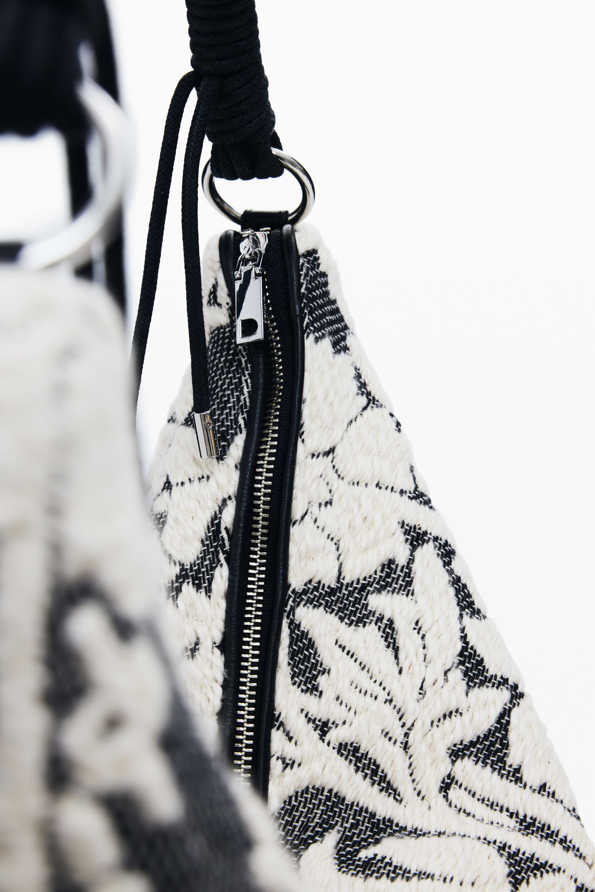 Large-format hobo shoulder bag with braided handle, zipper closure, and floral devoré print.Floral PrintDevoré effectClosure: