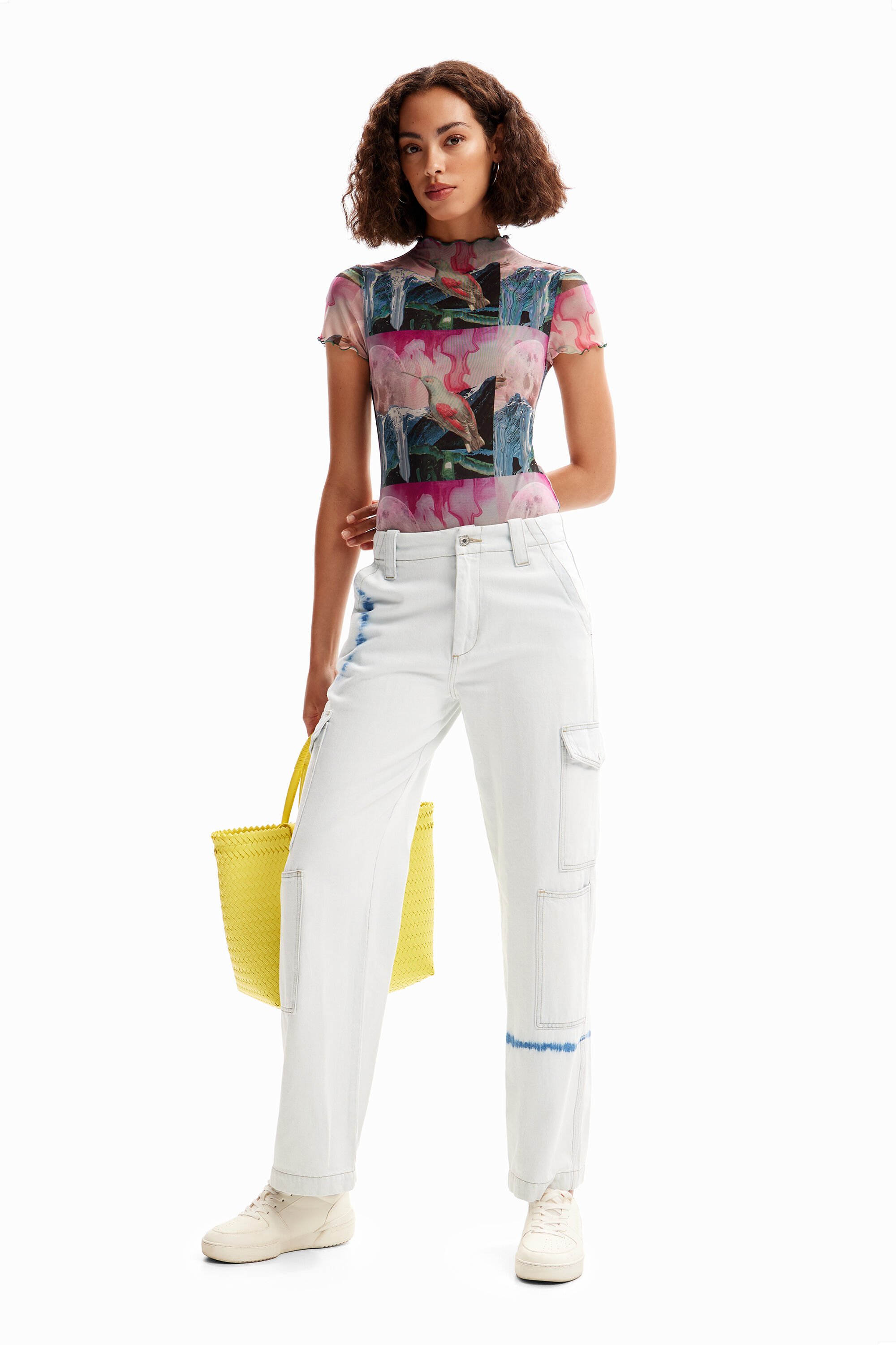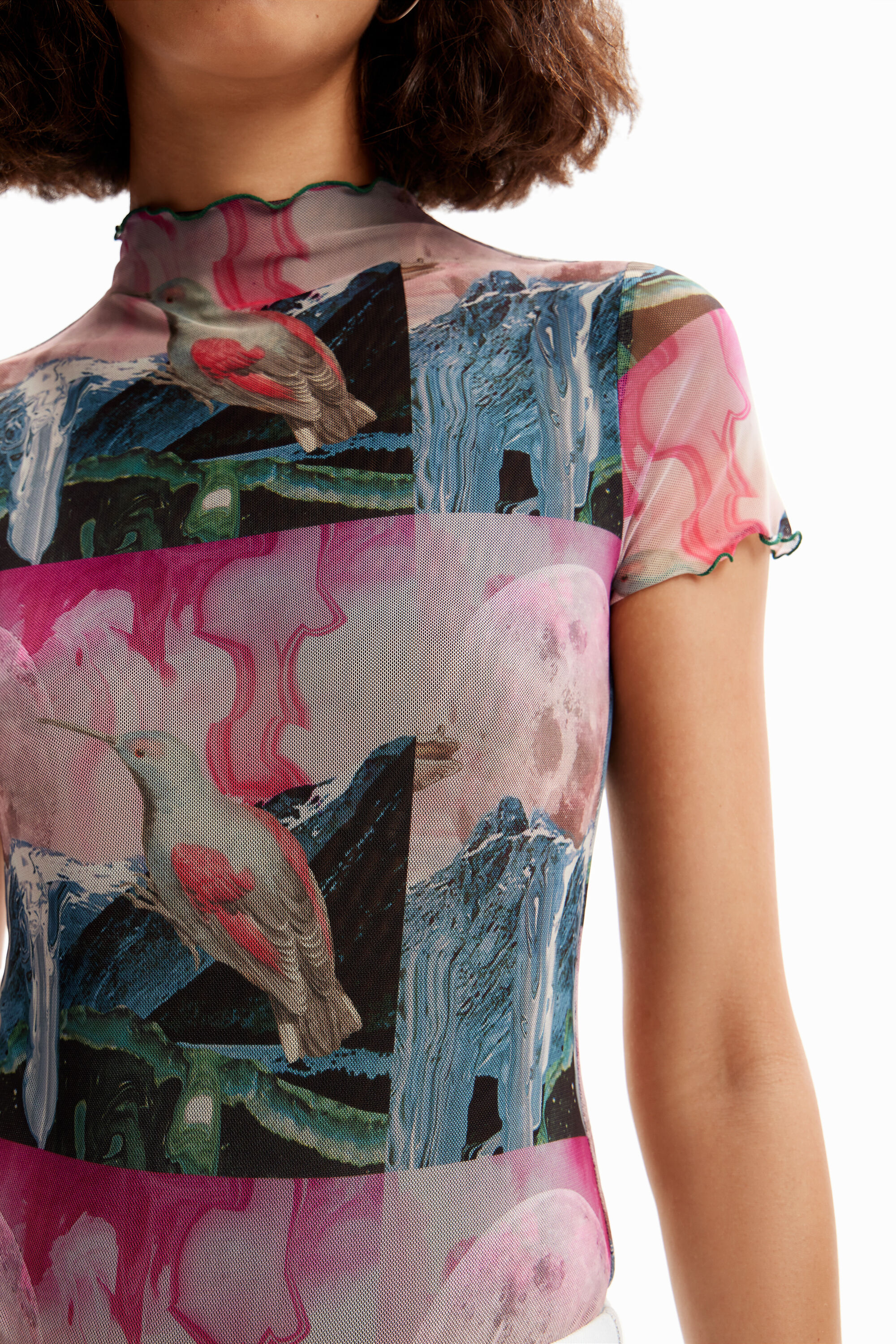 Featuring a fantasy print.Fit: SlimFantasy digital collage printShort sleevesSnap fasteners at the bottomLined body and sheer sleevesContrasting wavy piping on neck and sleevesRecycled polyester