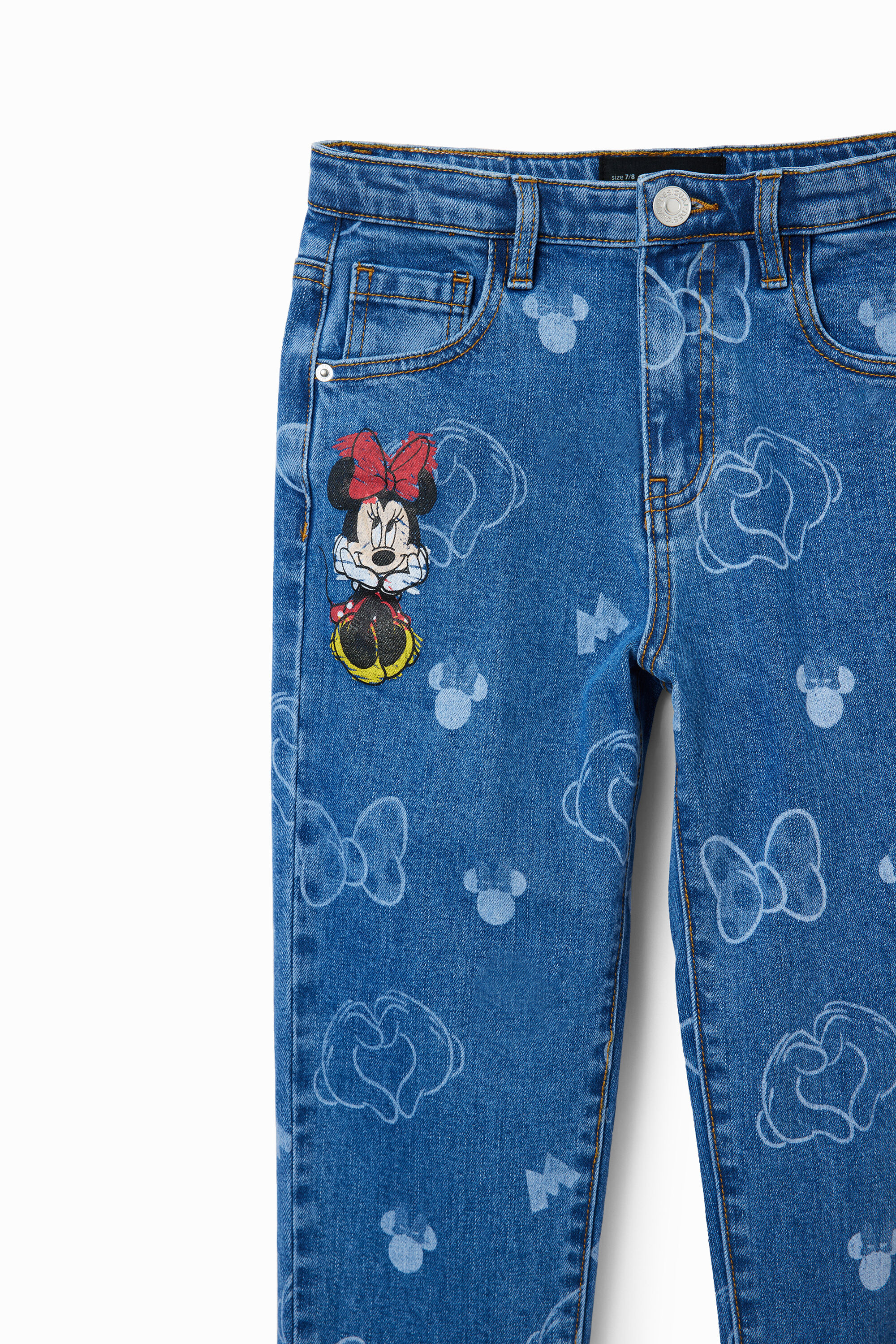High-waisted mom-fit jeans with straight legs, a washed effect and a Minnie Mouse print.Fit: MomLength: StandardLaser print with Minnie Mouse motifsHigh waistFive pocketsButton and zip closureSlightly stretchy fabricBy buying cotton products from Desigual, you’re supporting our investment in Better Cotton.