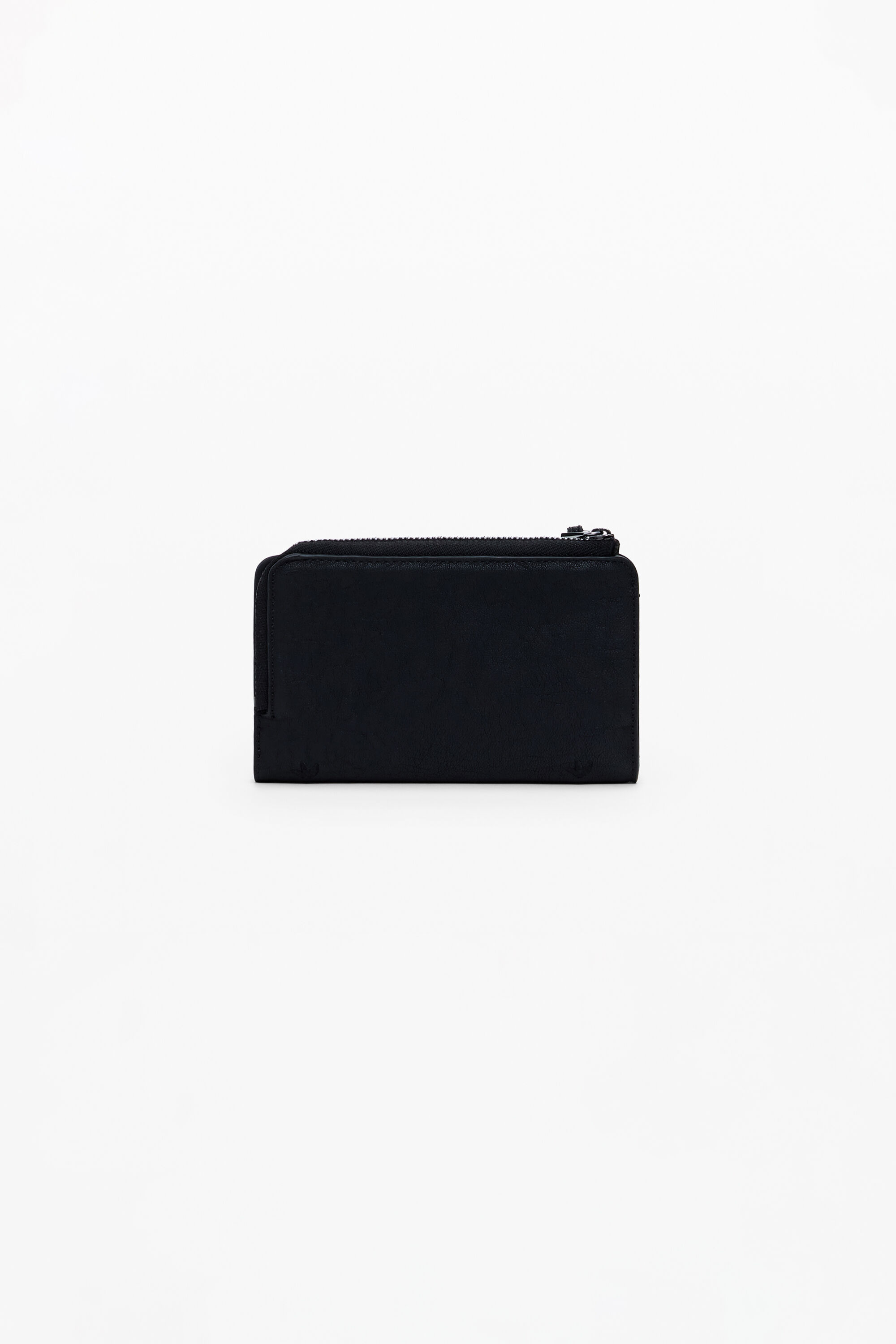 Medium faux leather wallet with embroidery, stud details, and logo in a solid color metal applique.