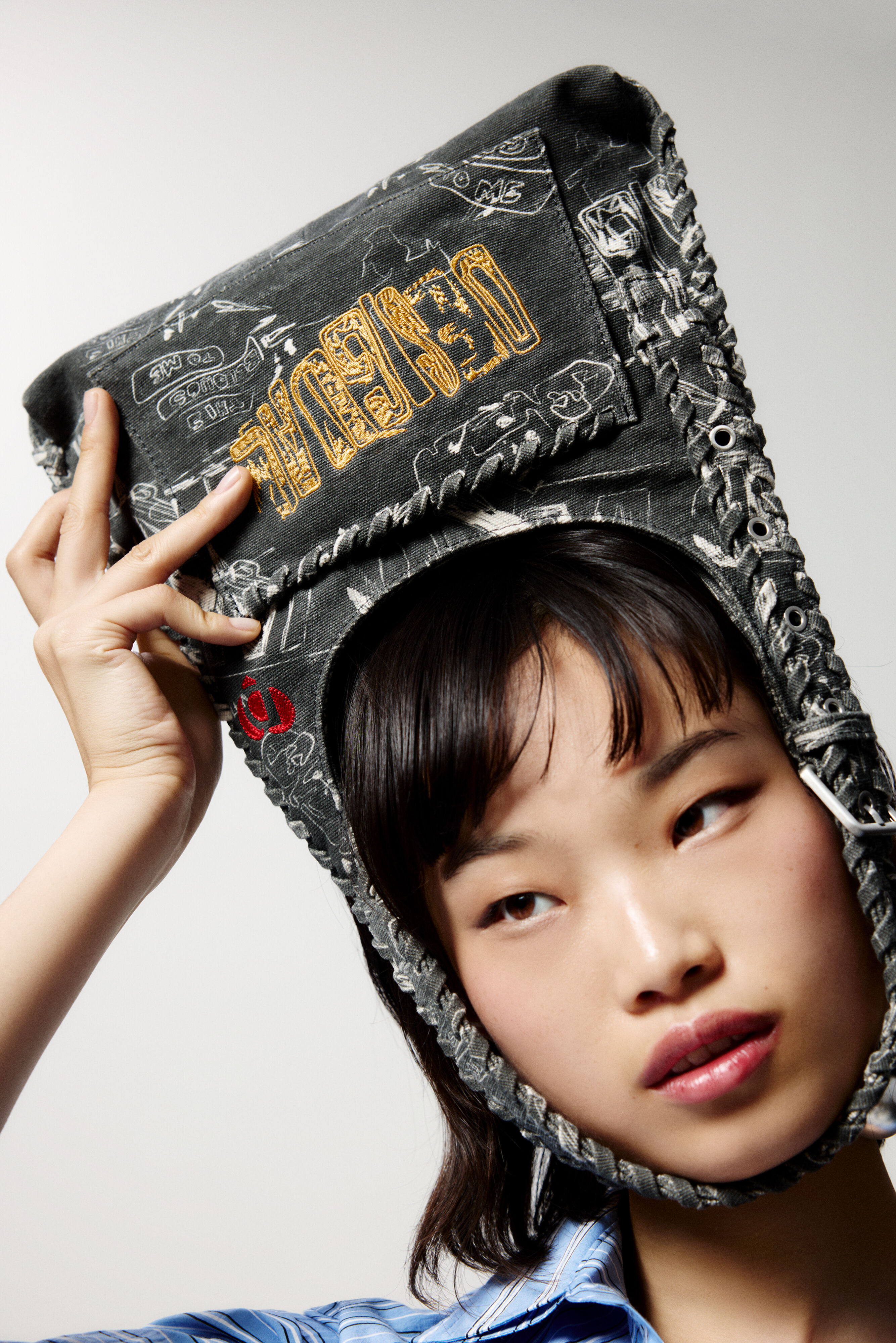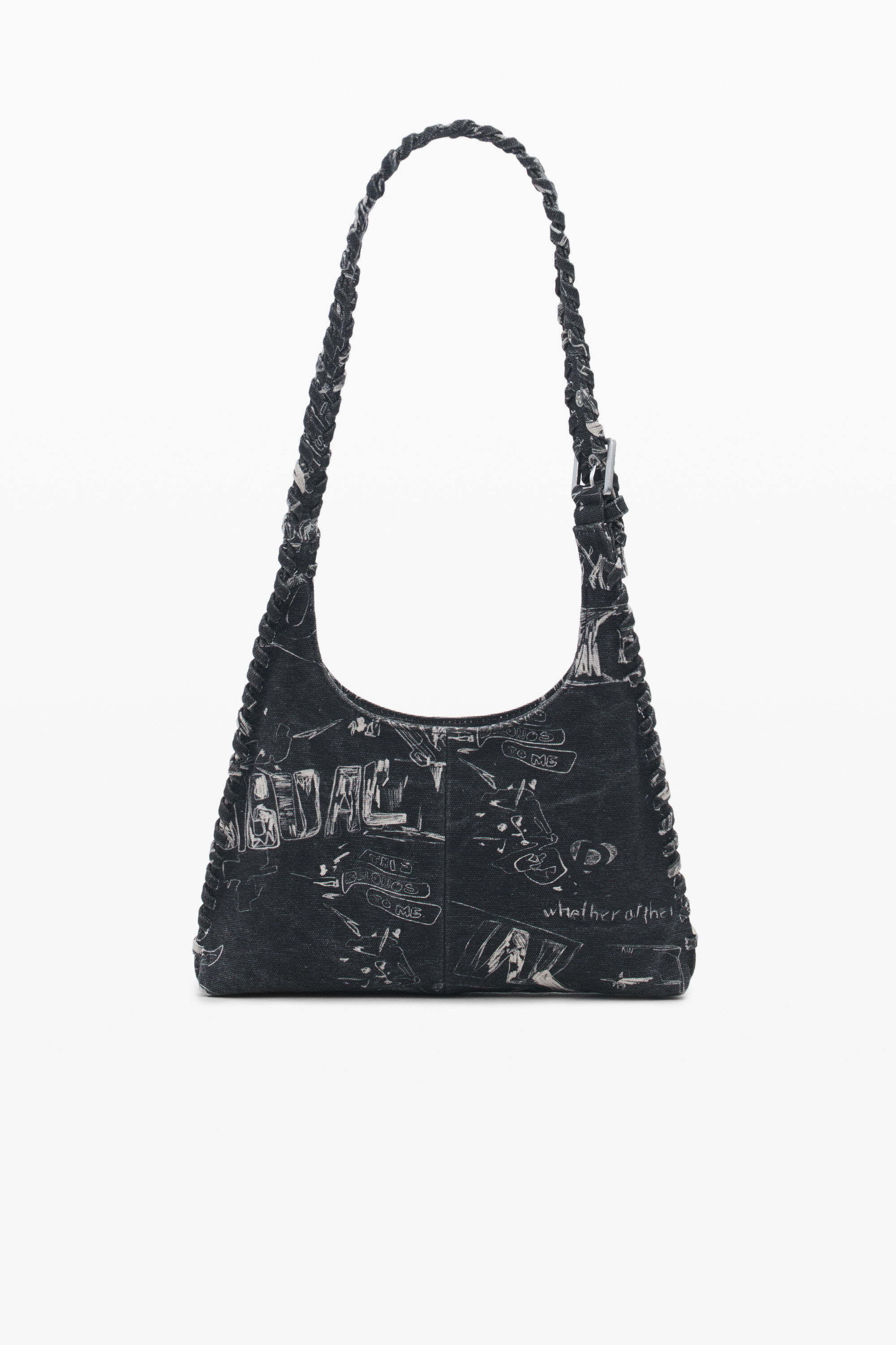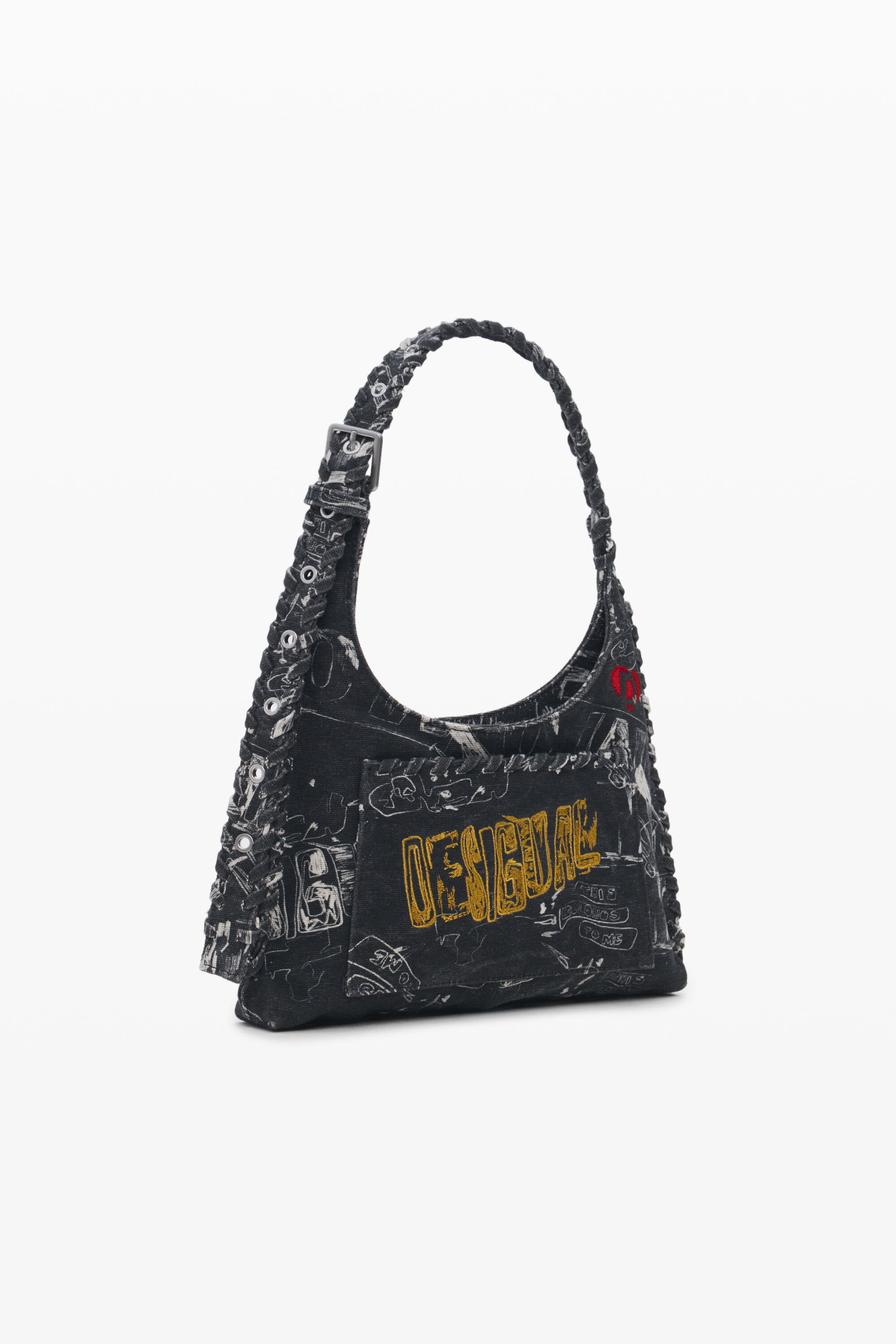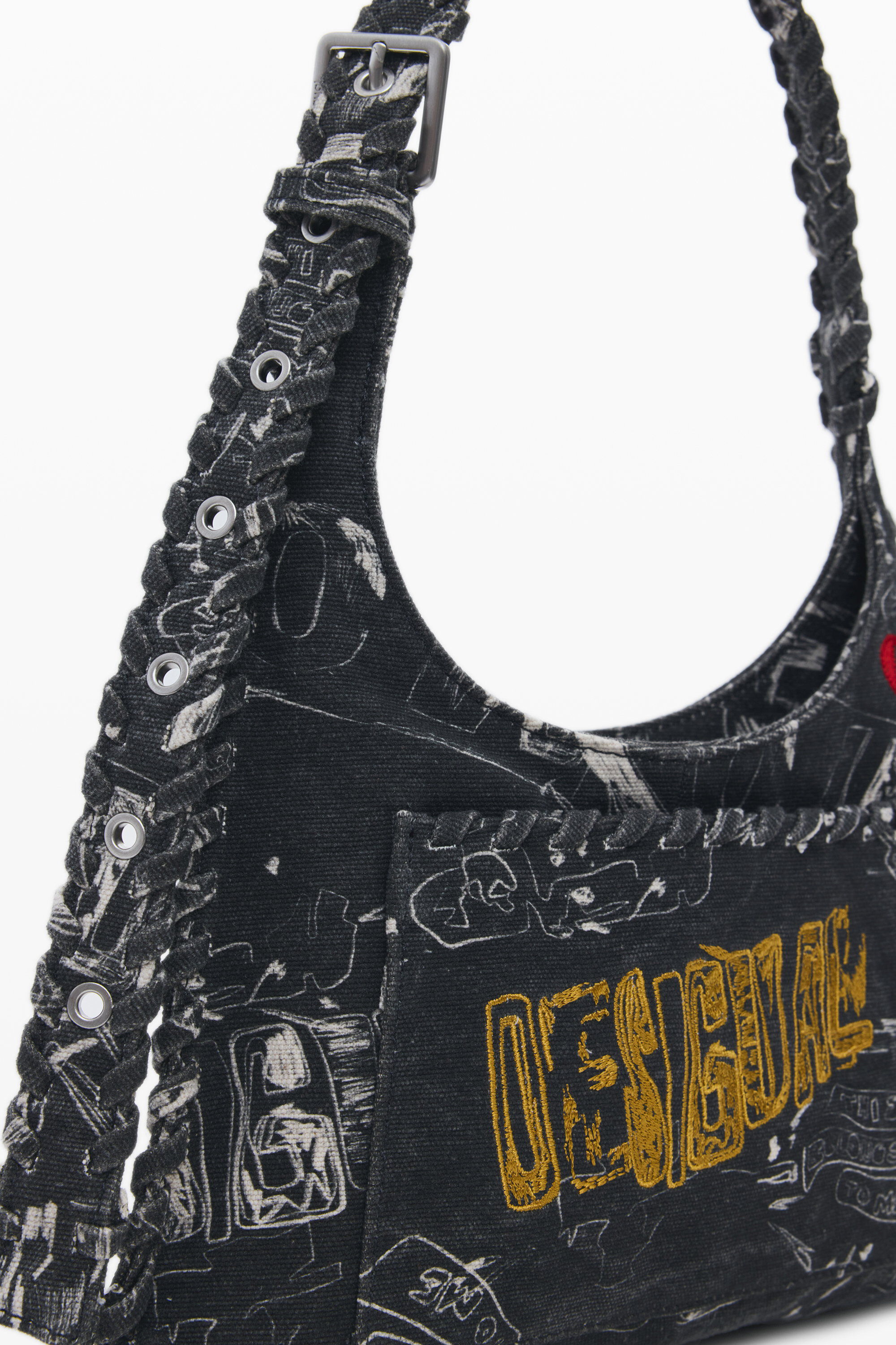 Medium shoulder bag with lettering-style print and adjustable strap with buckle.Color: