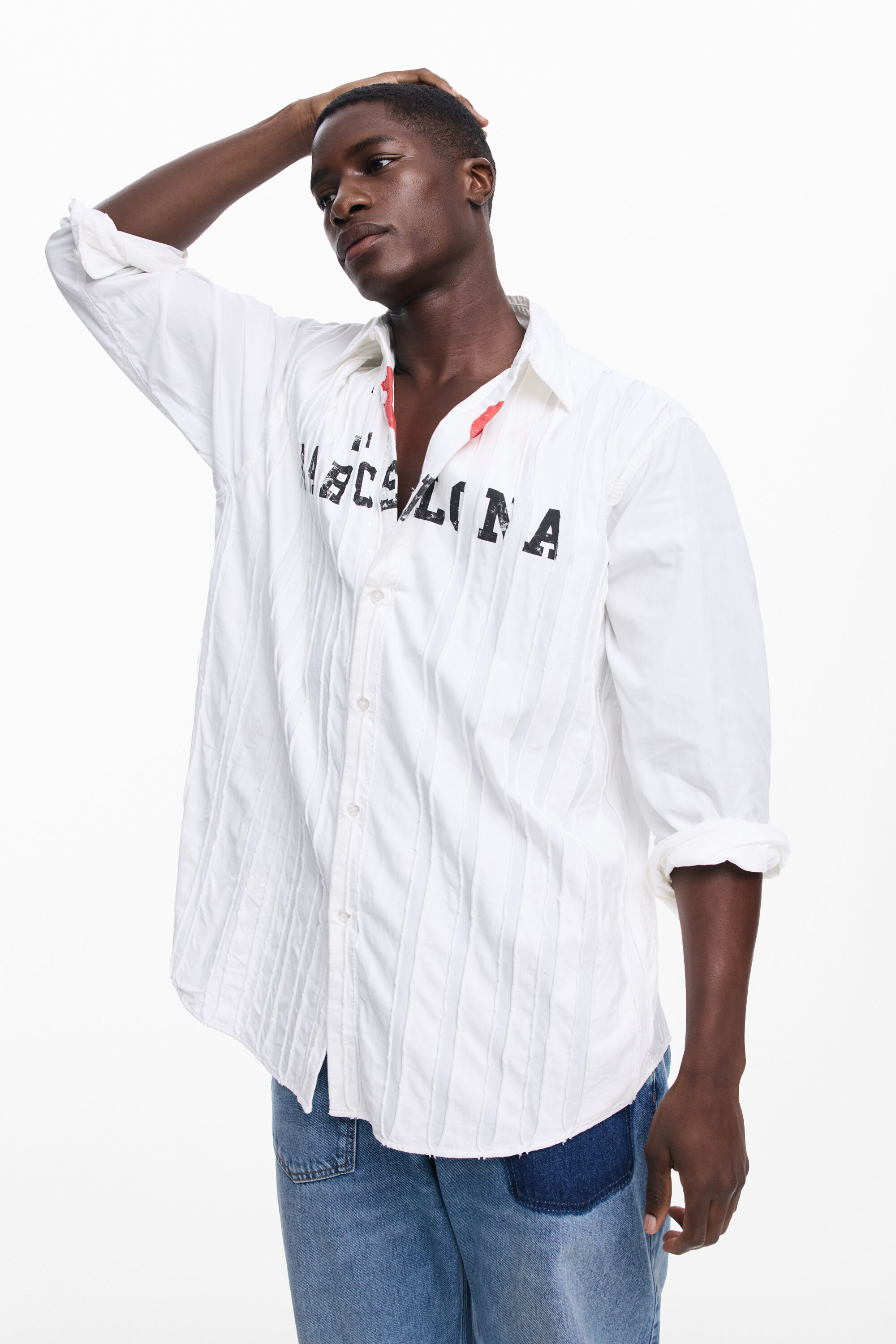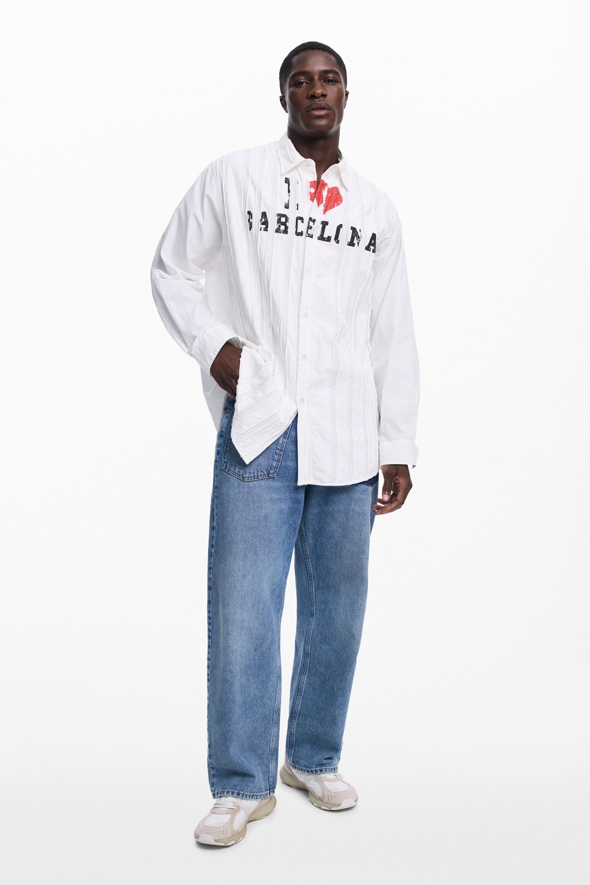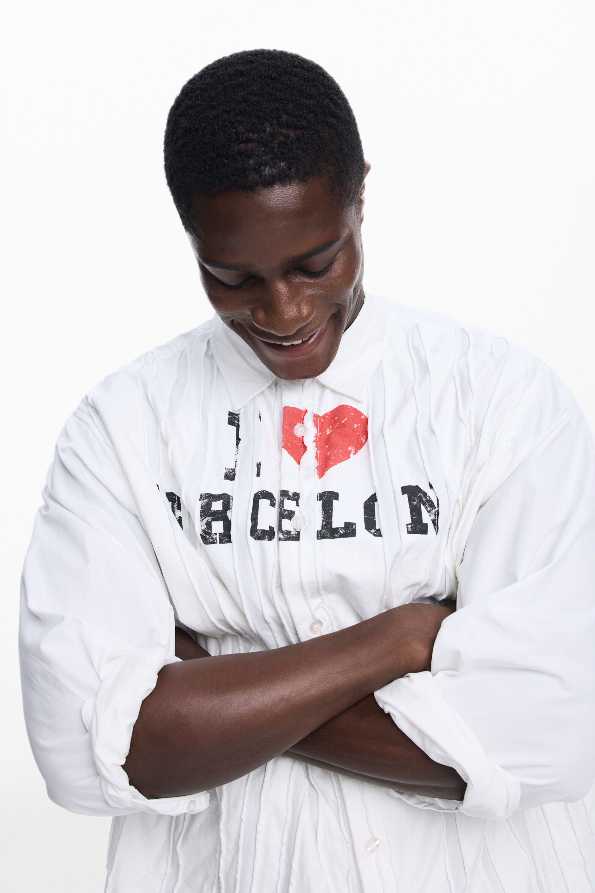 Oversized shirt in poplin, with panel details in t-shirt-style fabric, vertical stripe print, and text I love Barcelona.Fit: LooseCollar: ShirtSleeve: LongClosure: ButtonCombination of fabricsBotterWhen you buy cotton products from Desigual, you are supporting our investment in Better Cotton.