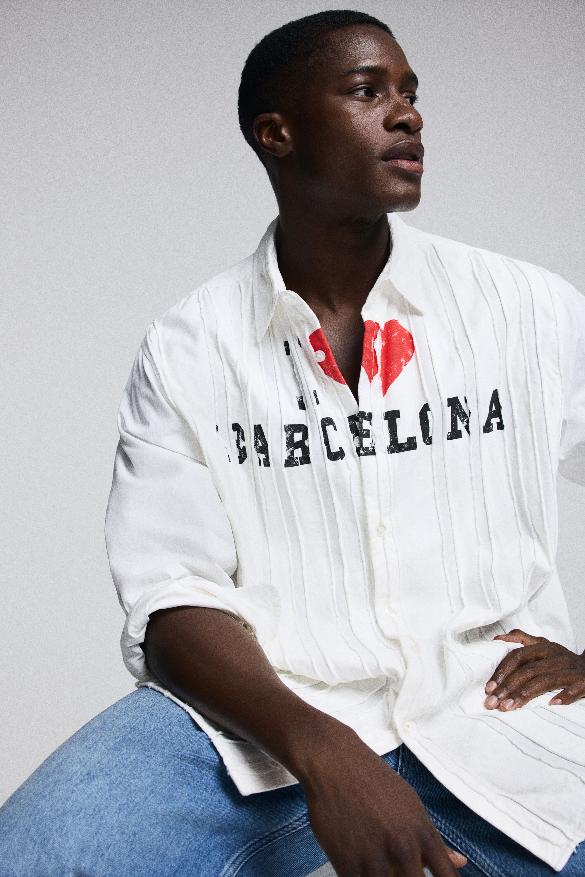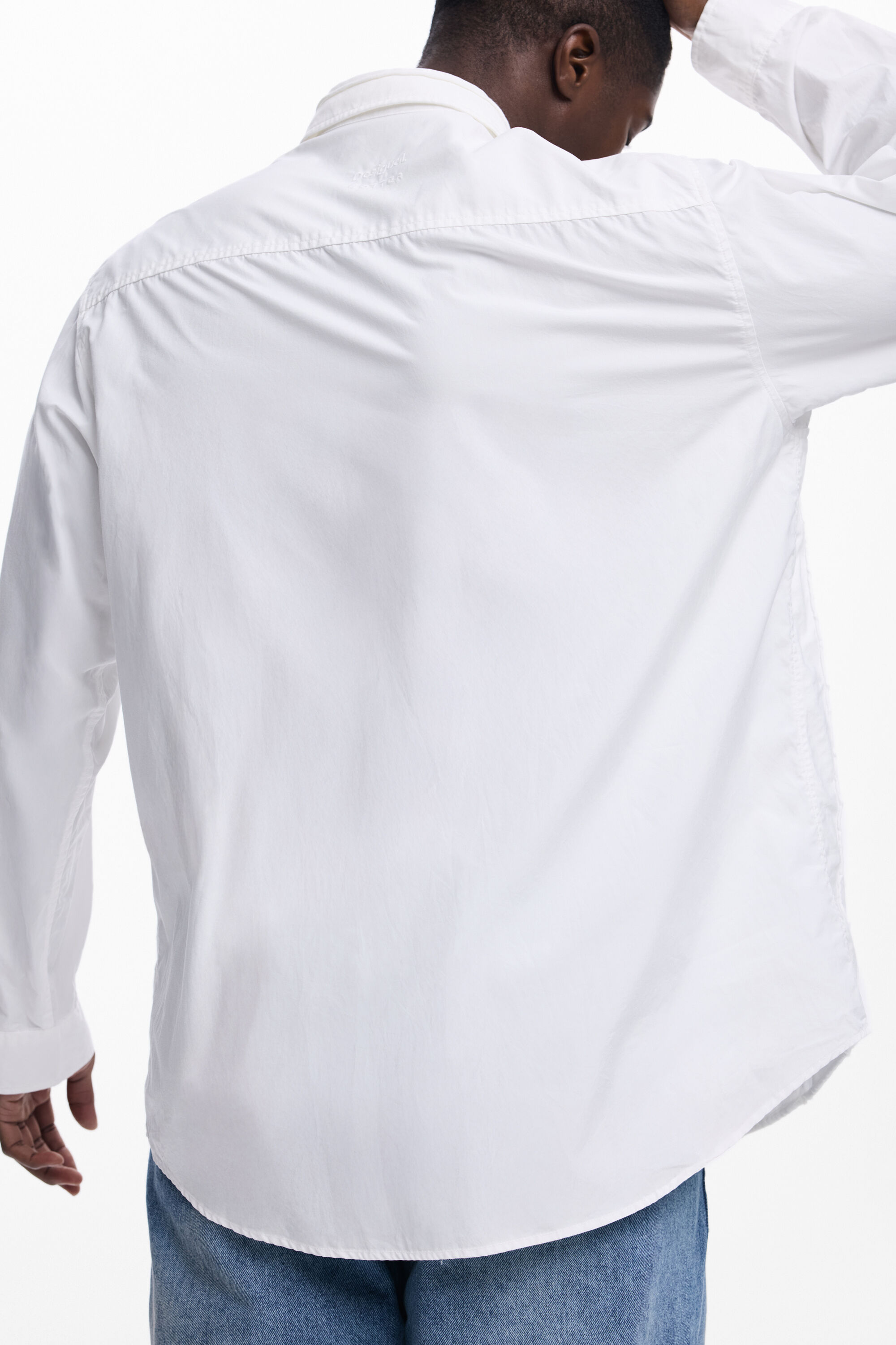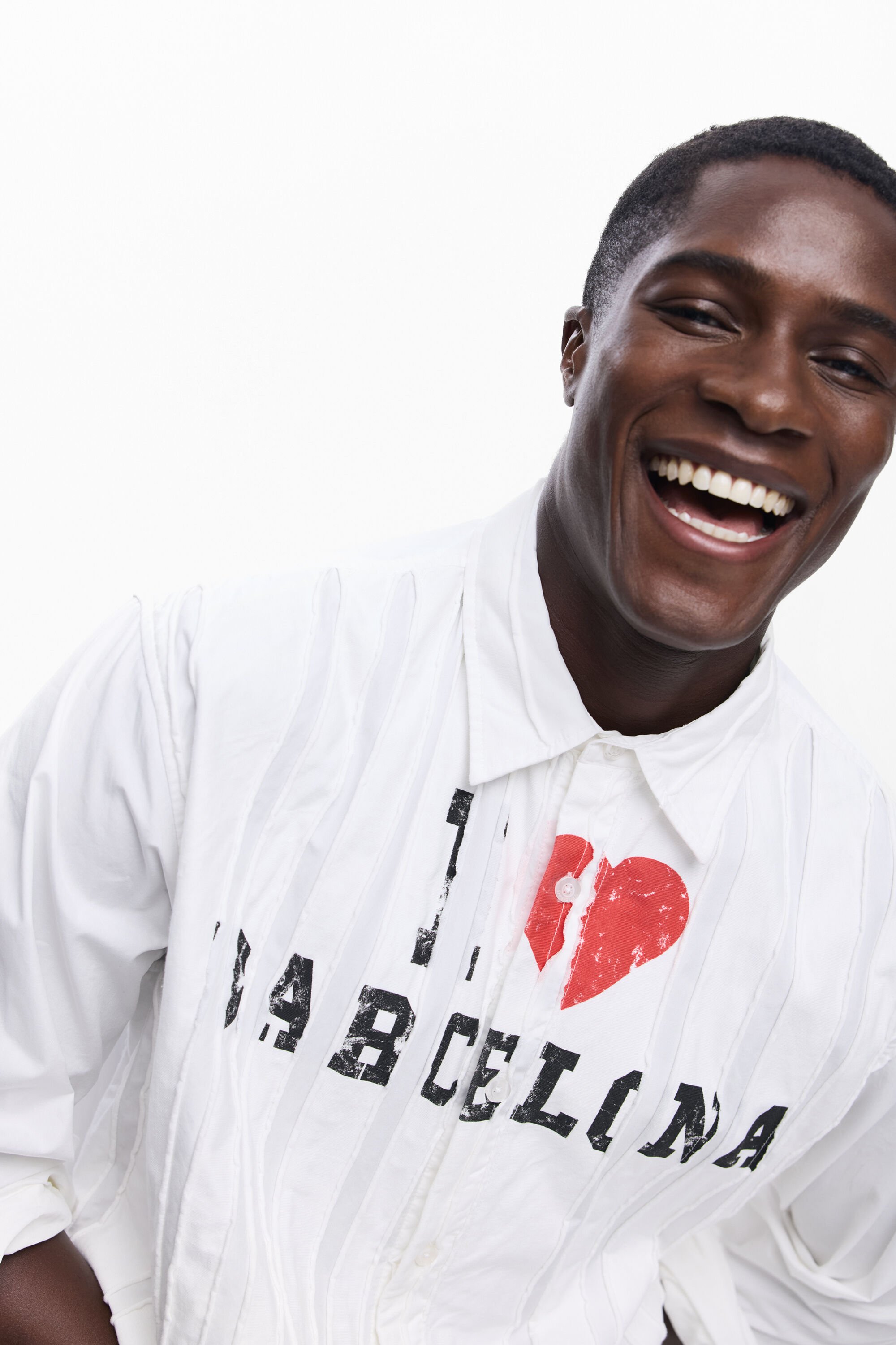 Oversized shirt in poplin, with panel details in t-shirt-style fabric, vertical stripe print, and text I love Barcelona.Fit: LooseCollar: ShirtSleeve: LongClosure: ButtonCombination of fabricsBotterWhen you buy cotton products from Desigual, you are supporting our investment in Better Cotton.