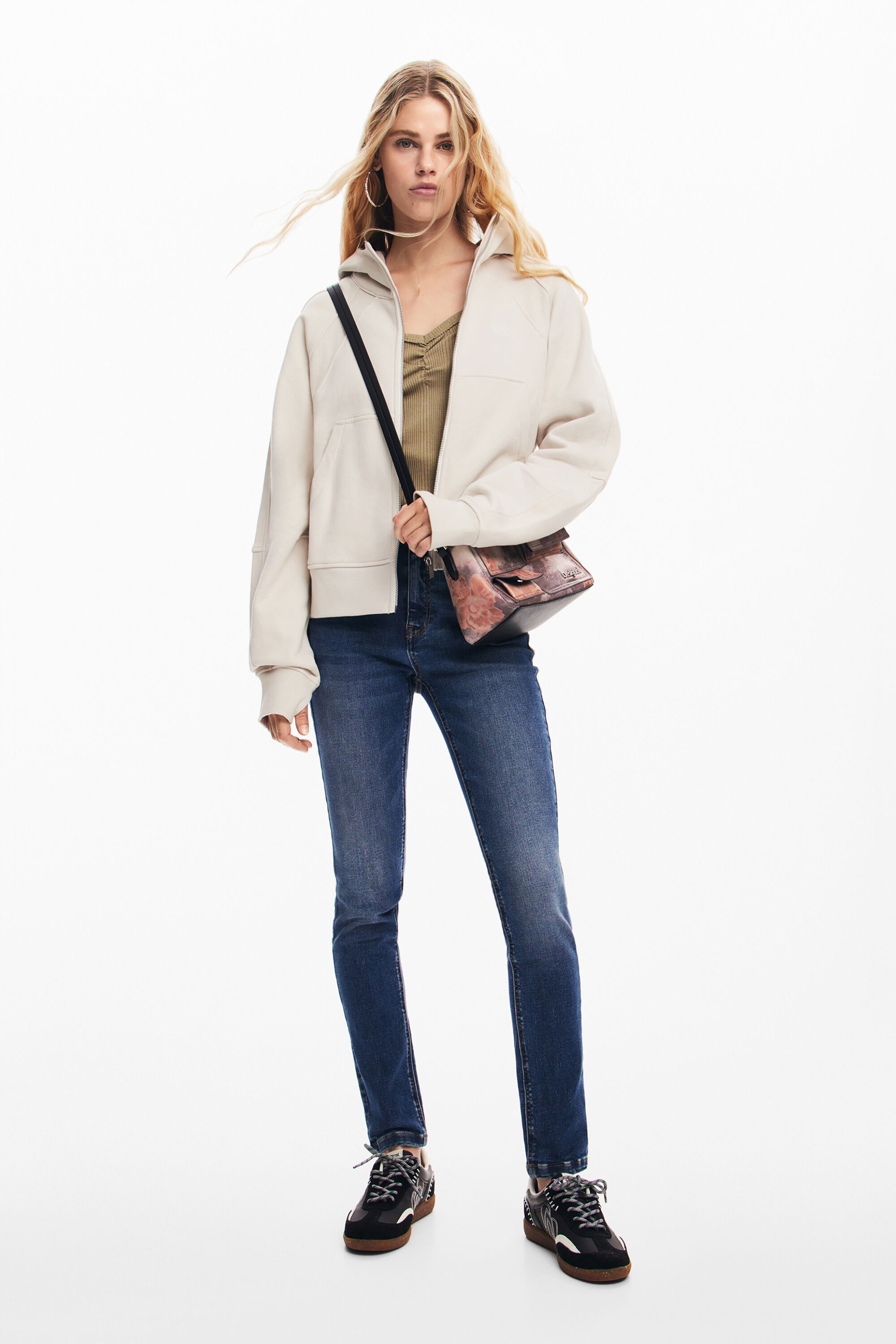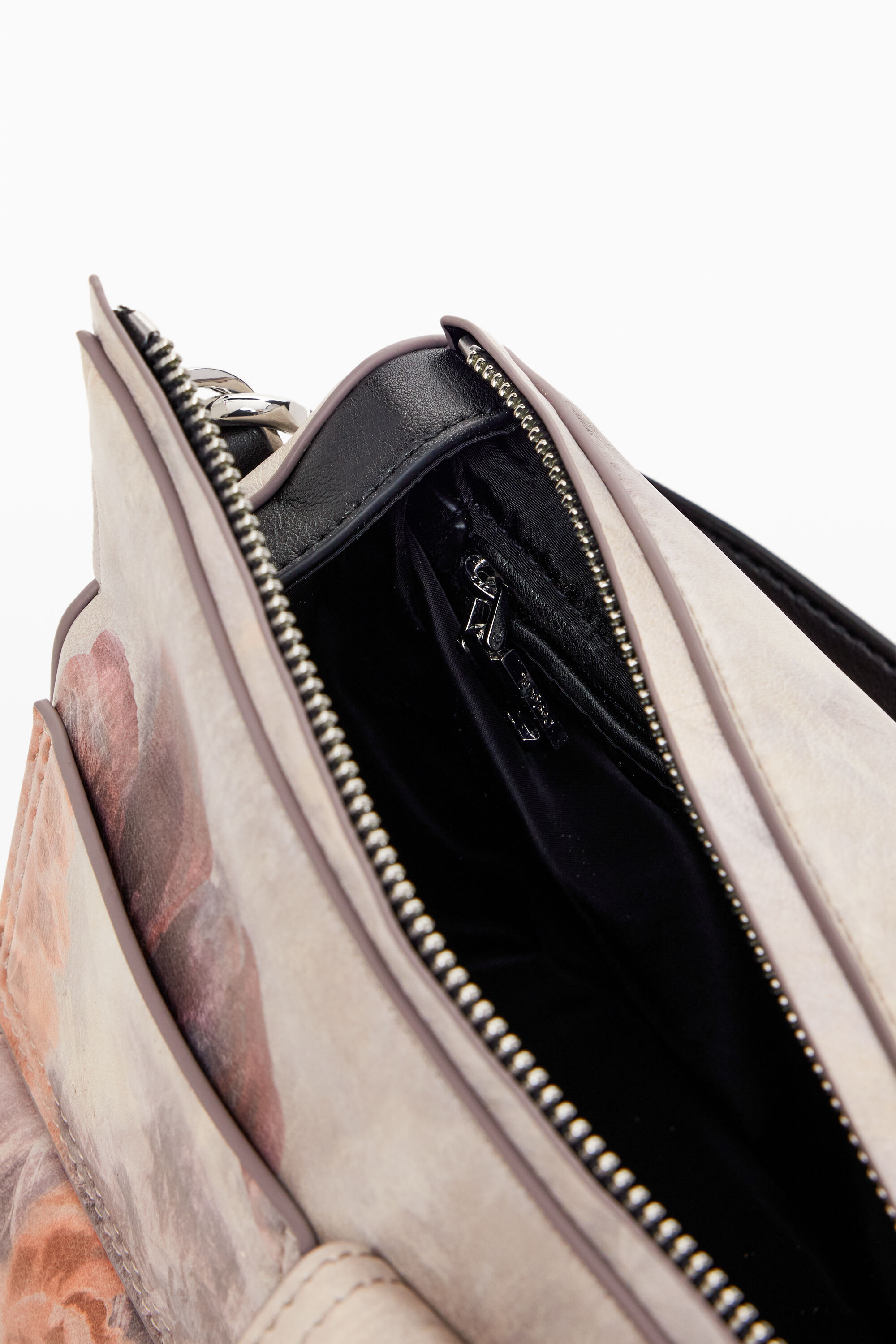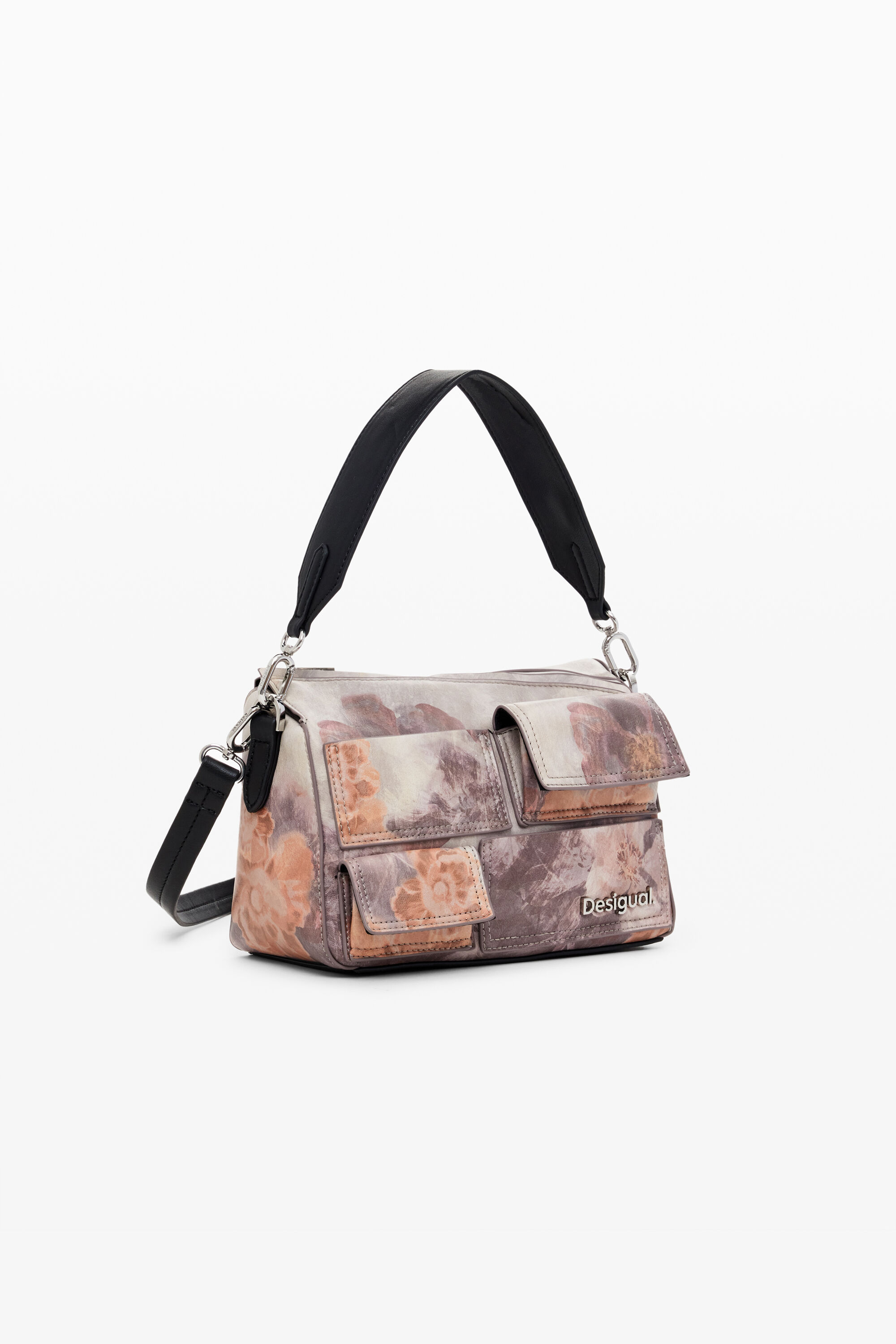 Mini multi-pocket bag with floral printFloral printZip and button closureInterchangeable handles