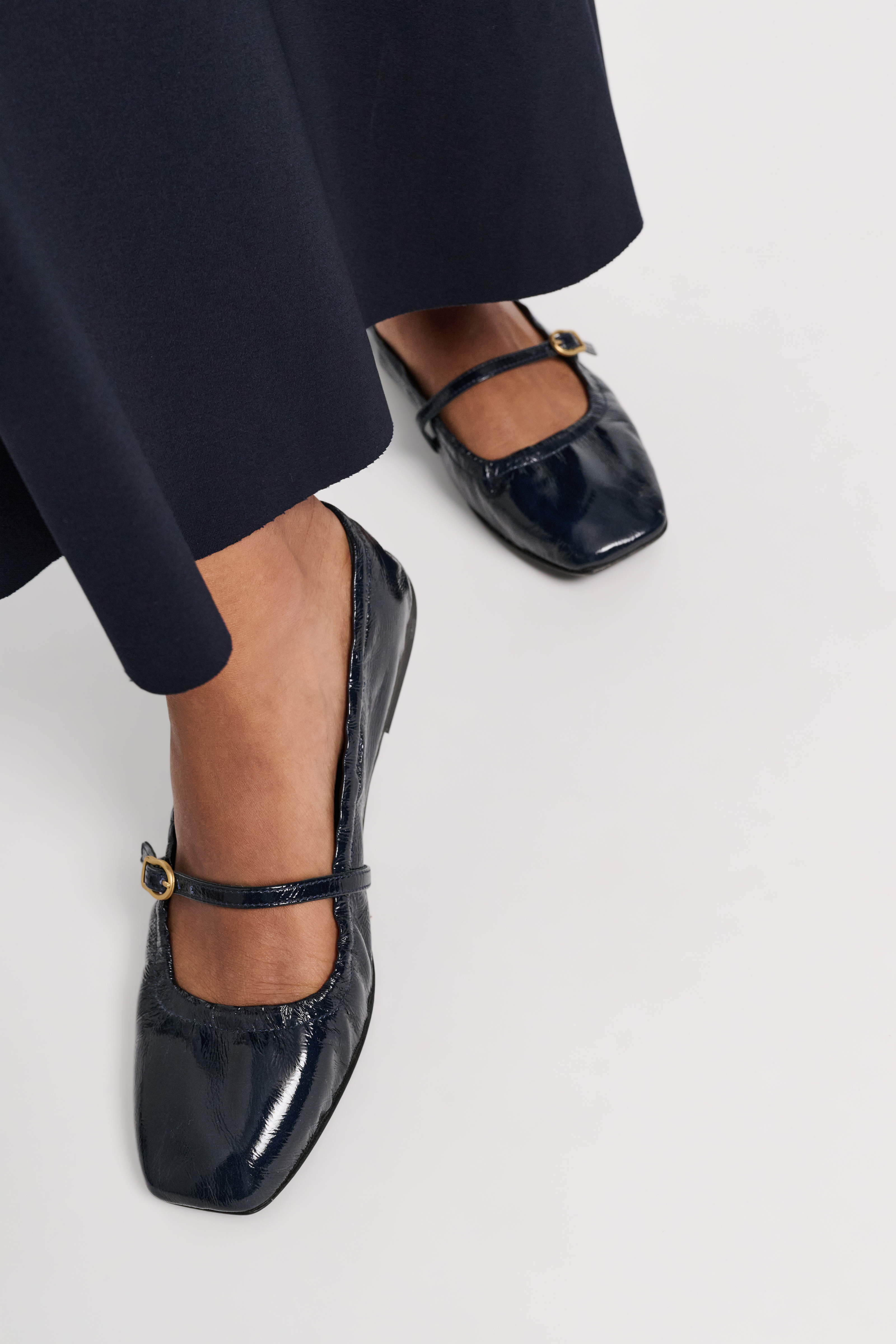 Dorothee Schumacher Square toe shiny leather flats with signature