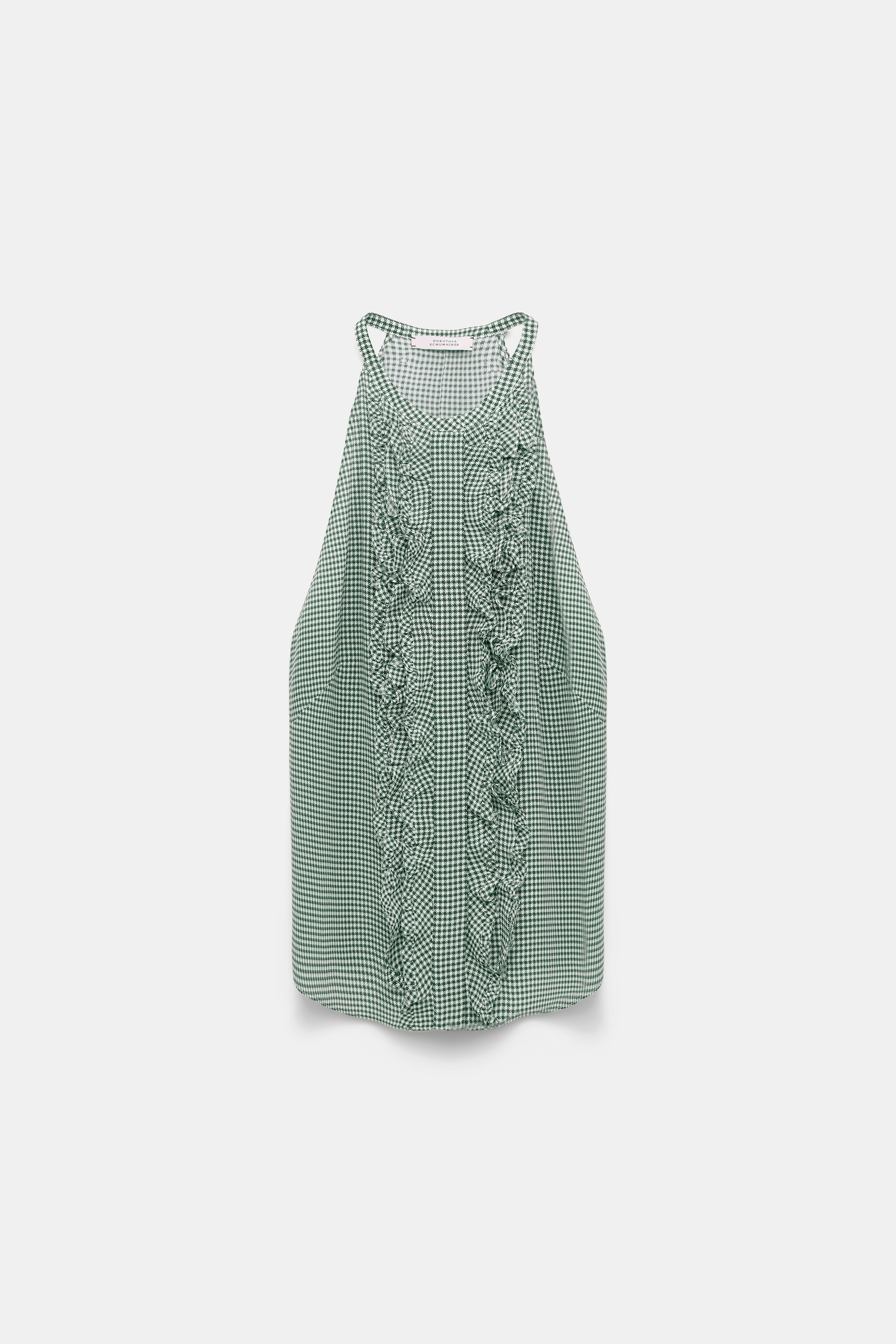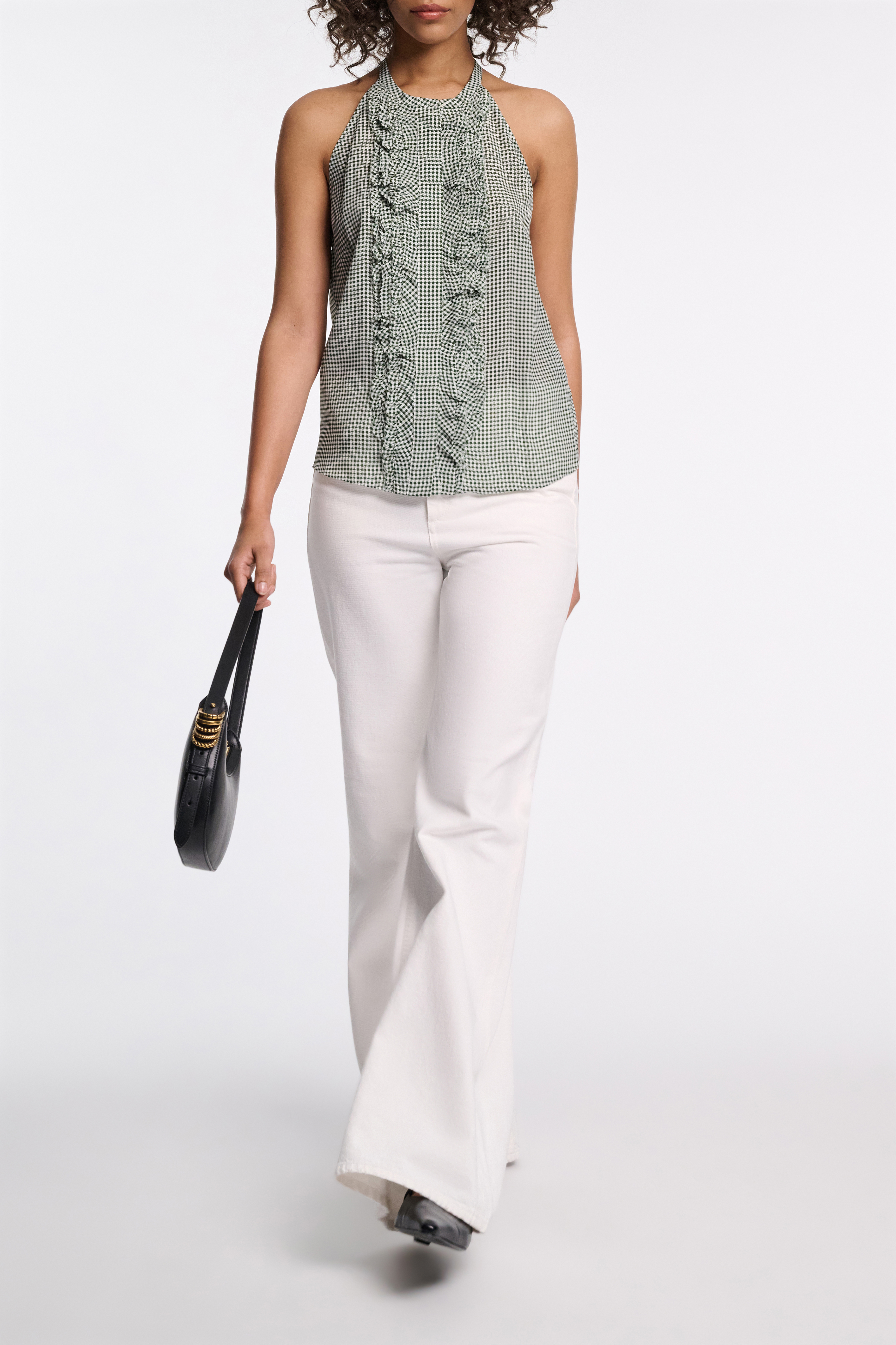 The tank top is crafted in gingham print silk-viscose and has ruffle trim on the front.