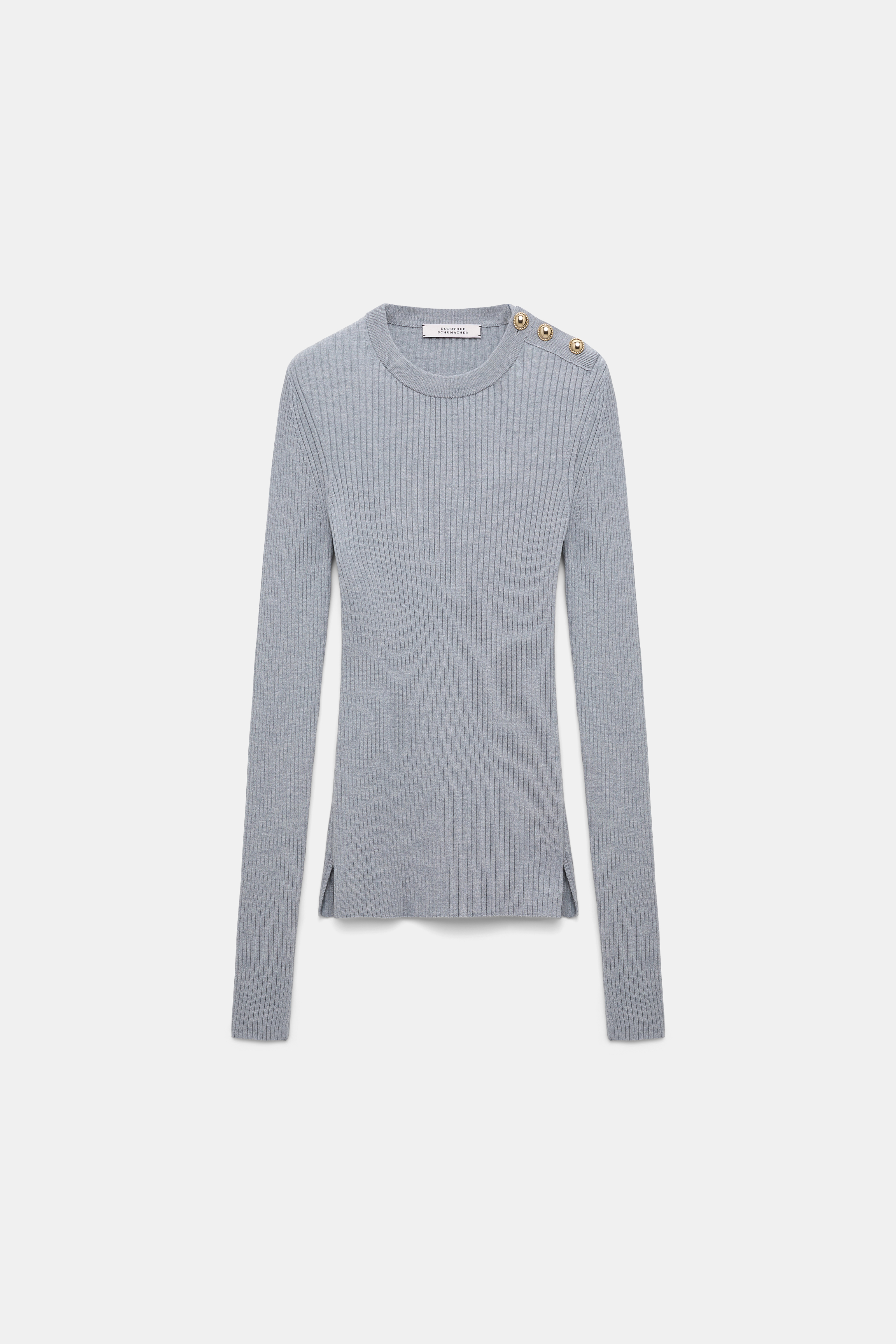 The round neck pullover is made from a stretchy ribbed wool-silk blend and has gold-tone buttons on one shoulder.