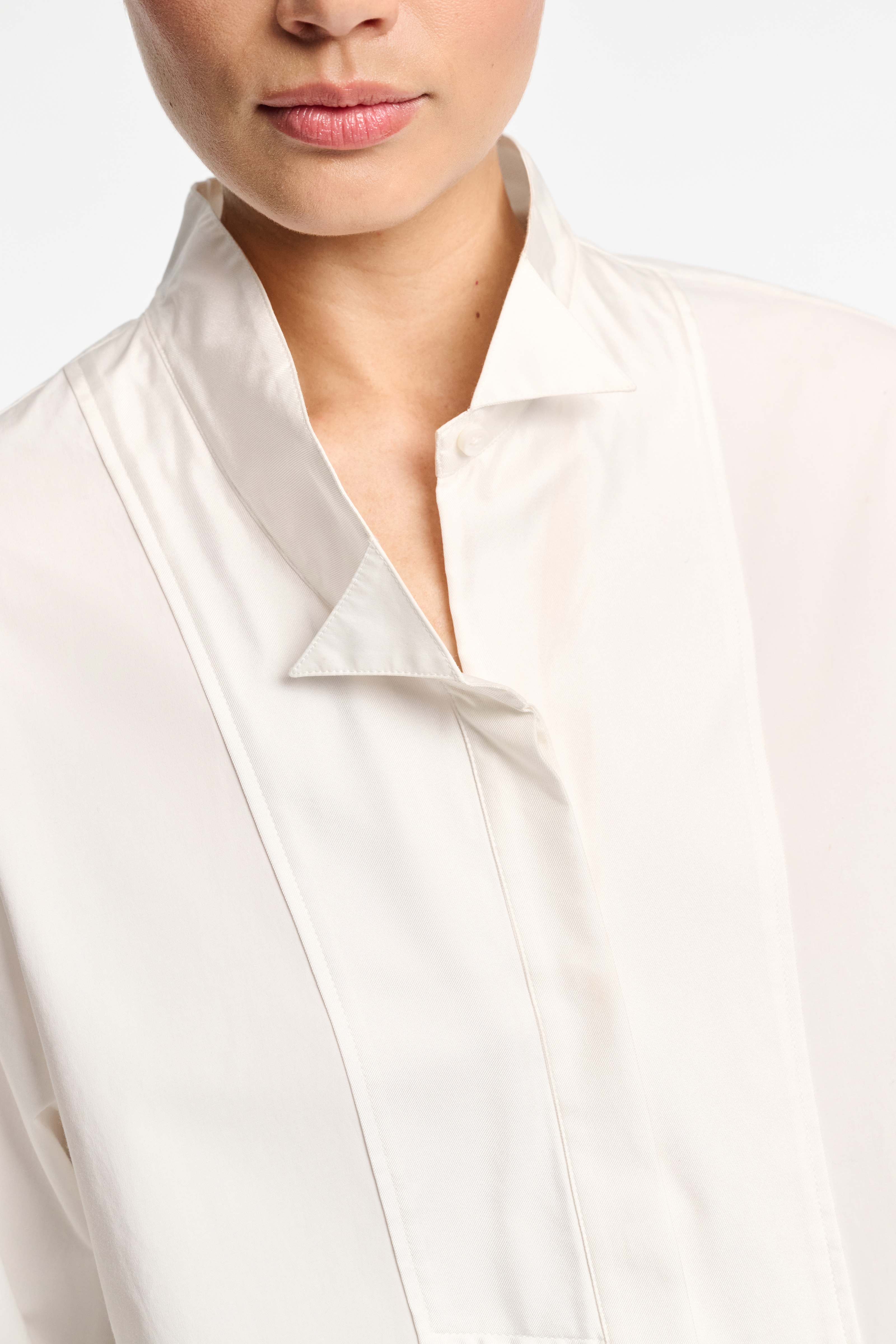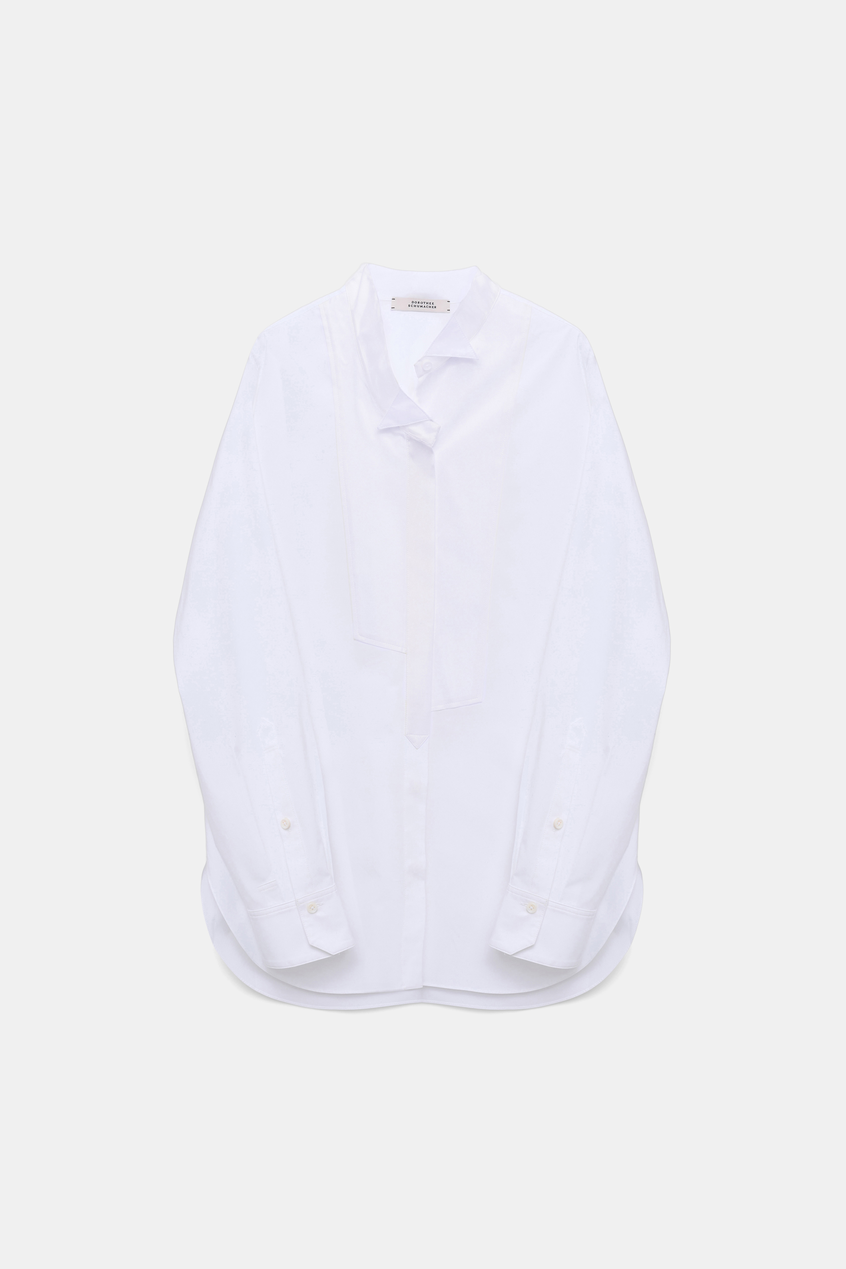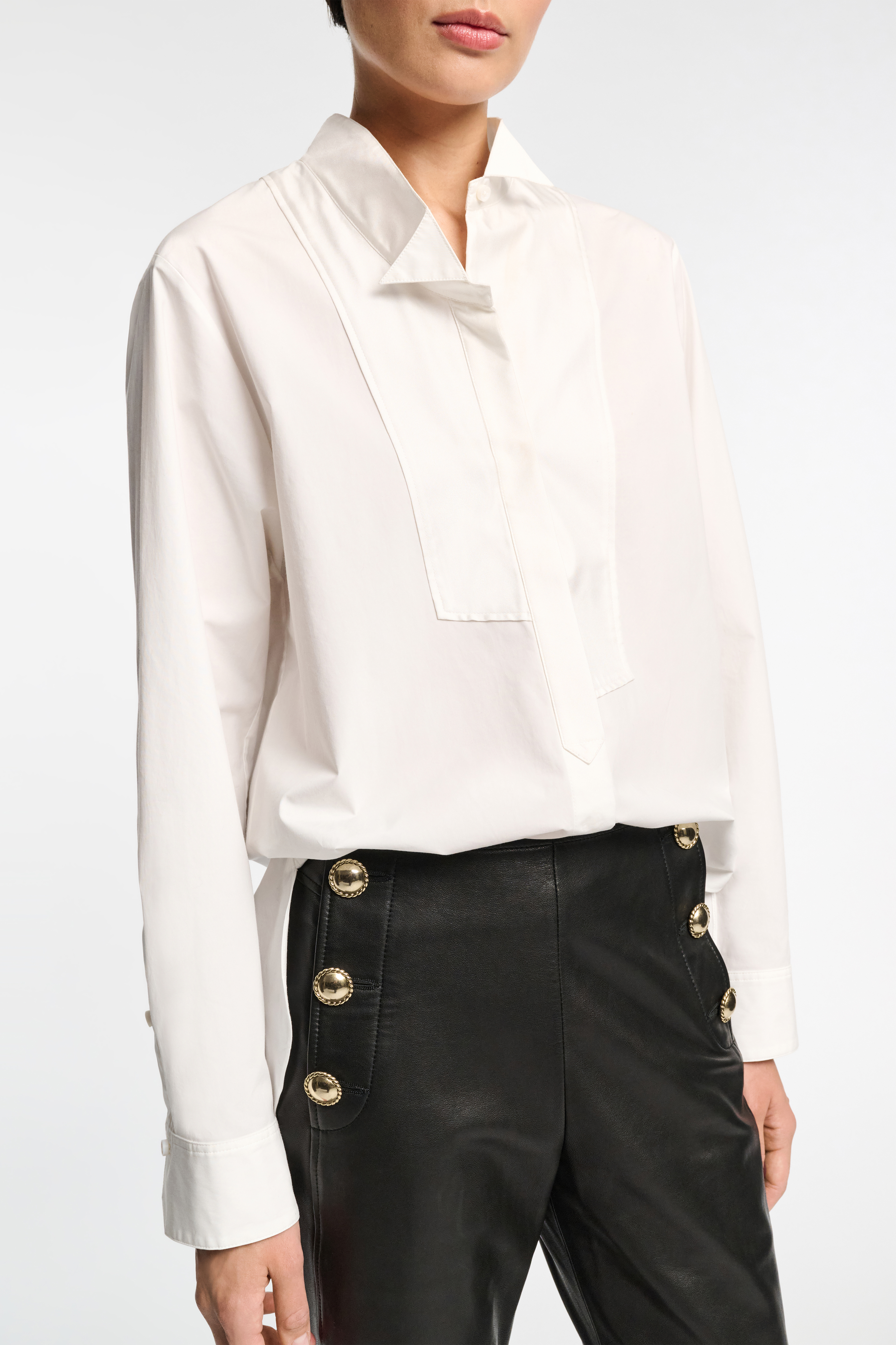 The cotton-poplin shirt has an asymmetrical silk twill collar and plastron.