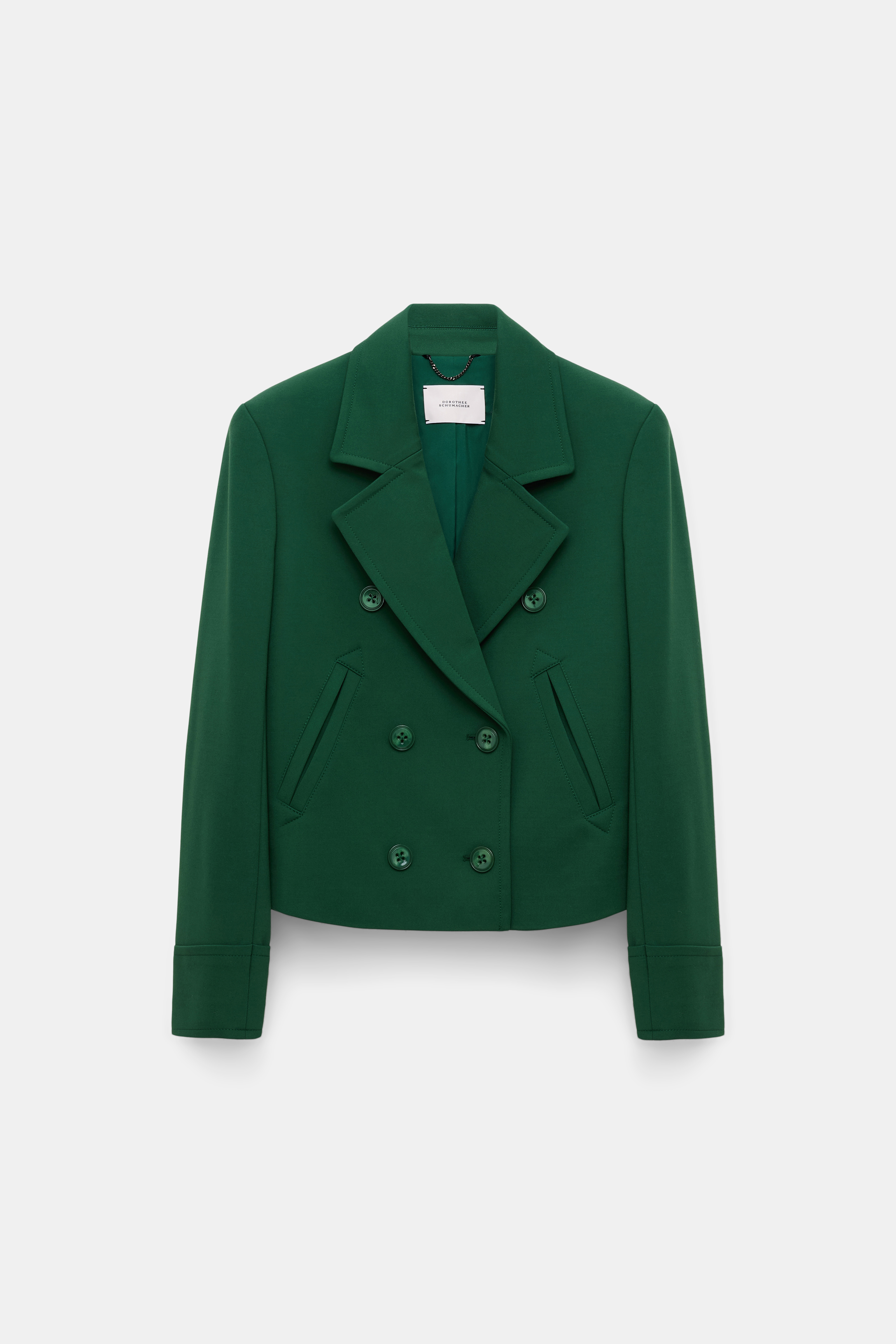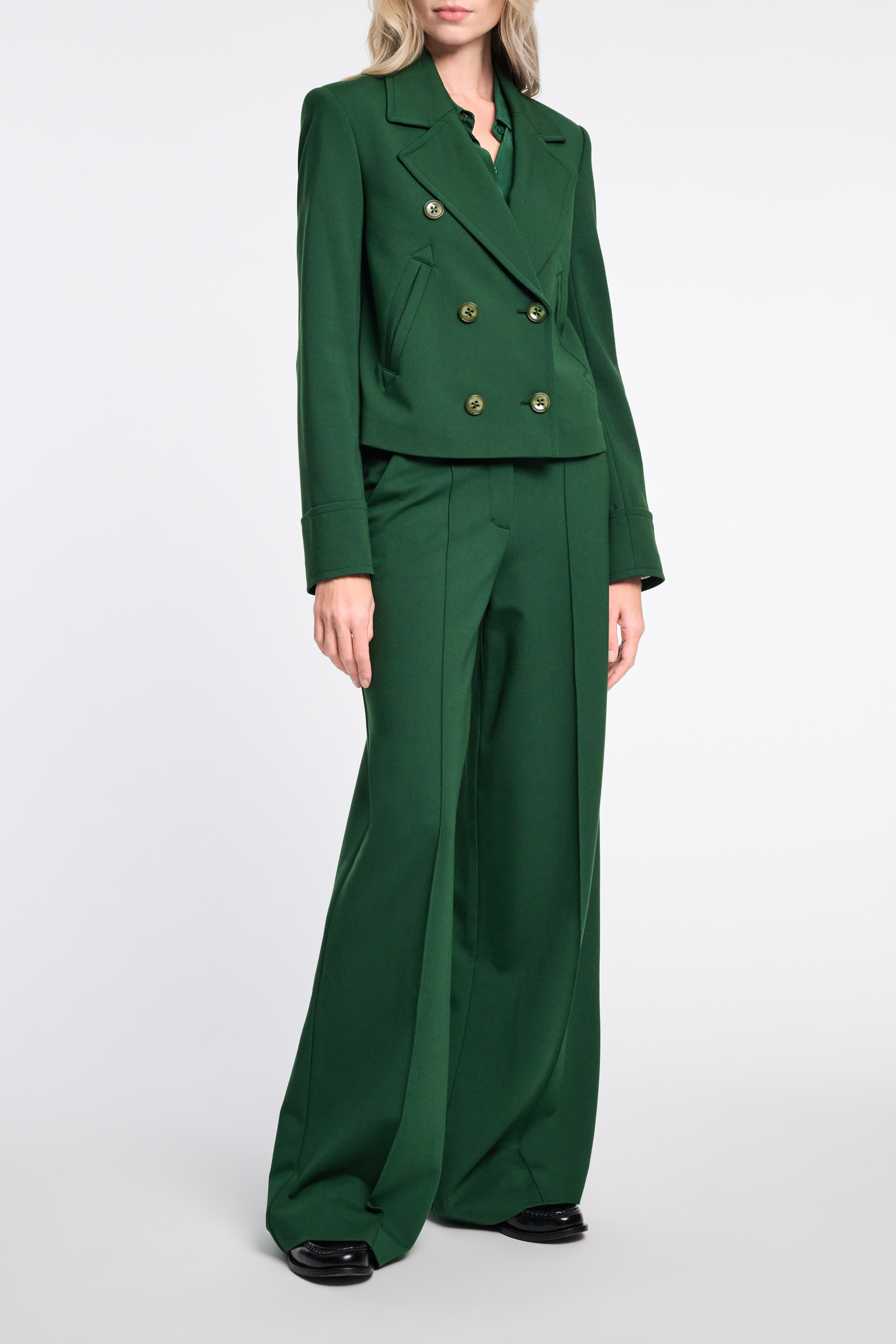 Crafted in our forever-favorite Punto Milano, the cropped, boxy blazer has a double-breasted button front and notched lapel.