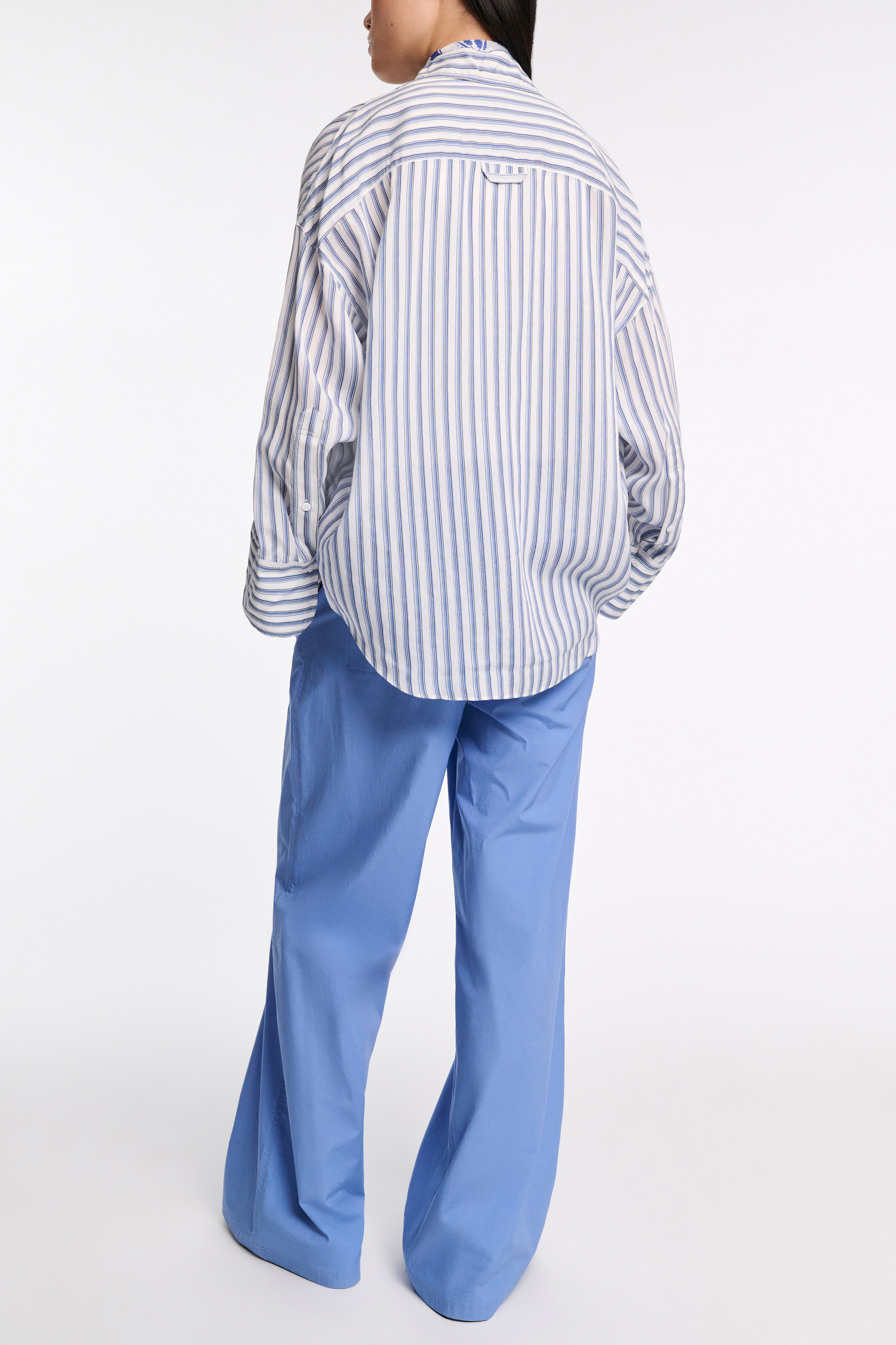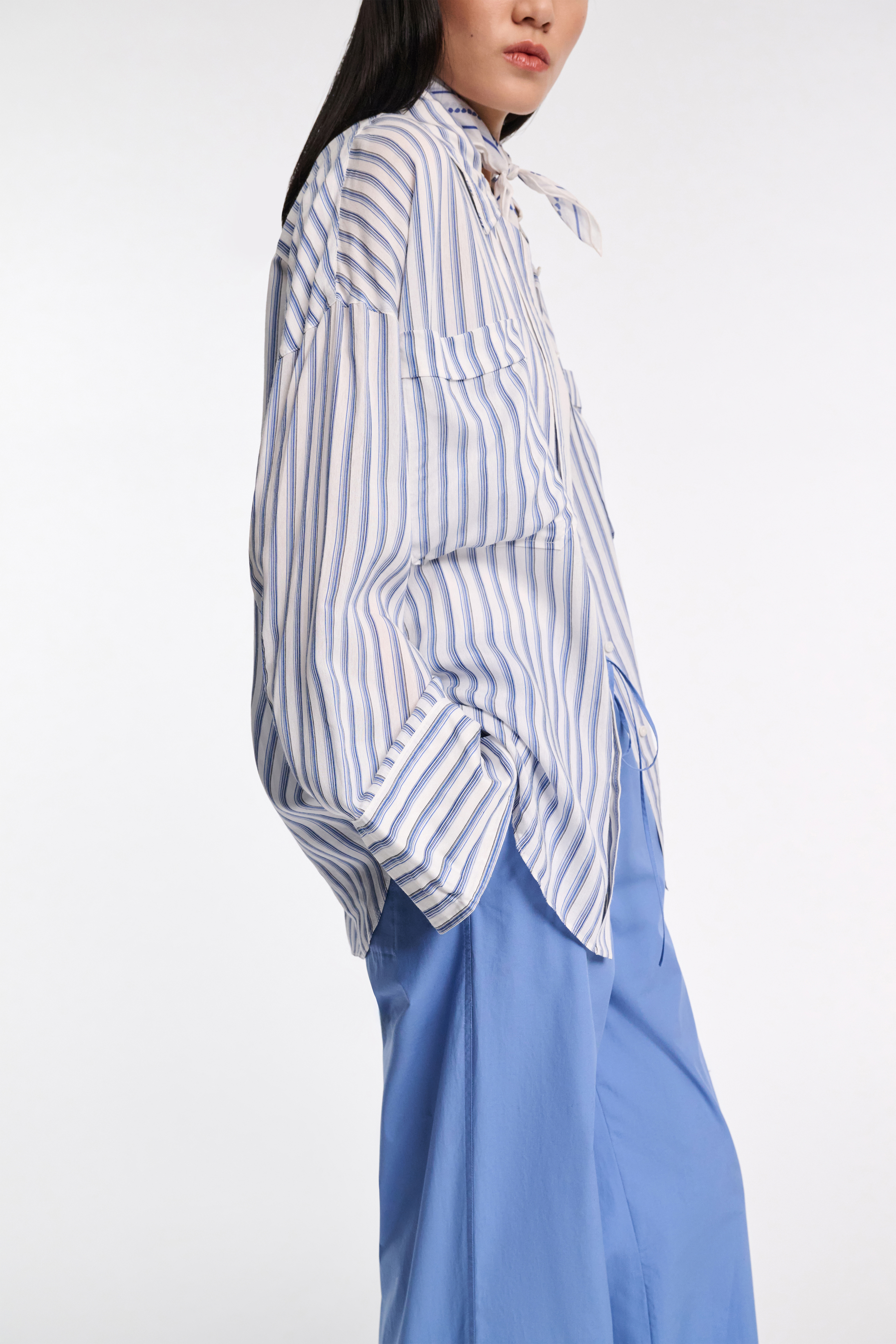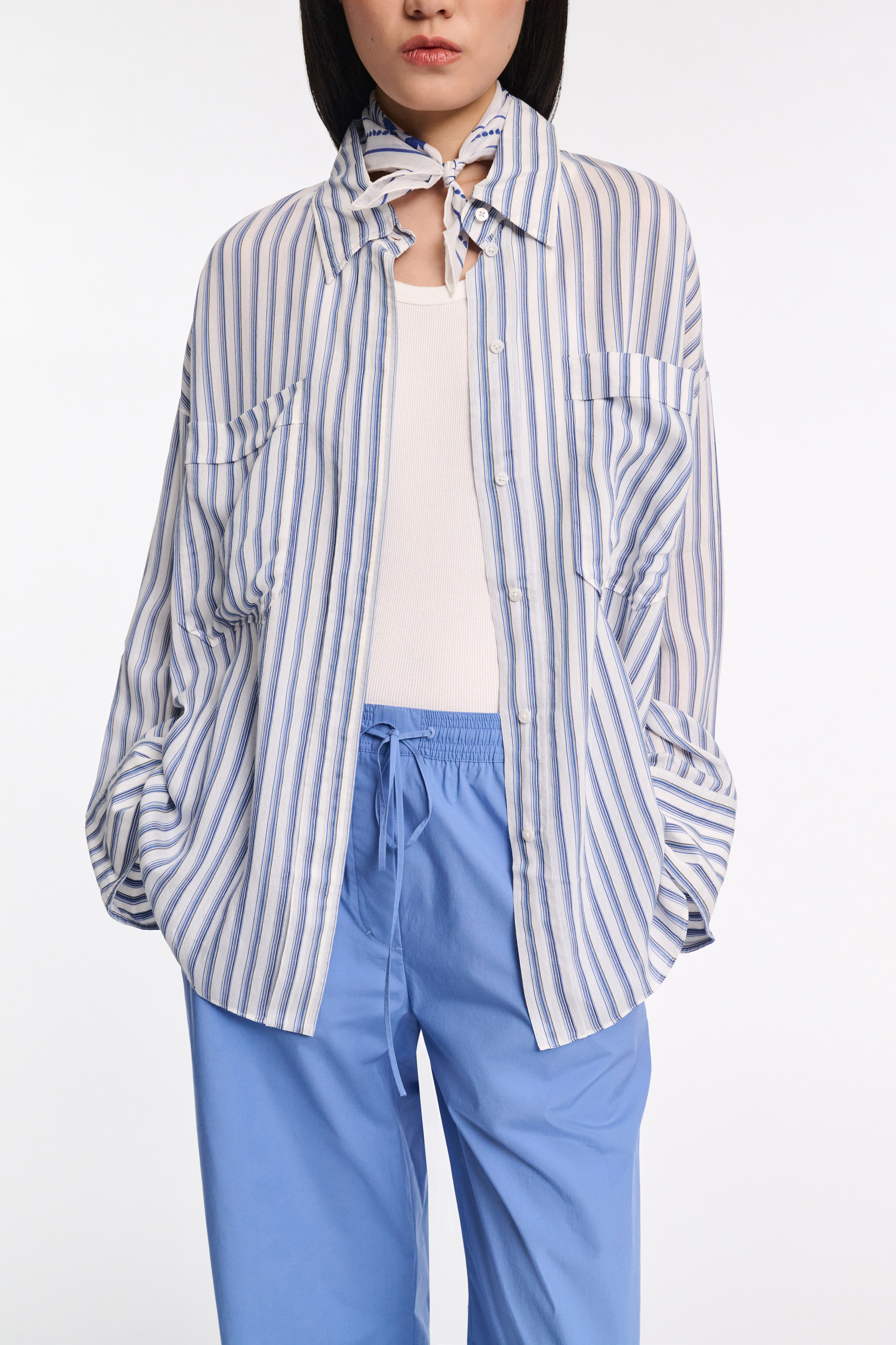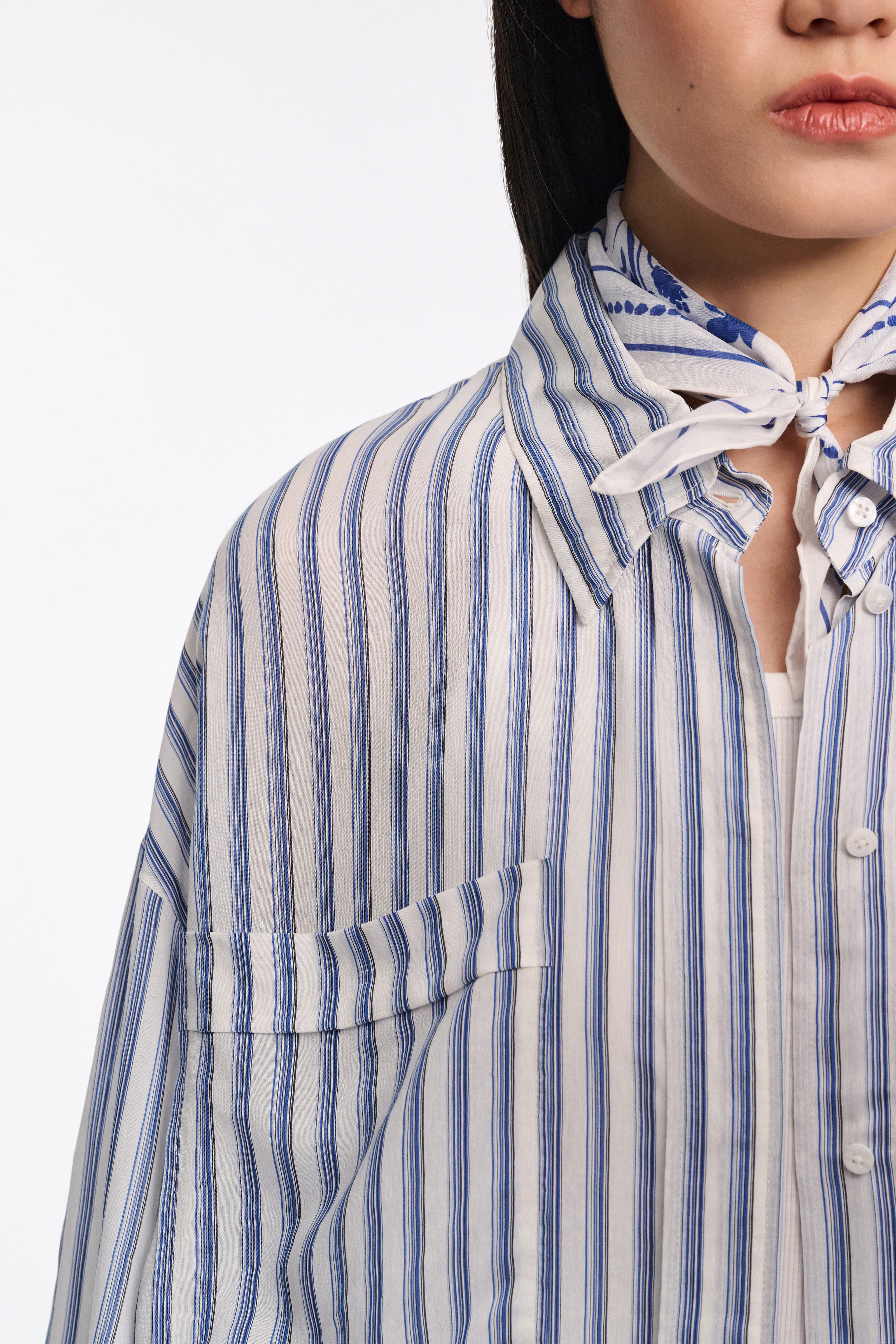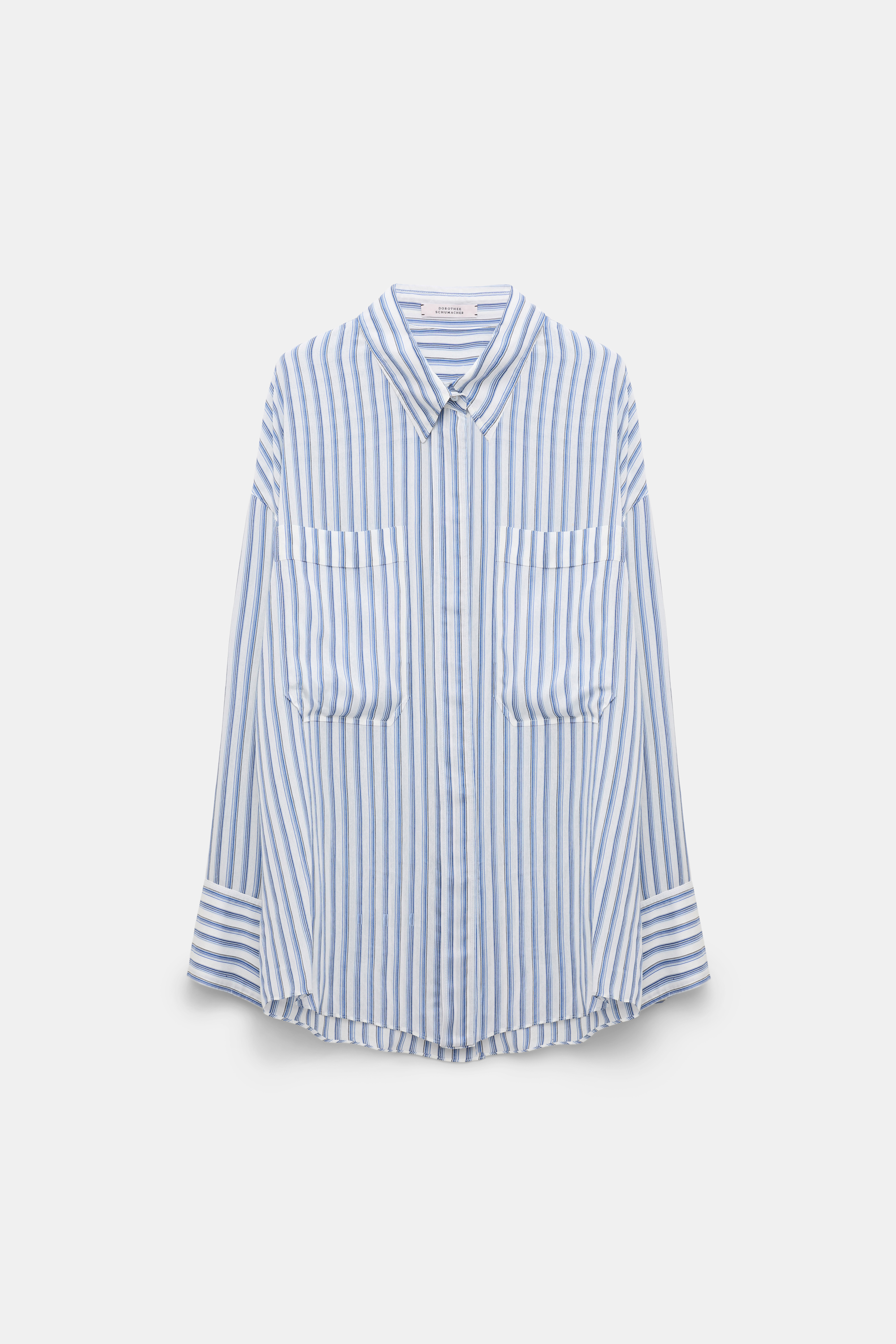 The shirt is made from silk-viscose and has an oversized silhouette.