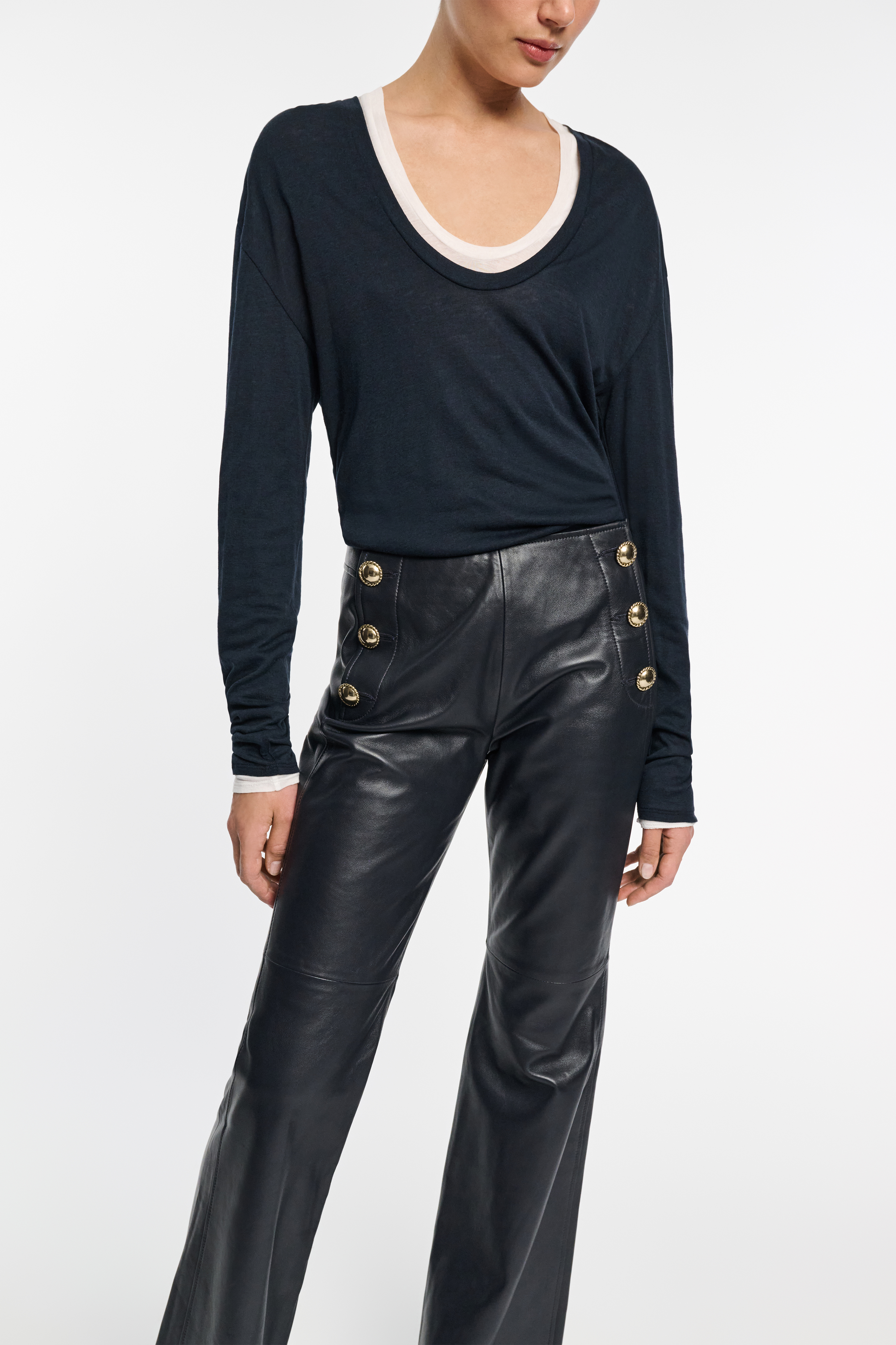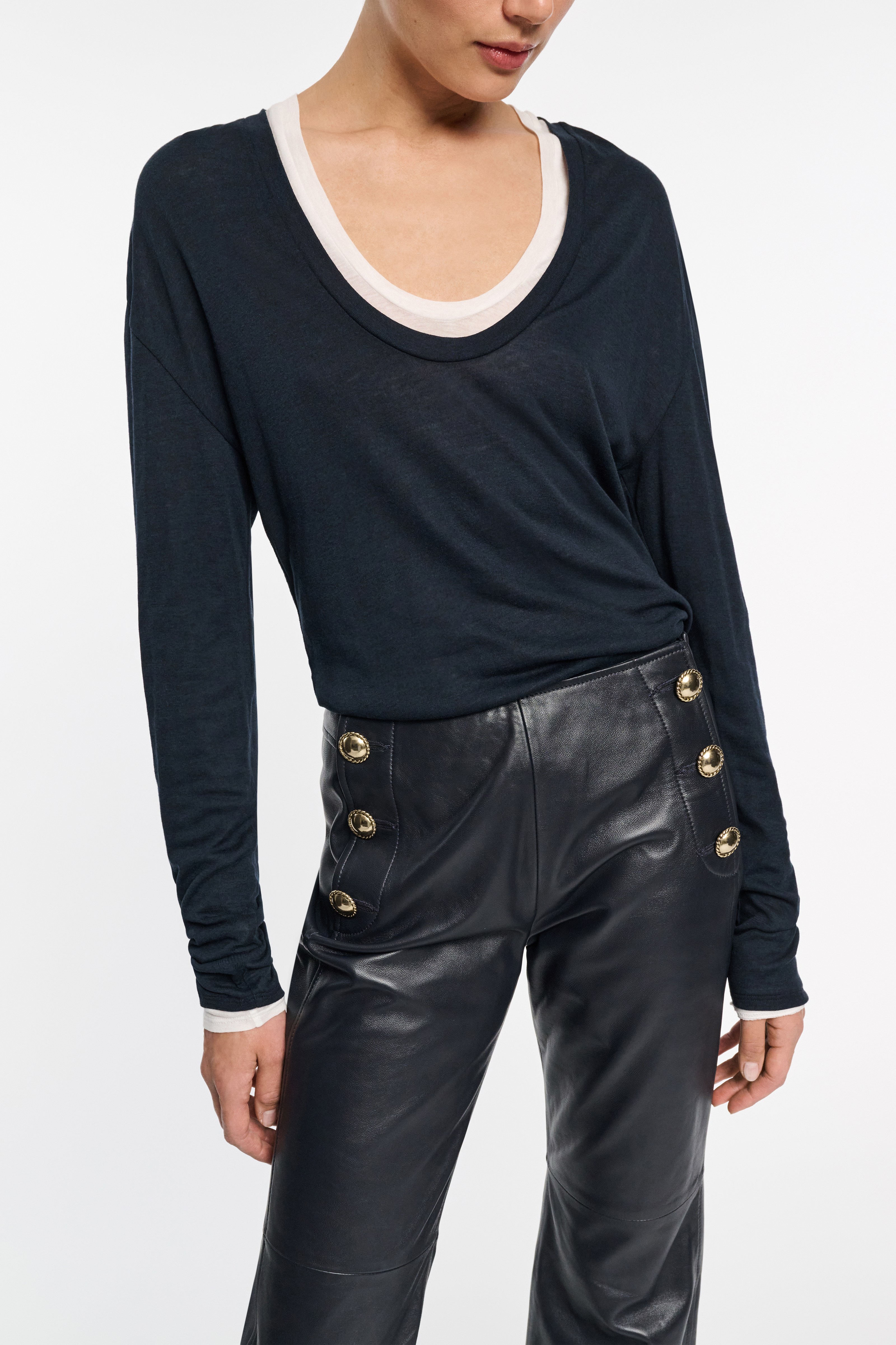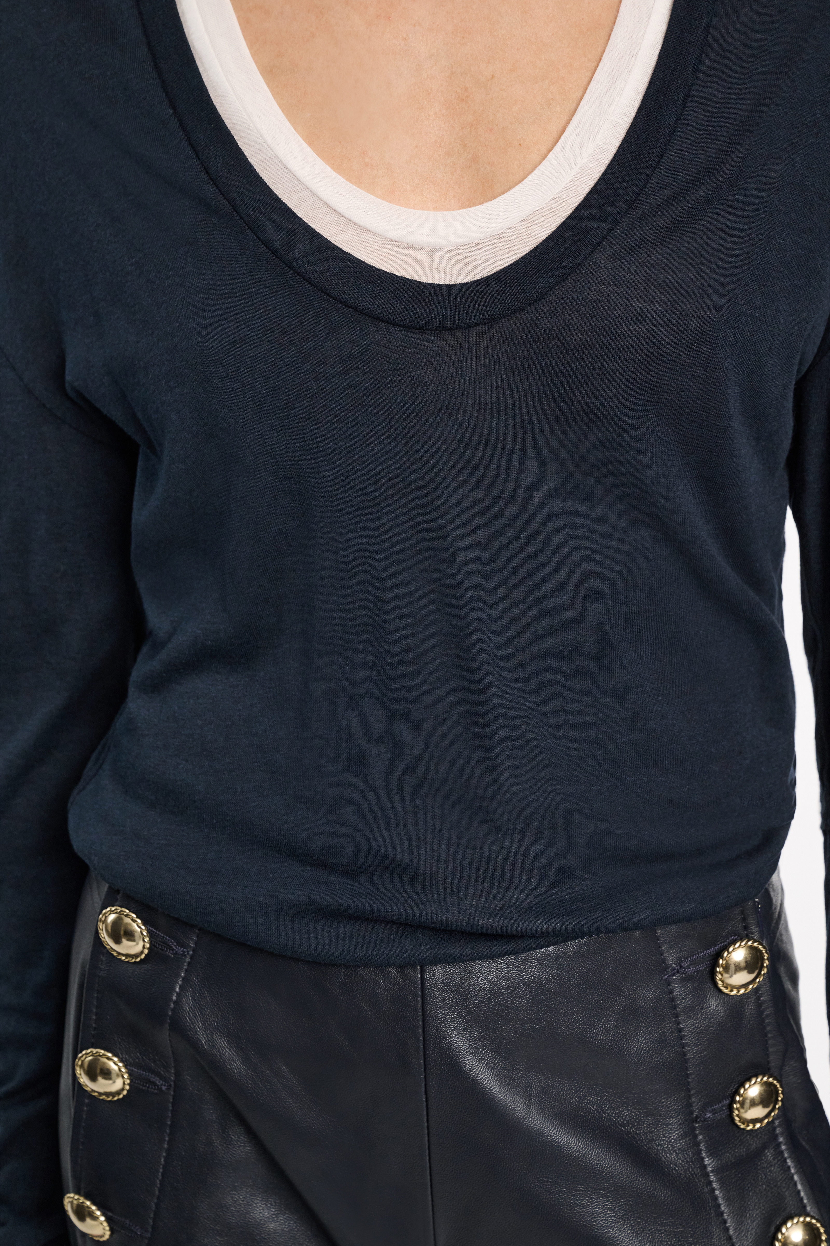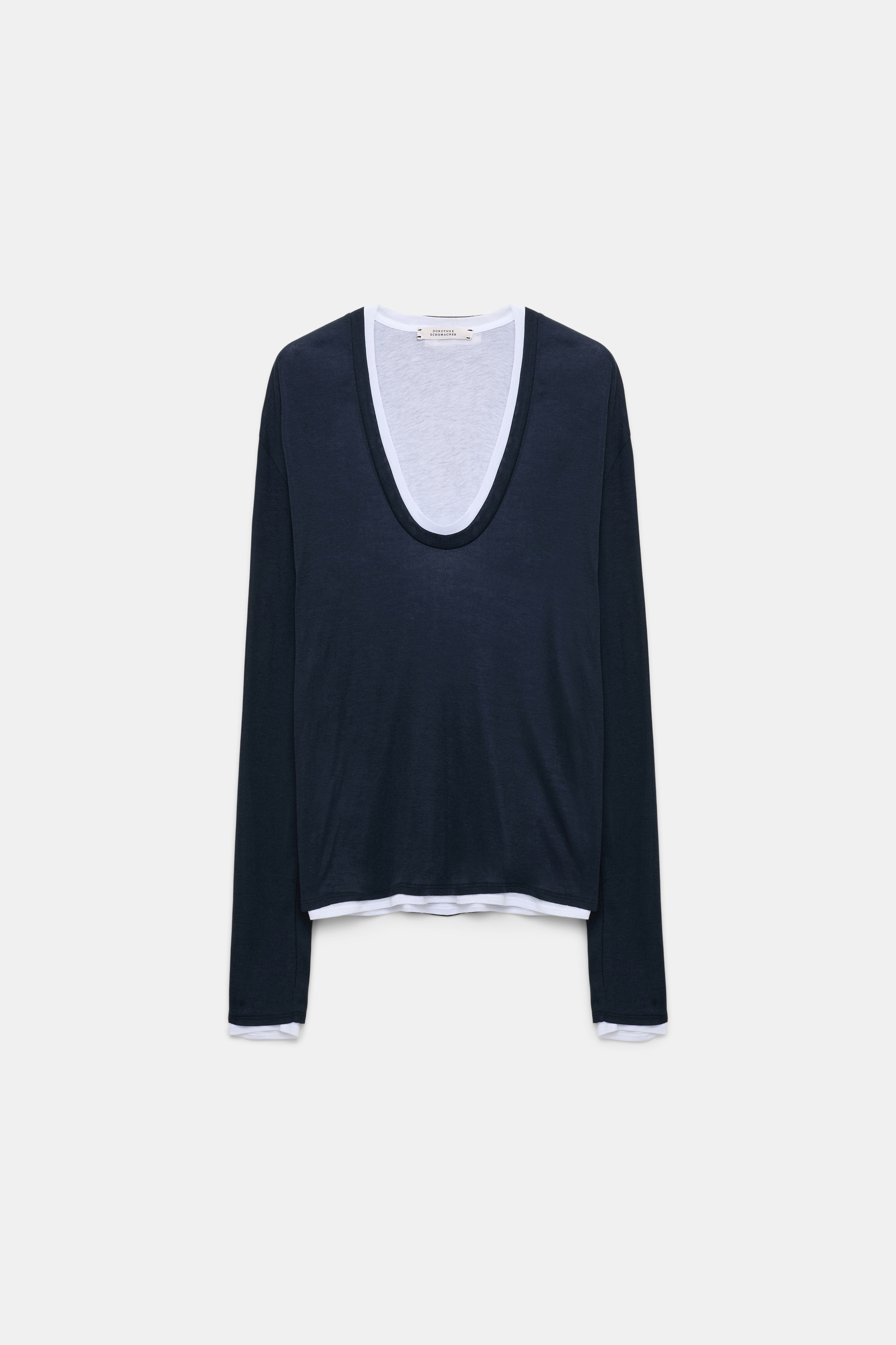 The double layer scoop neck top is made from a fine lyocell-cotton mx.