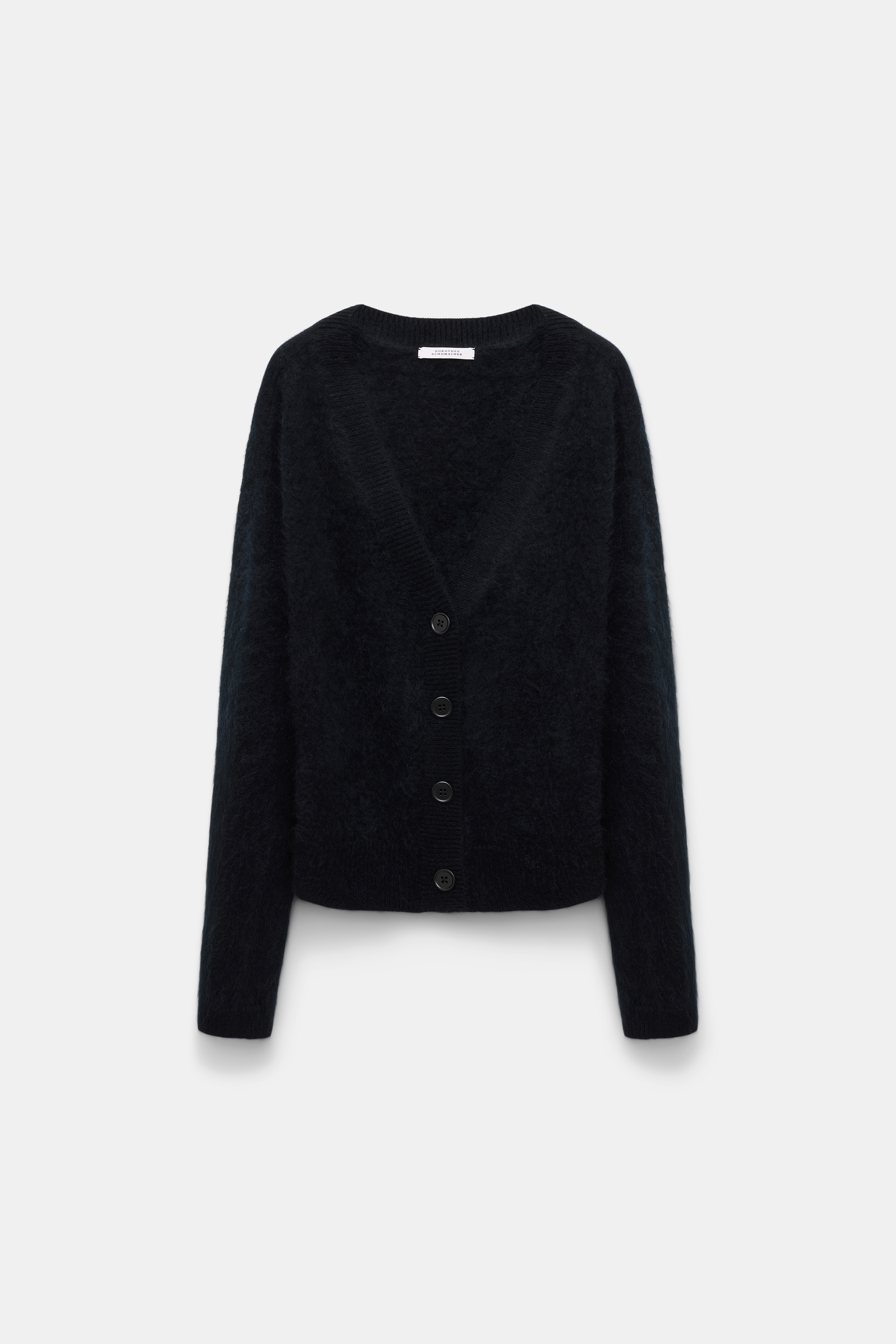 Finished with our special new fluffy knit wash, the V-neck cardigan is extra soft and has a tactile feel.