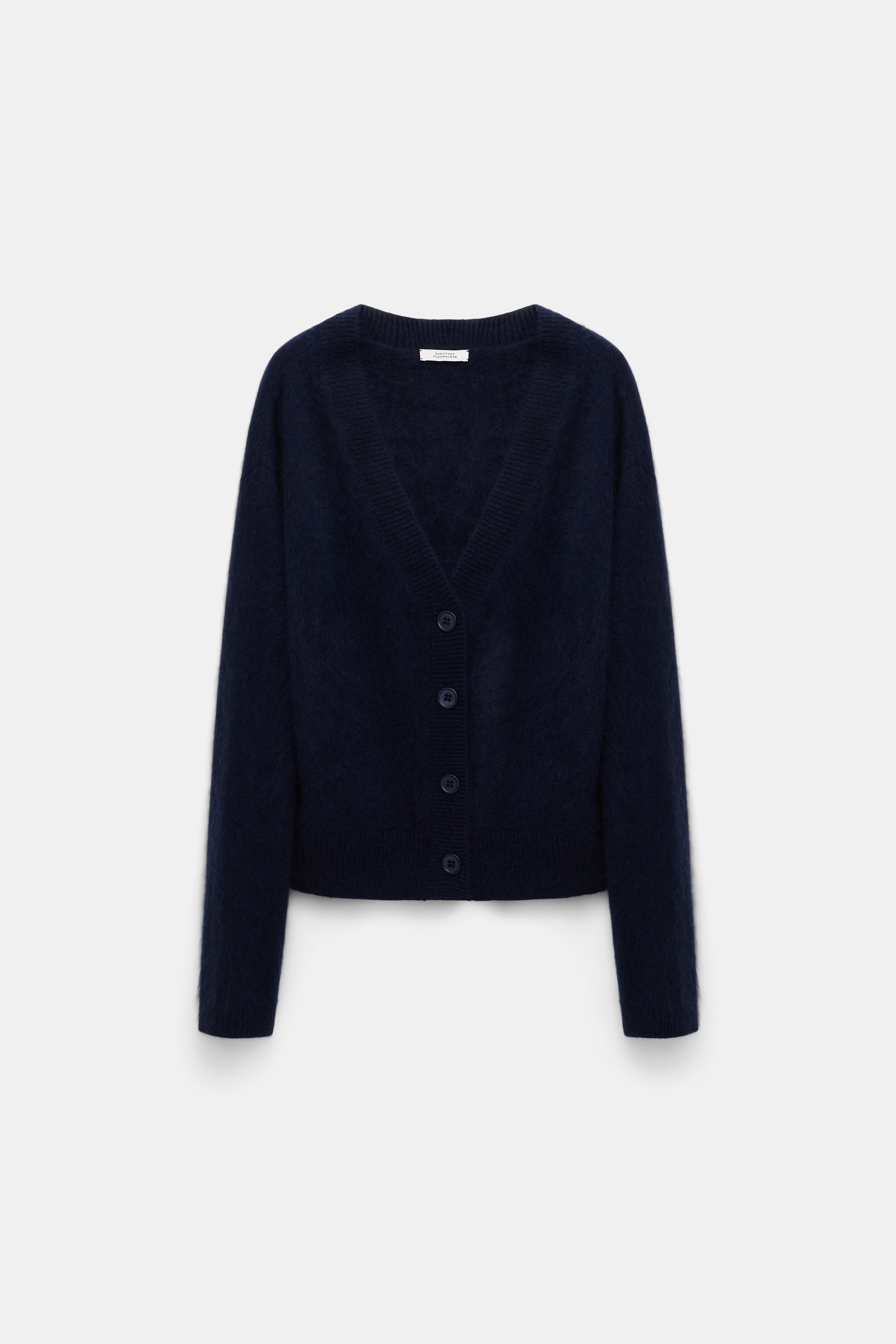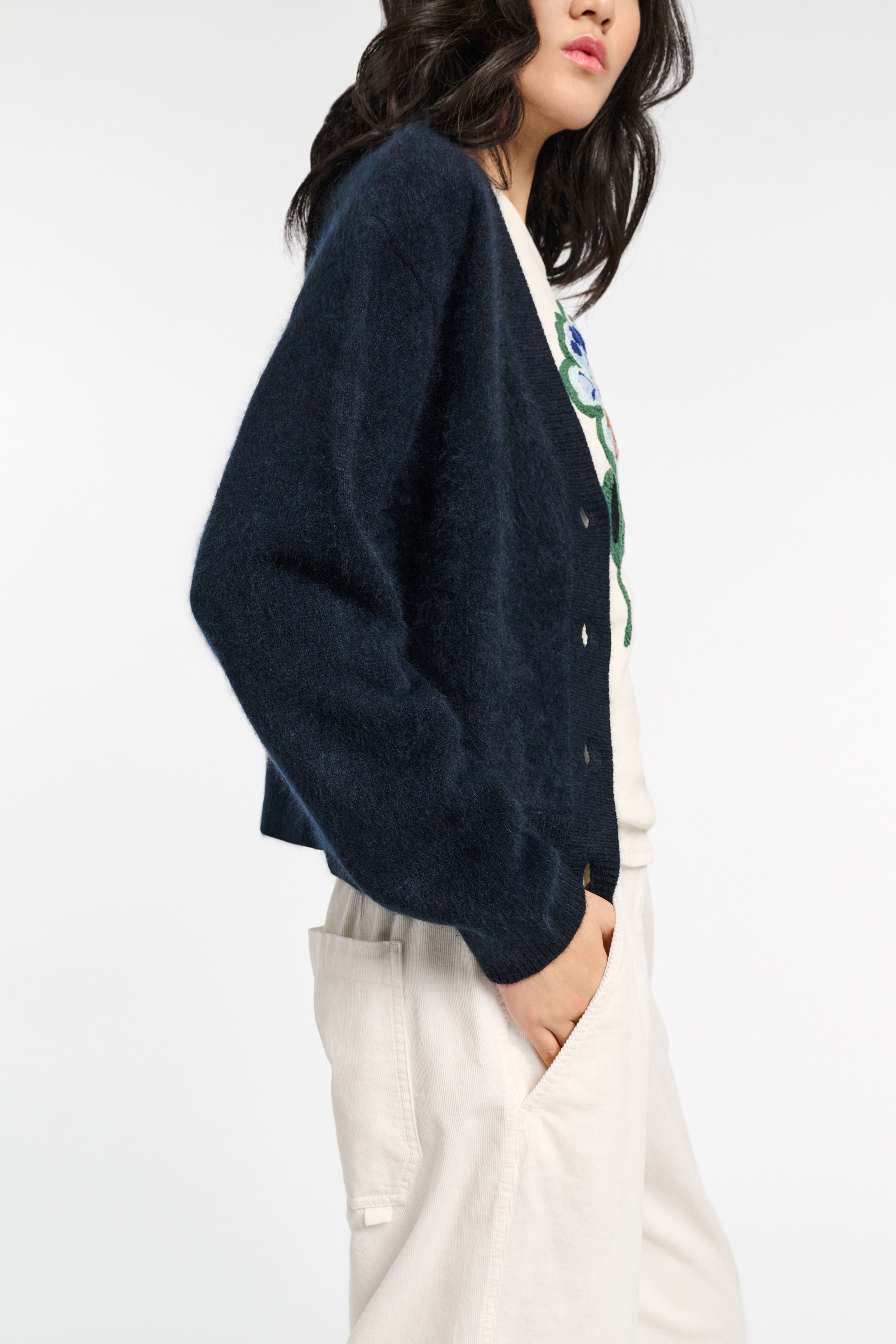 Finished with our special new fluffy knit wash, the V-neck cardigan is extra soft and has a tactile feel.