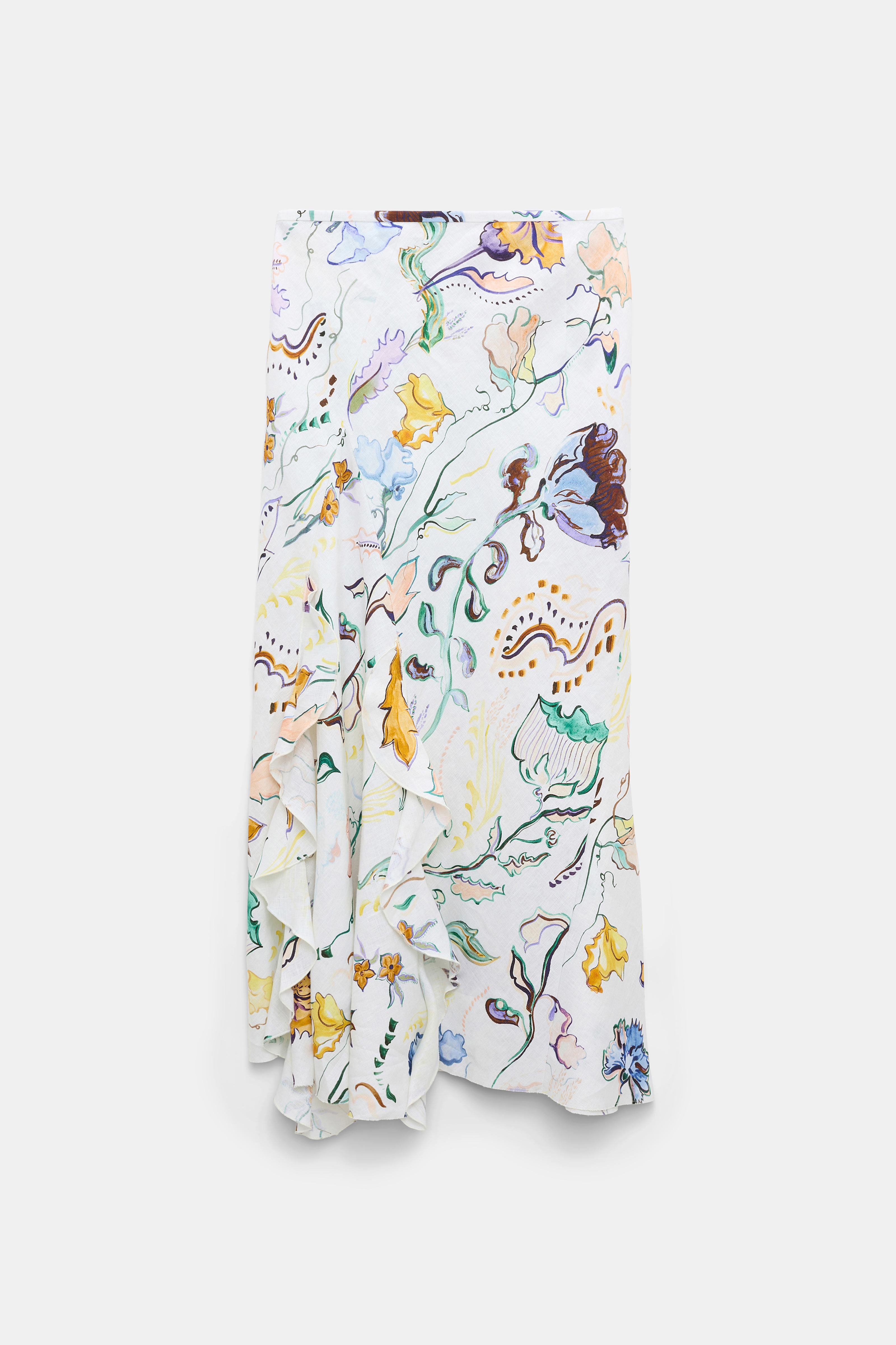 The printed linen maxi skirt has an asymmetric, bias cut and godets which create decorative flounces.