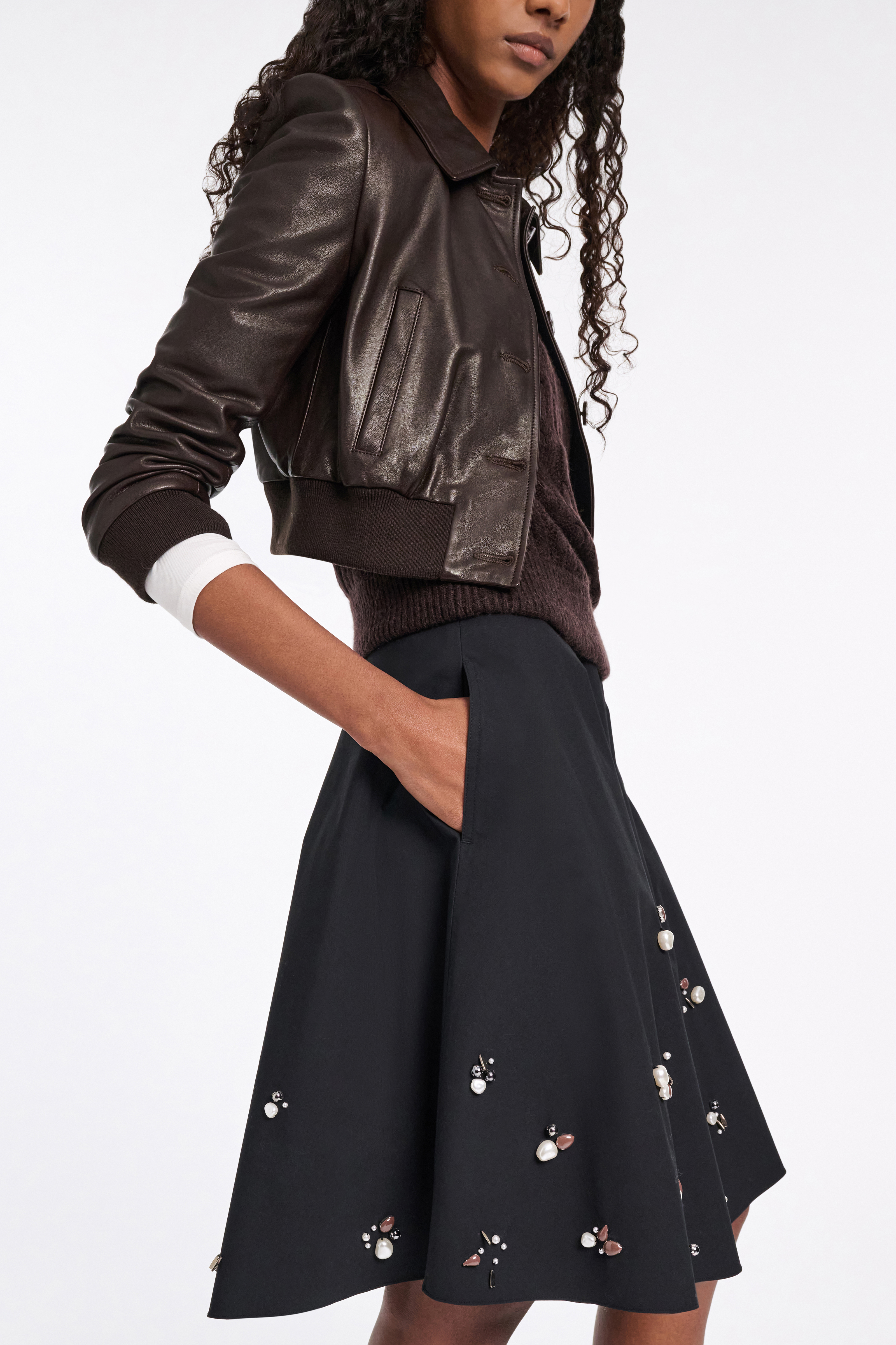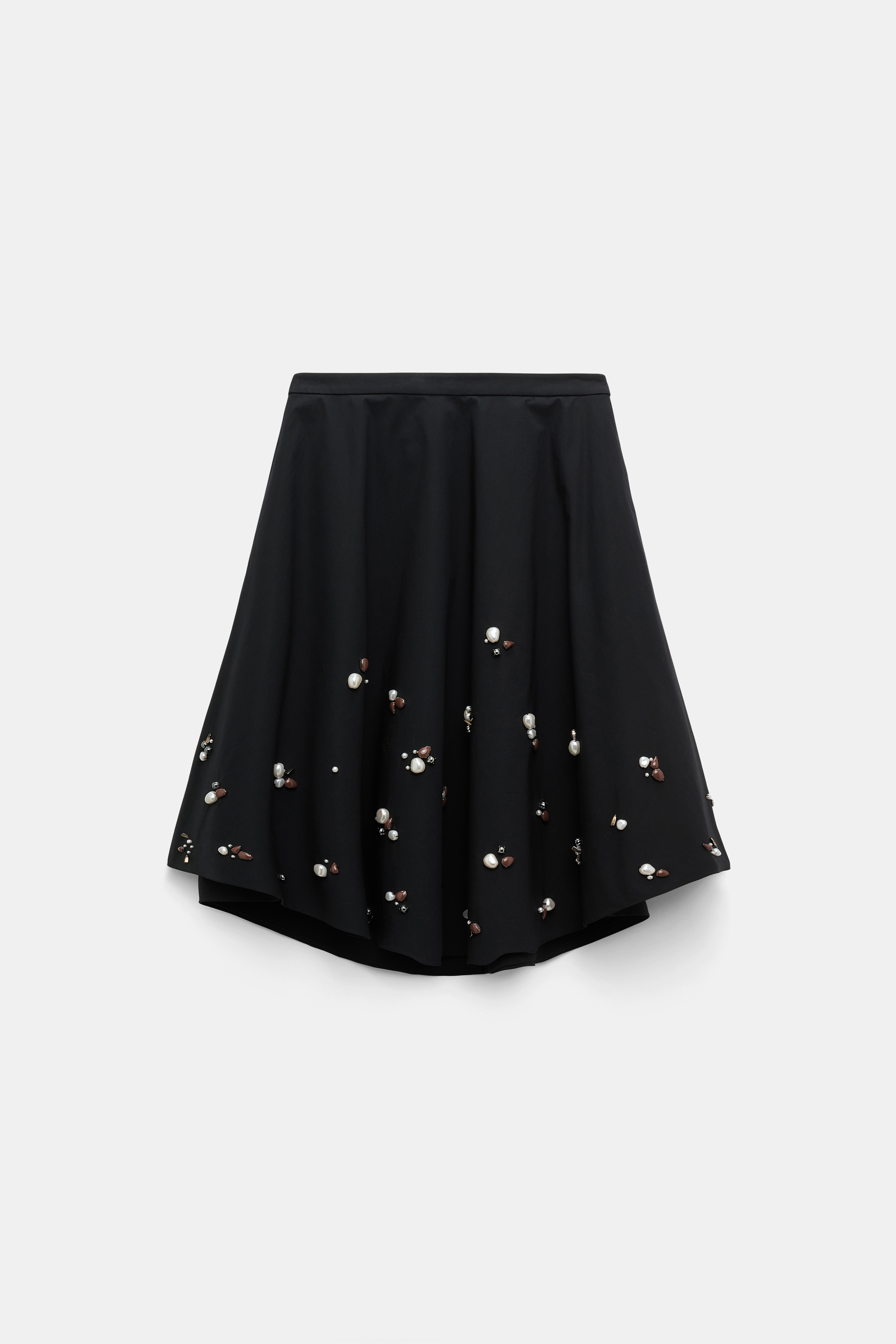 Unapologetically feminine, the cotton-poplin swing skirt is cut with a swishy, full silhouette and features pearl and crystal hand embellishment at the hem.