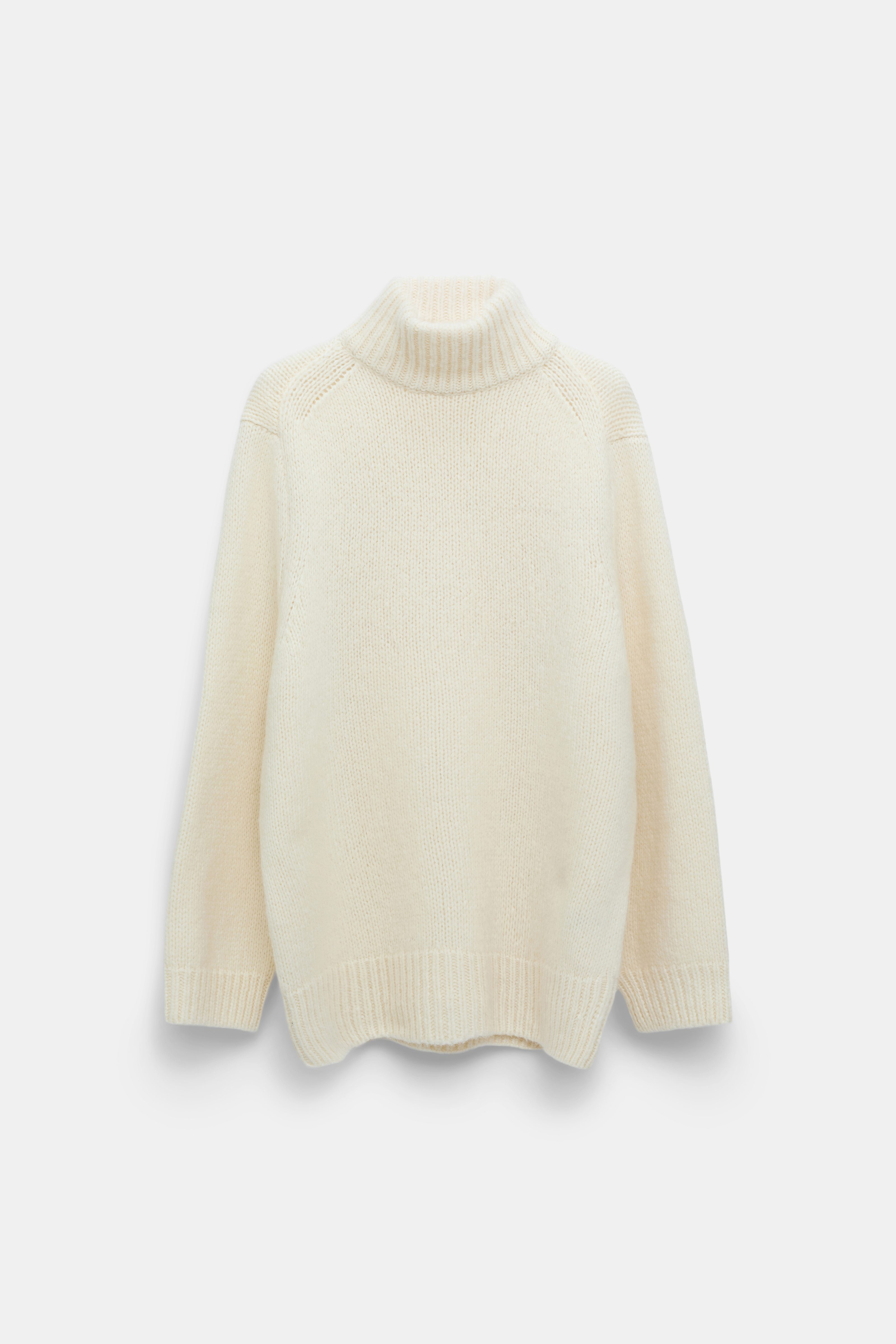 An extra cozy style in alpaca-infused wool, the turtleneck pullover has a relaxed cut and casual dropped shoulders.