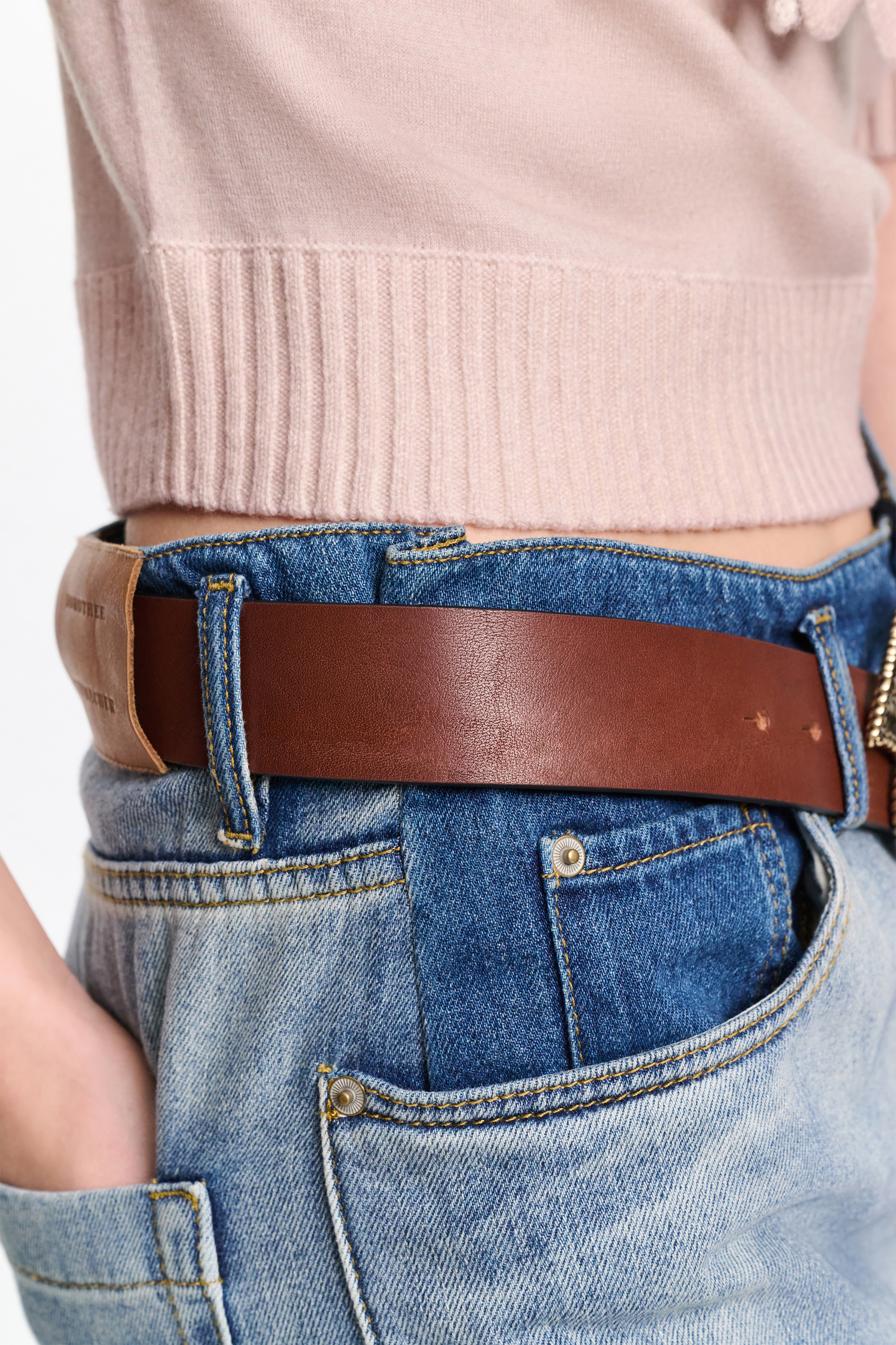 The high-rise style has a gathered waist at the sides, a slight dropped crotch, and a straight leg which falls into a soft taper at the ankle.