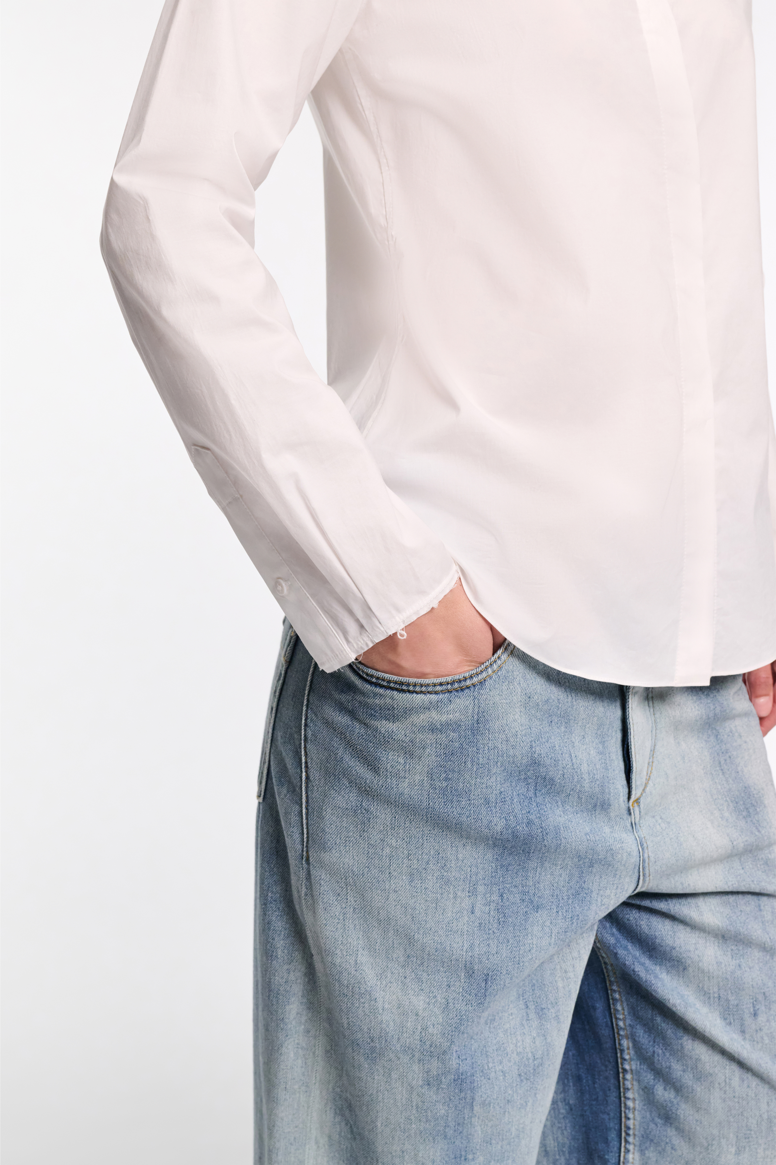The cotton poplin shirt has a slim fit and concealed button placket.