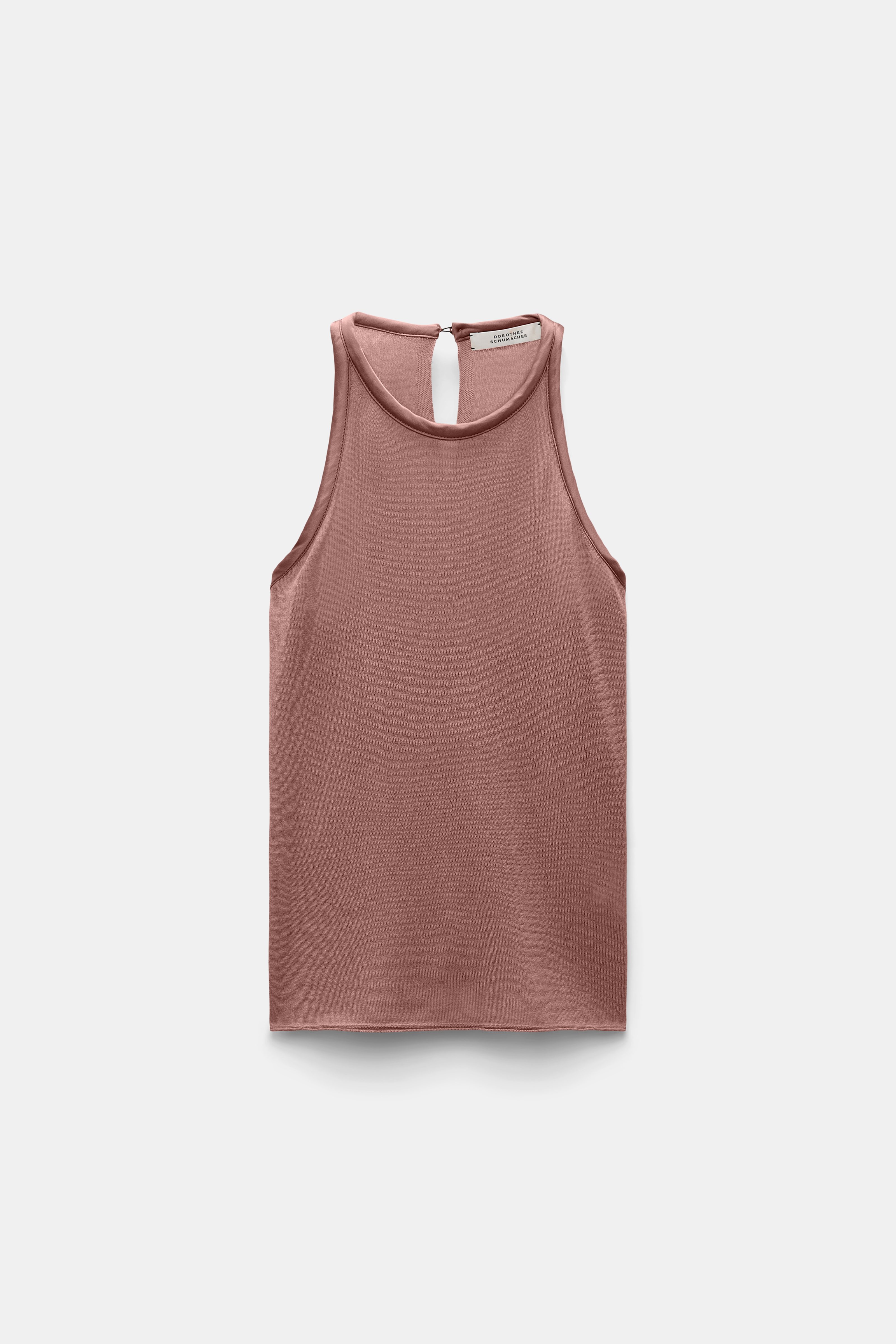 The tank top is crafted in a smooth virgin wool-cotton mix and has cut-in shoulders.