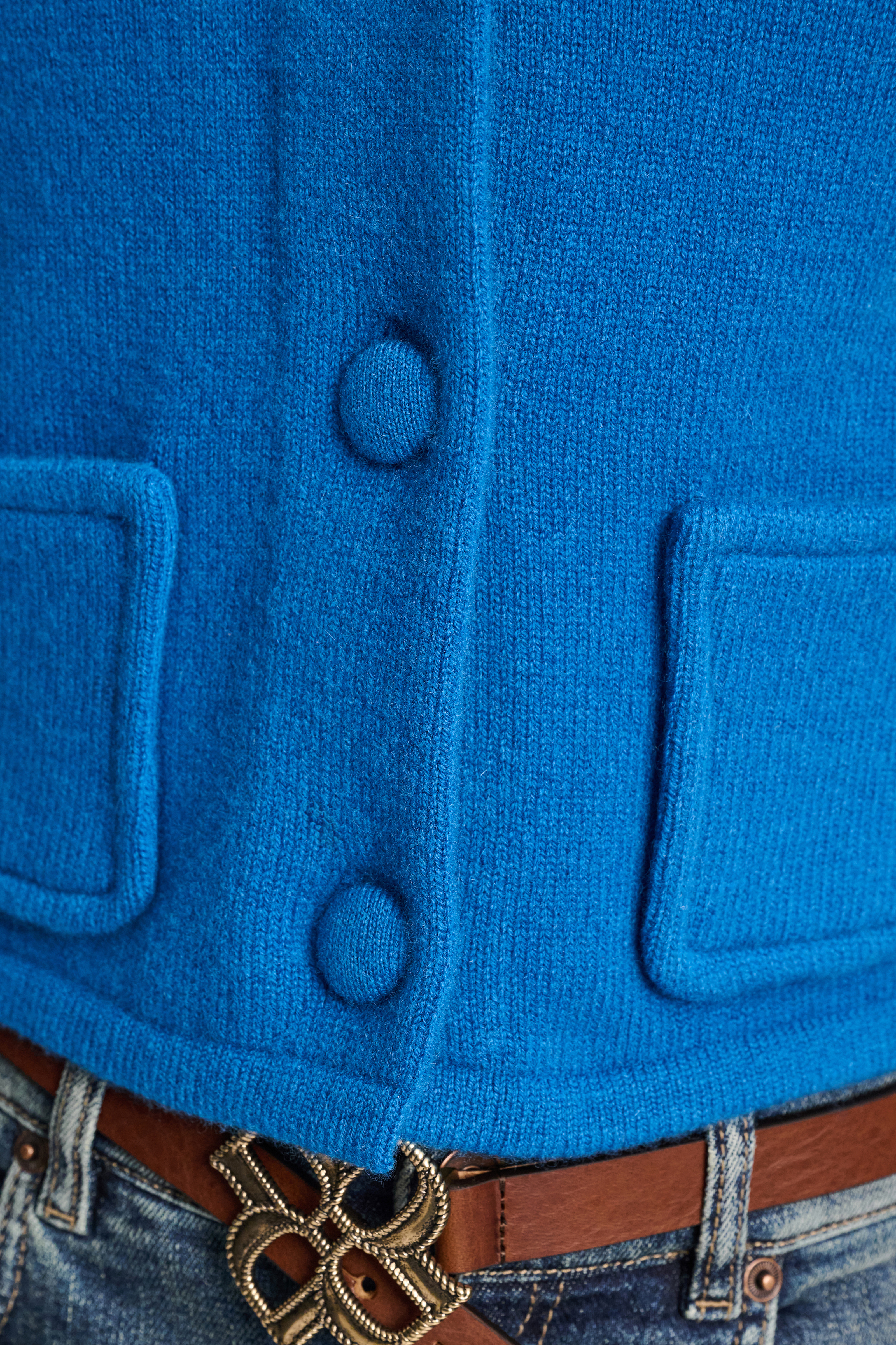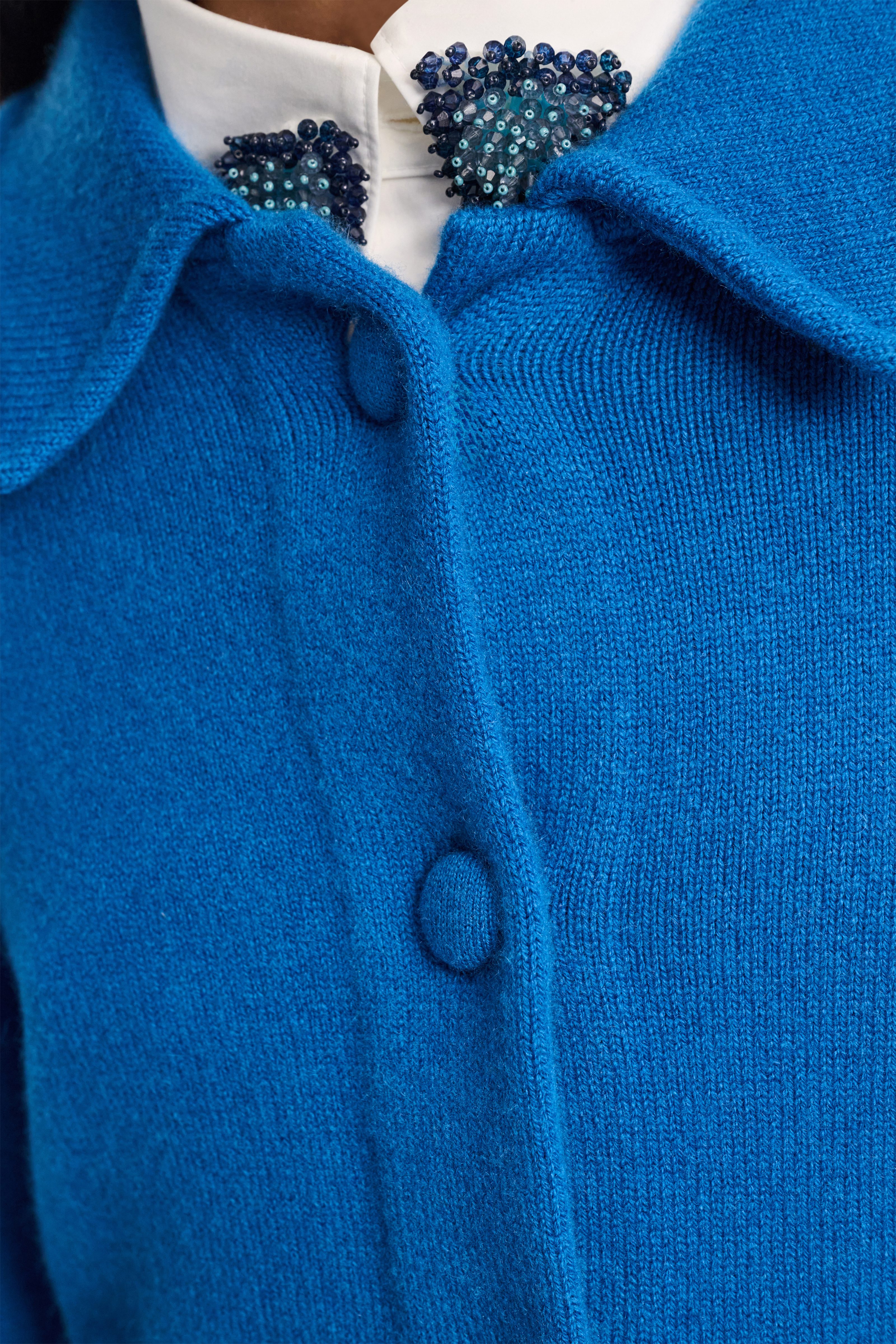 The cropped jacket is made from a soft Merino-cashmere mix and has an oversized collar.