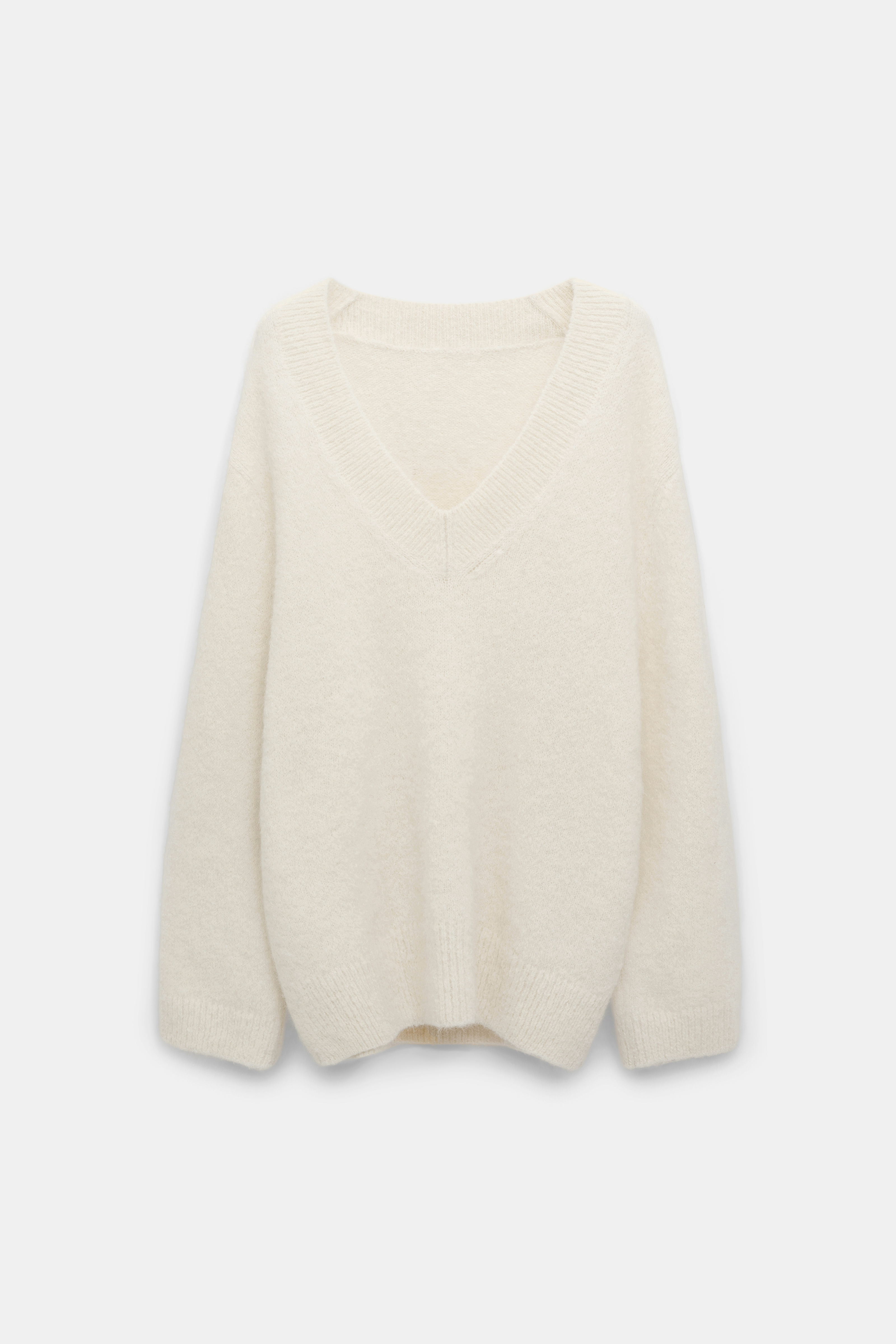 The relaxed fit pullover is knit in an extra soft new alpaca mix.