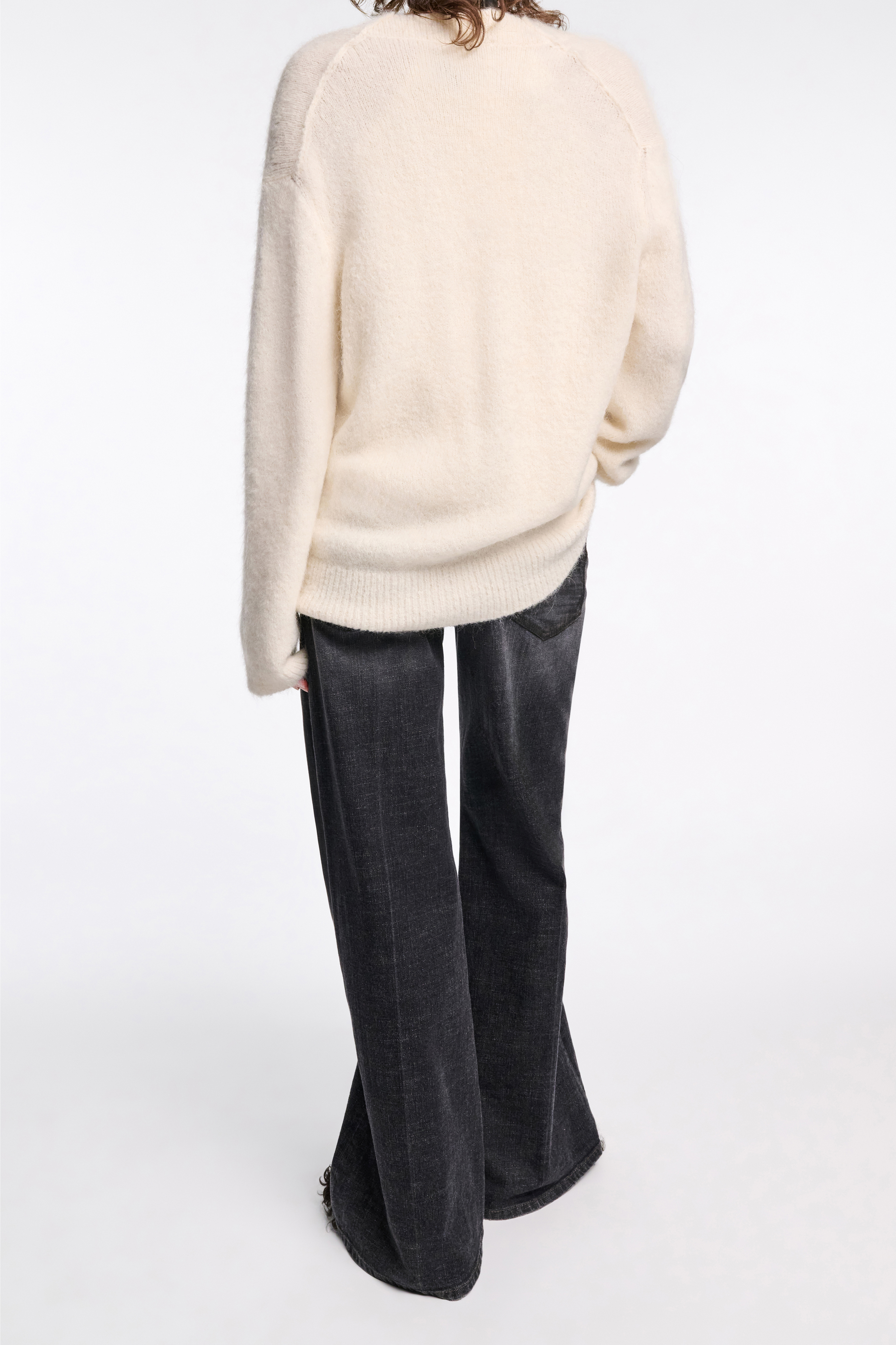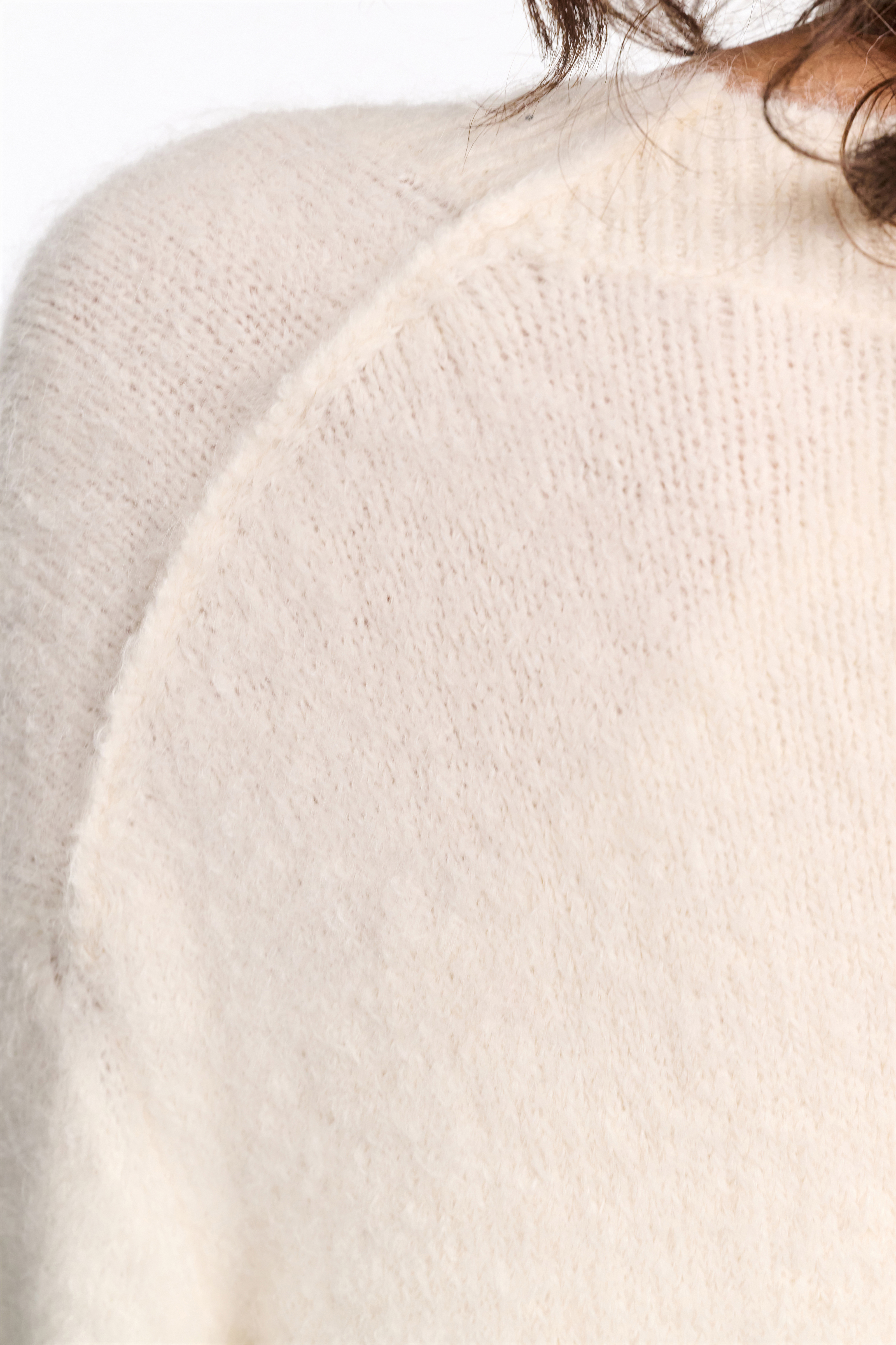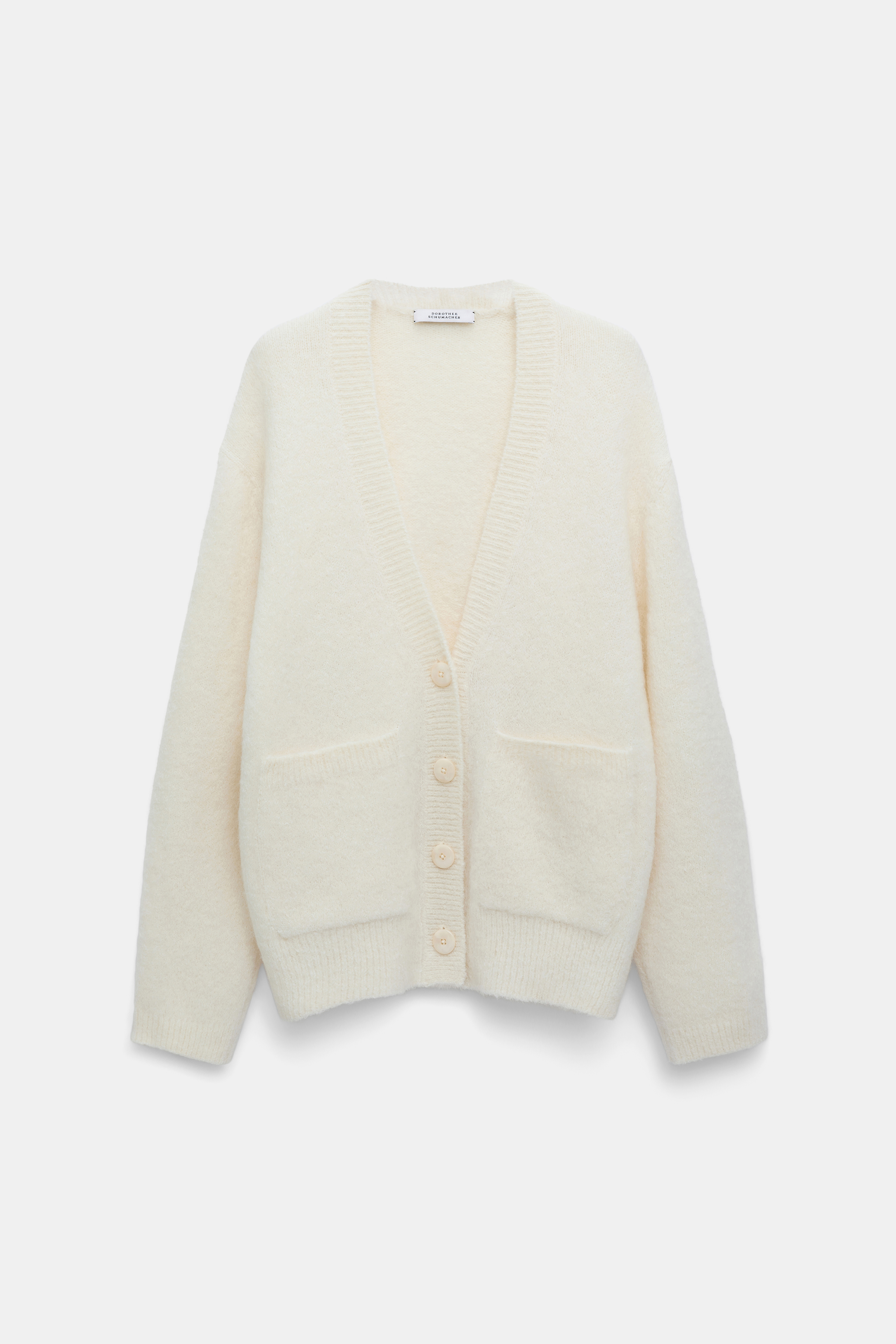 The relaxed fit cardigan has a deep V-neckline and is knit in the softest new alpaca mix.