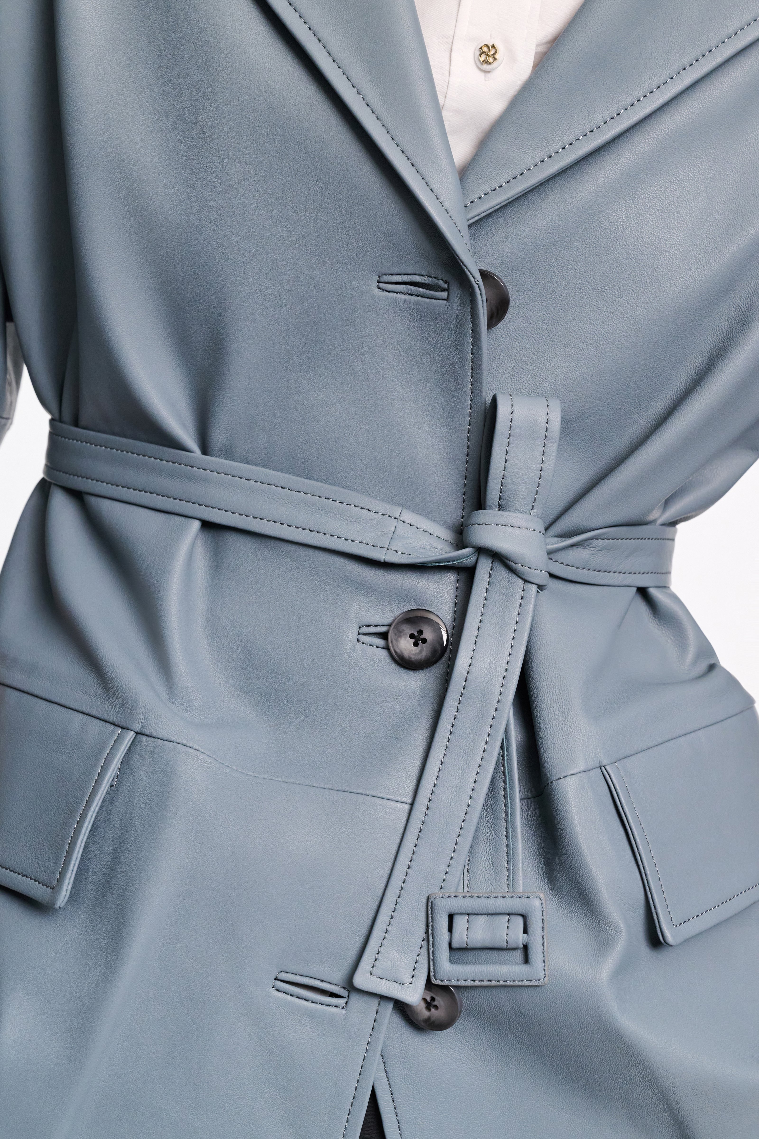 Crafted in the softest lambskin, we've remixed our forever favorite trench coat with 3/4-length sleeves and an A-line silhouette.