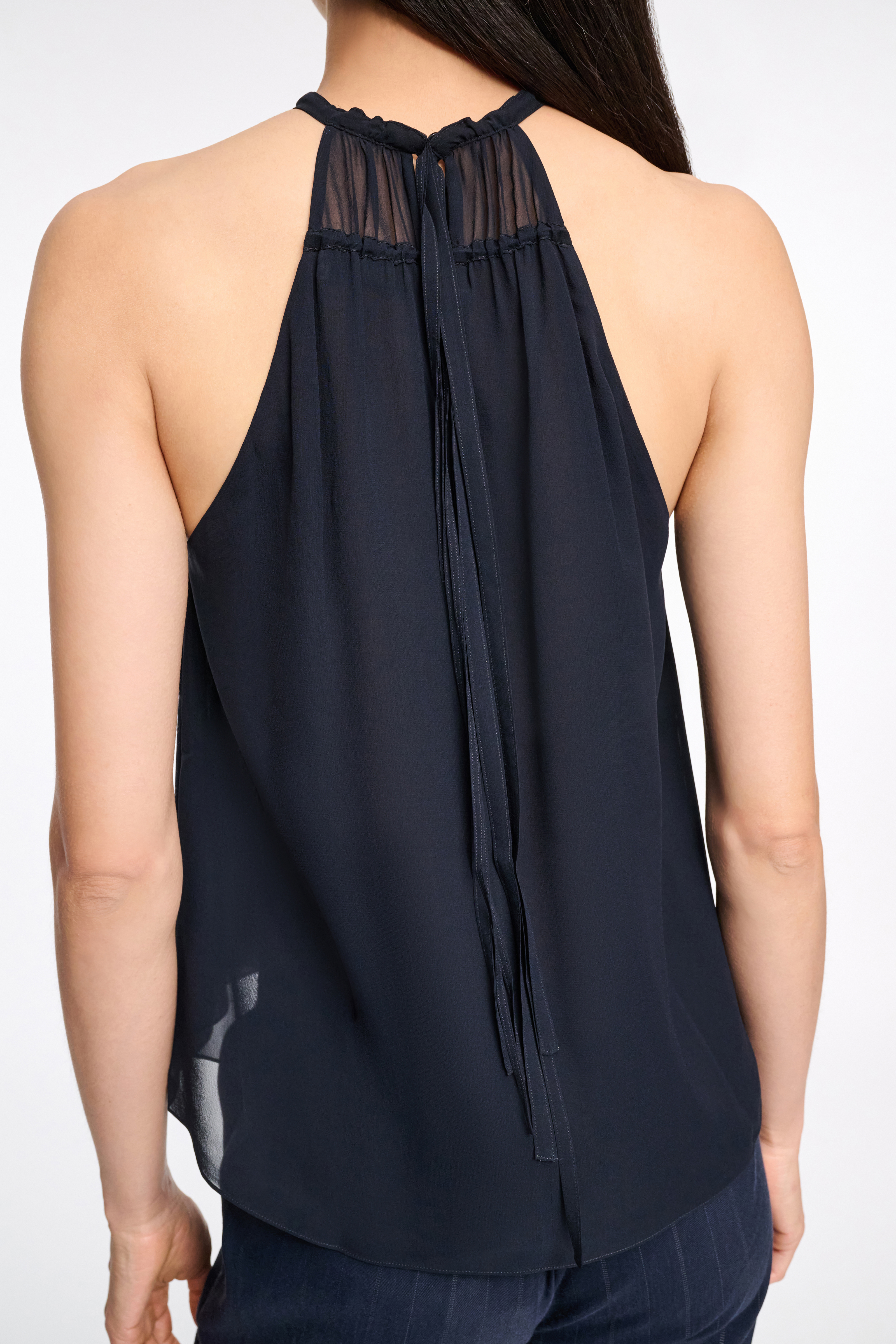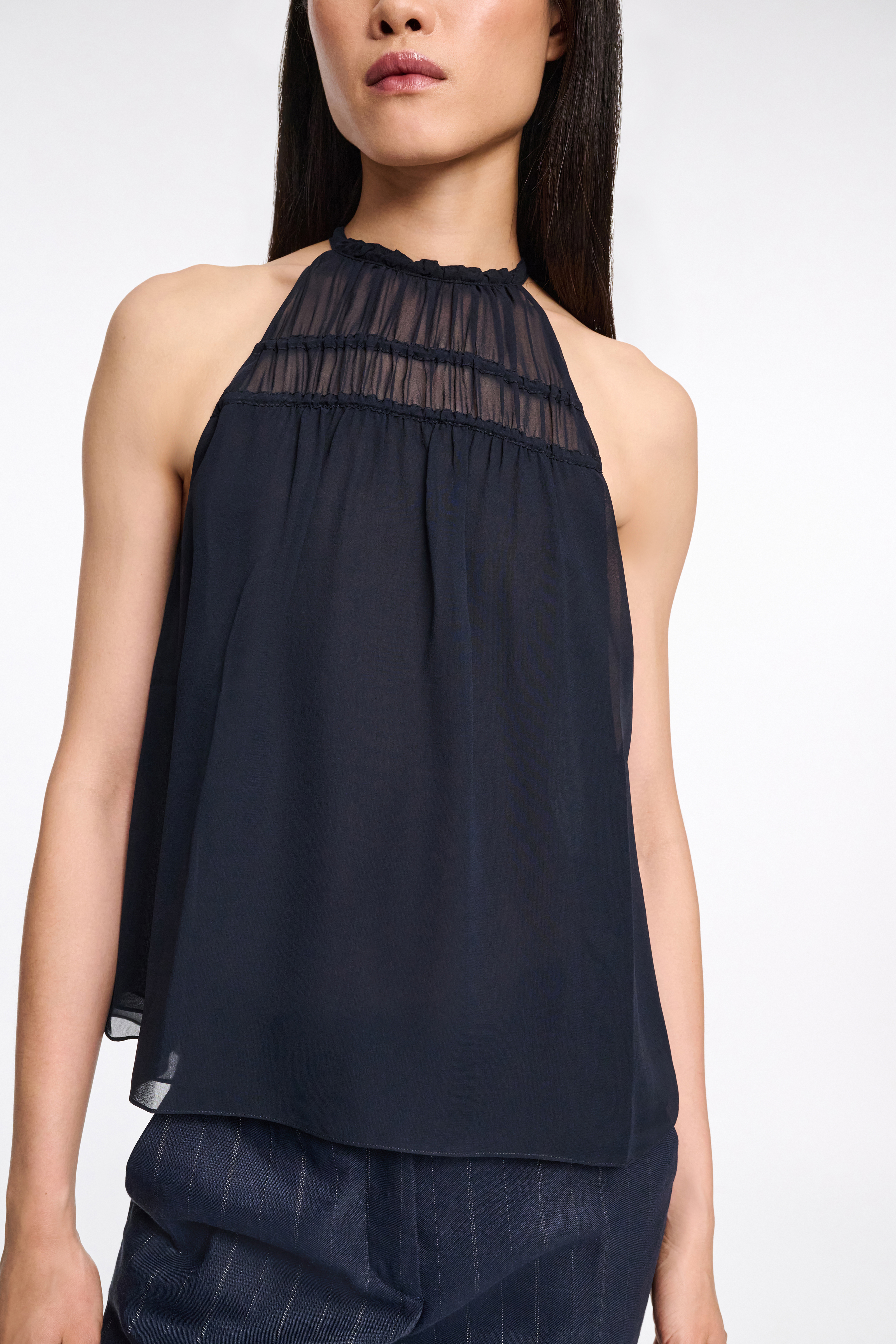 The silk-georgette tank top is loosely fitted and has soft shirring.