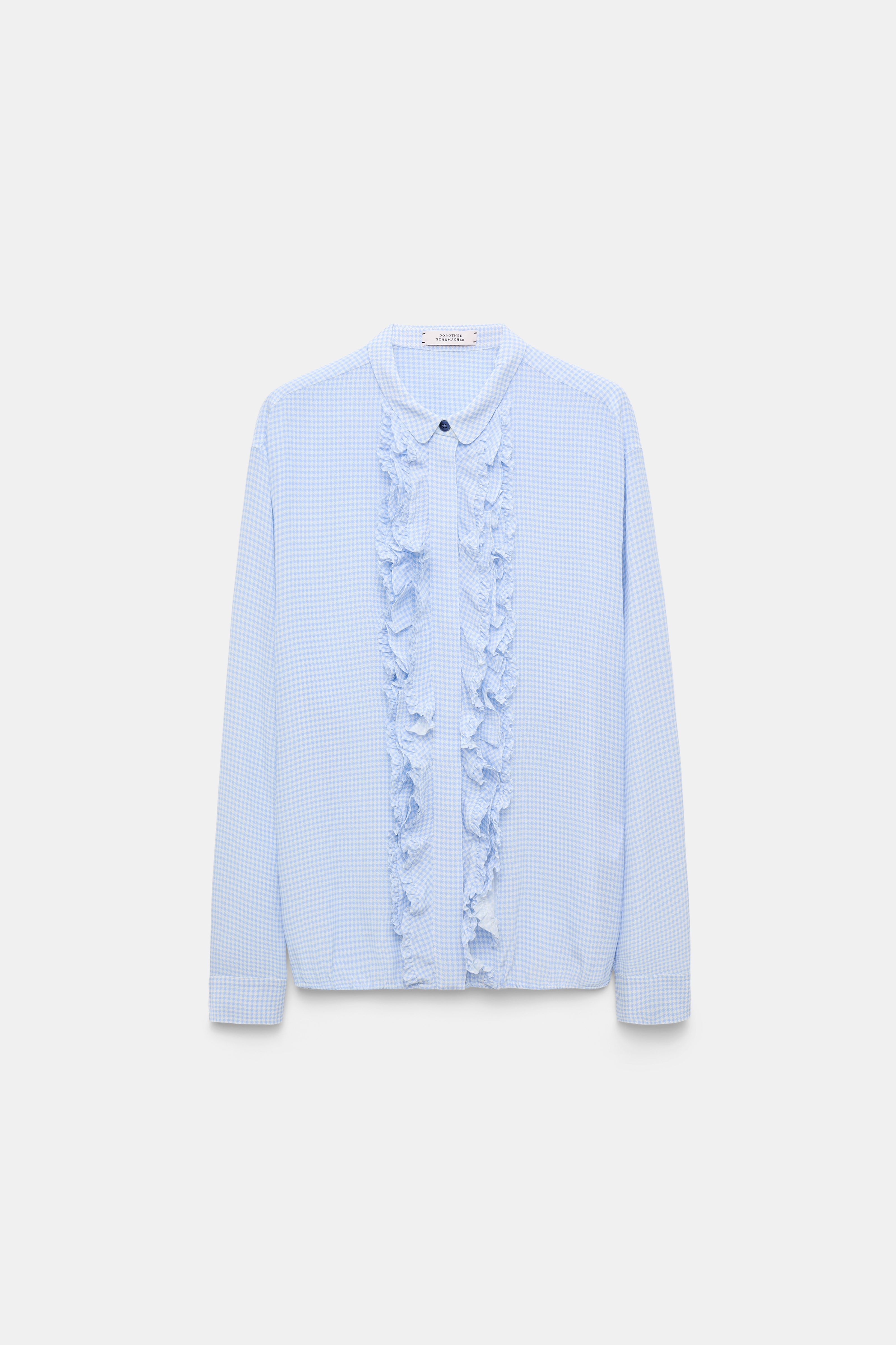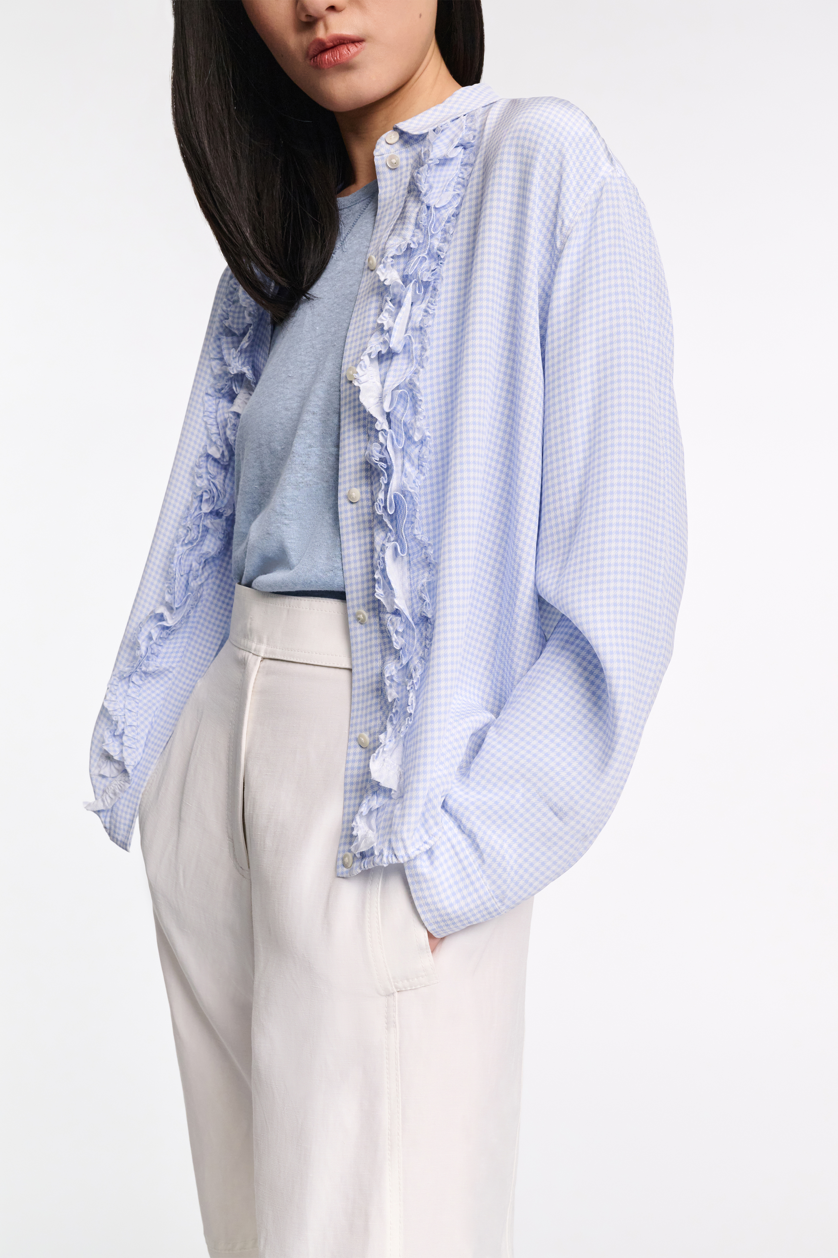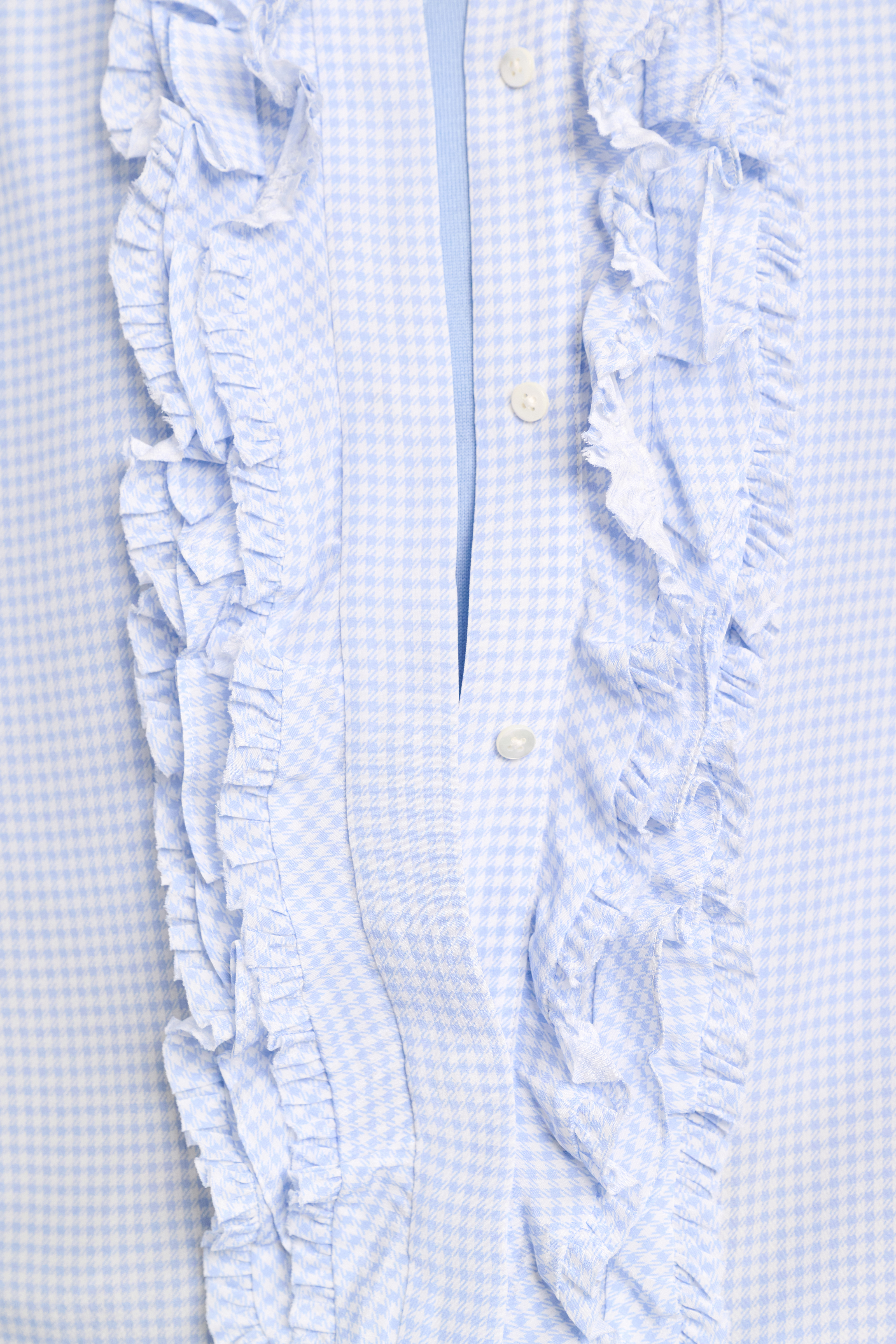 The blouson-style blouse is crafted in gingham print silk-viscose and has ruffle trim on the front.