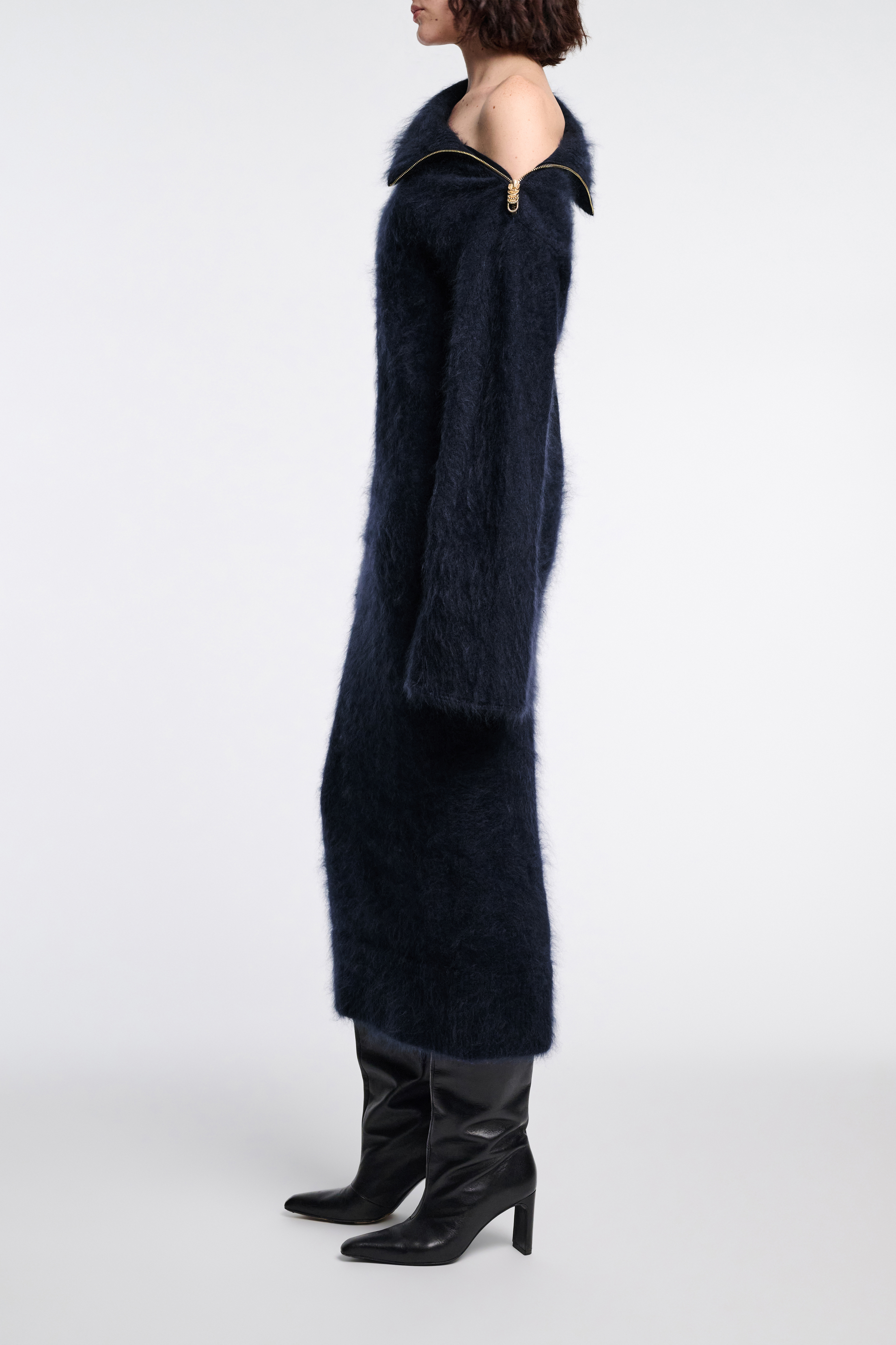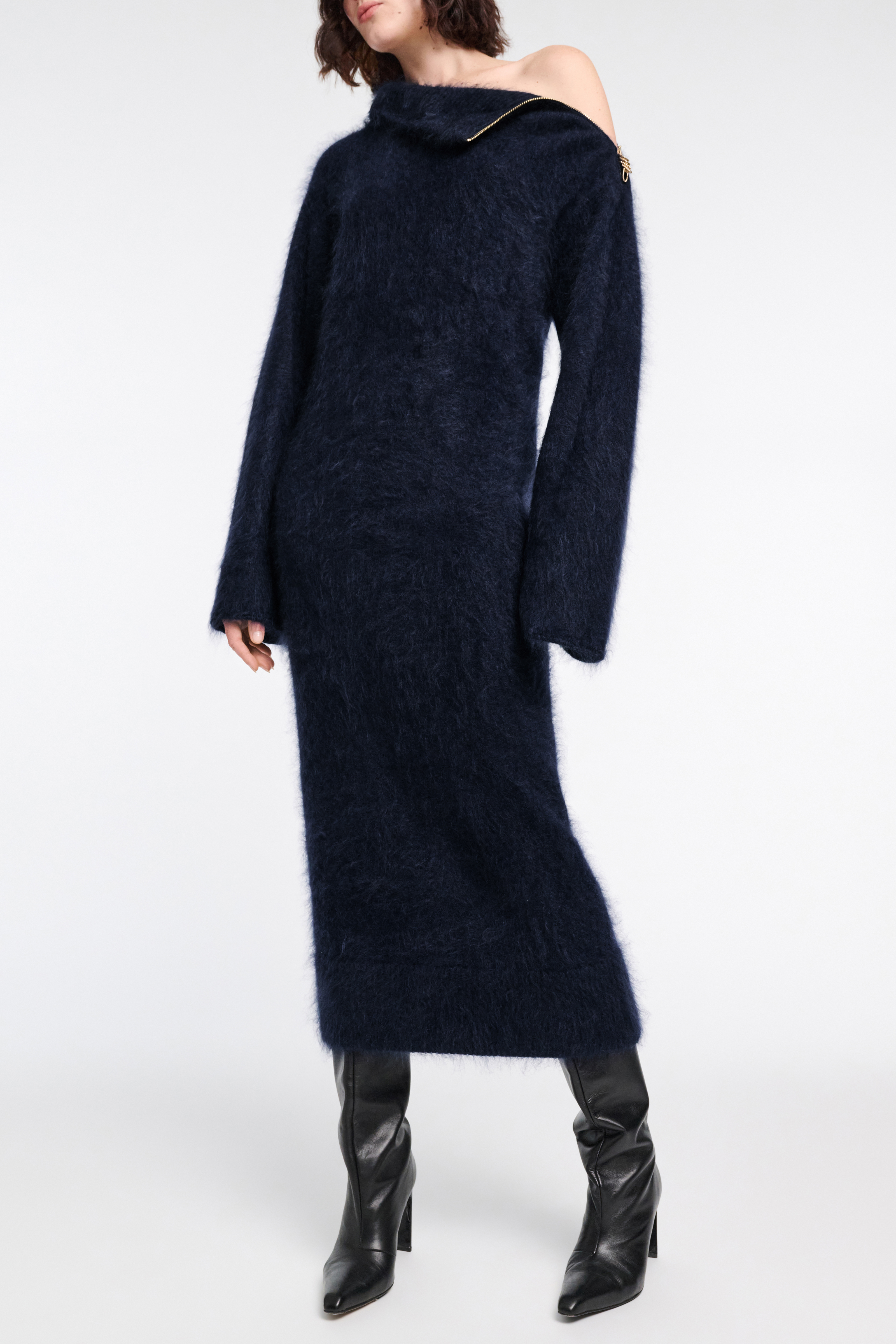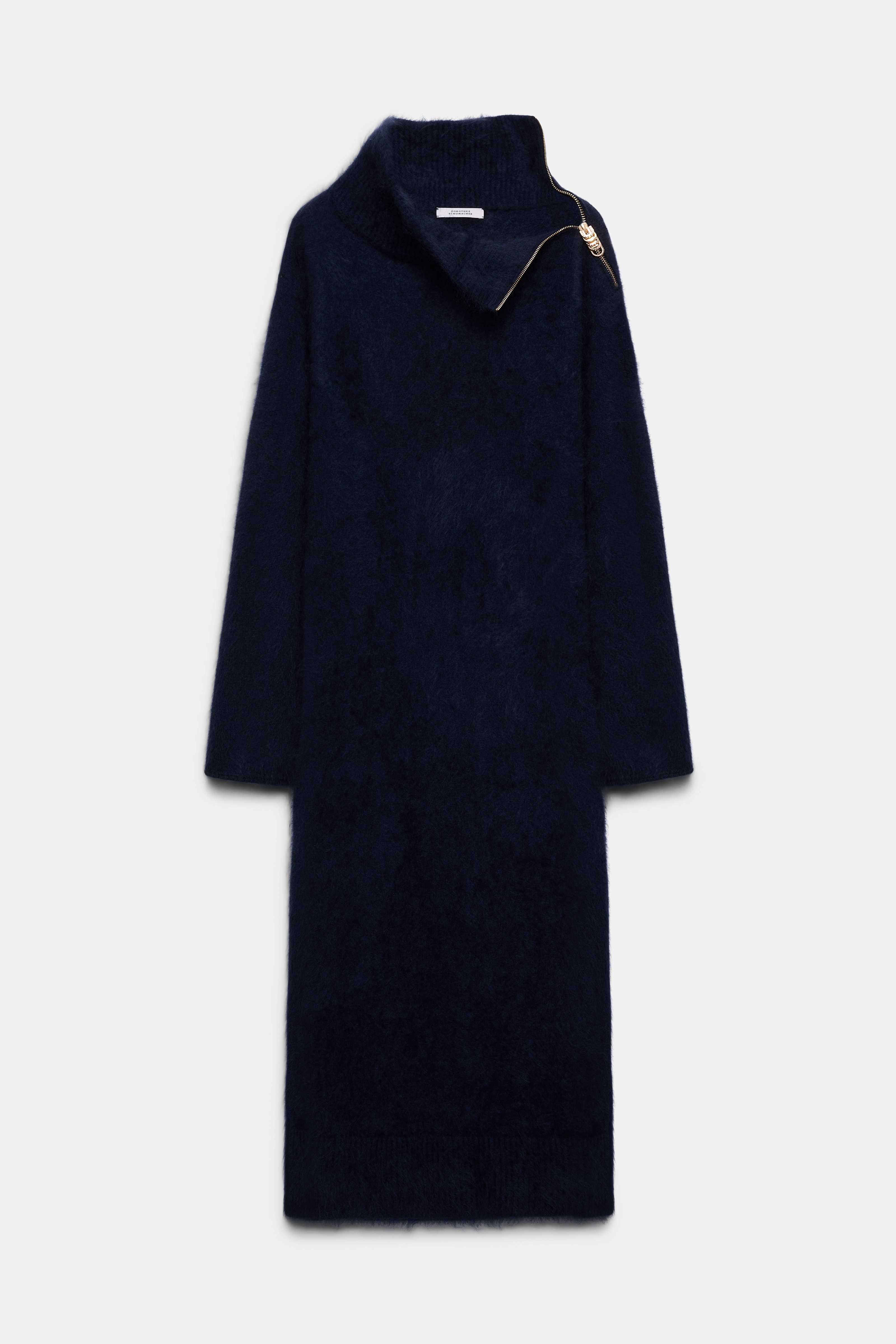 Finished with our special new fluffy knit wash, the turtleneck sweater dress is extra soft and has a tactile feel.
